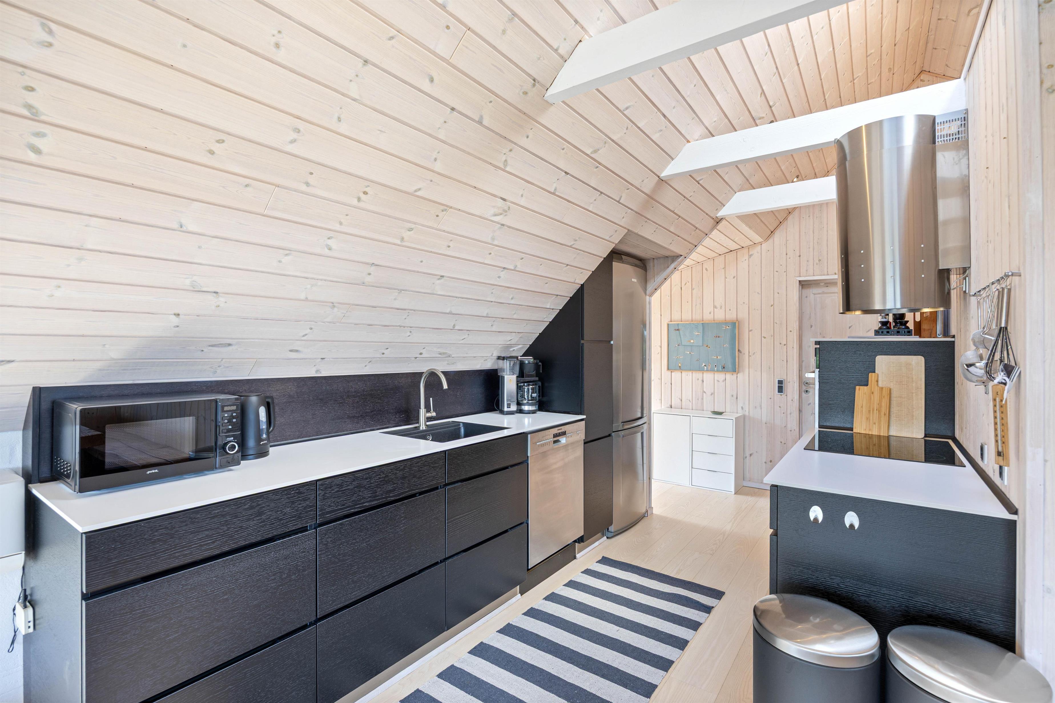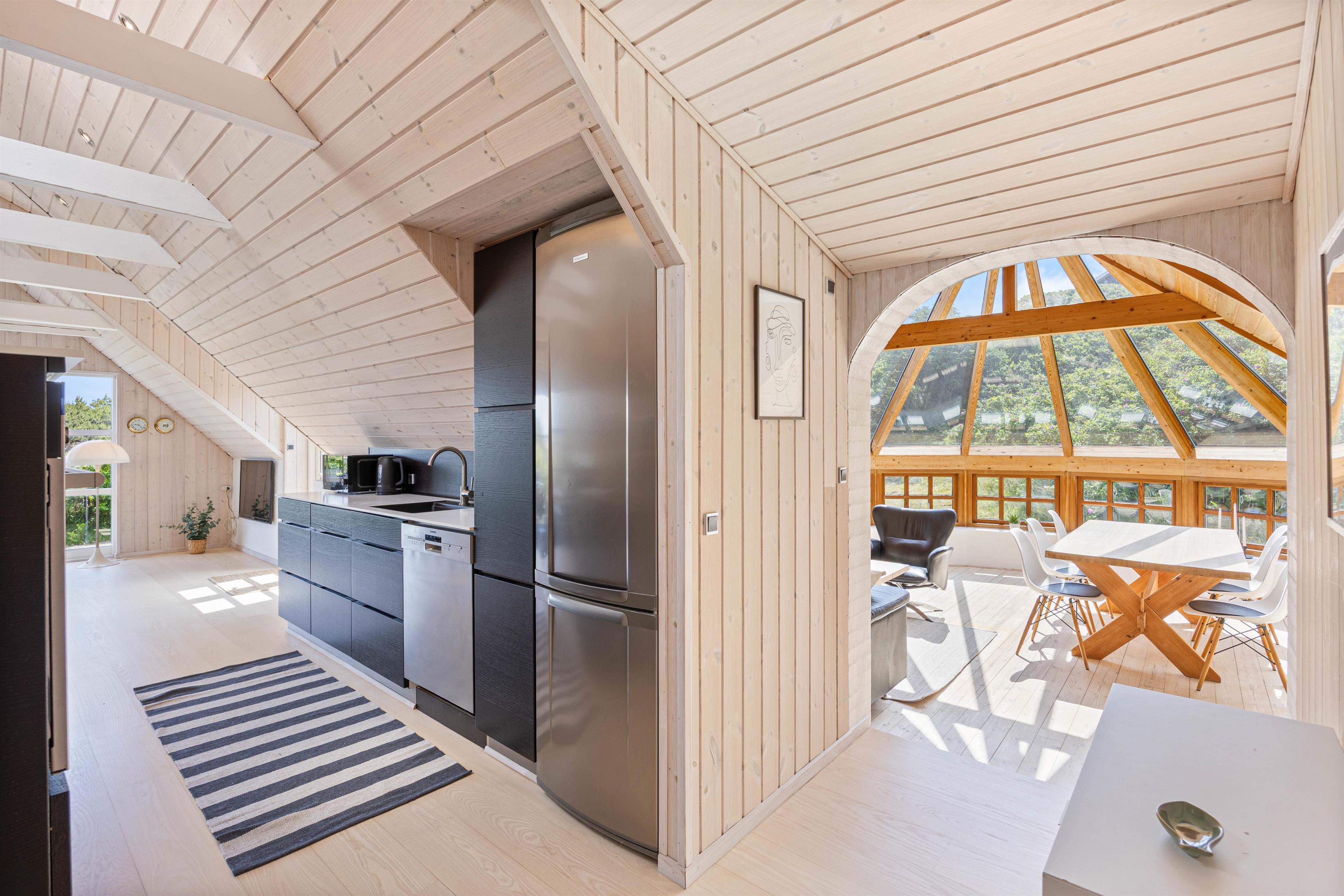 Sommerhuset byder på både en åben og lukket terrasse, hvilket inviterer til hyggelige stunder udendørs. Her kan I nyde morgenkaffen, mens I beundrer den storslåede panoramaudsigt, eller nyde et godt måltid tilberedt på gasgrillen med venner og familie i årets varmeste måneder. Kun 400 meter til stranden giver jer let adgang til at dyppe tæerne i bølgerne eller tage en lang spadseretur langs vandet. Med kun 800 meter til nærmeste indkøbsmuligheder har I alt, hvad I behøver inden for bekvem rækkevidde og kan med fordel lade bilen stå.