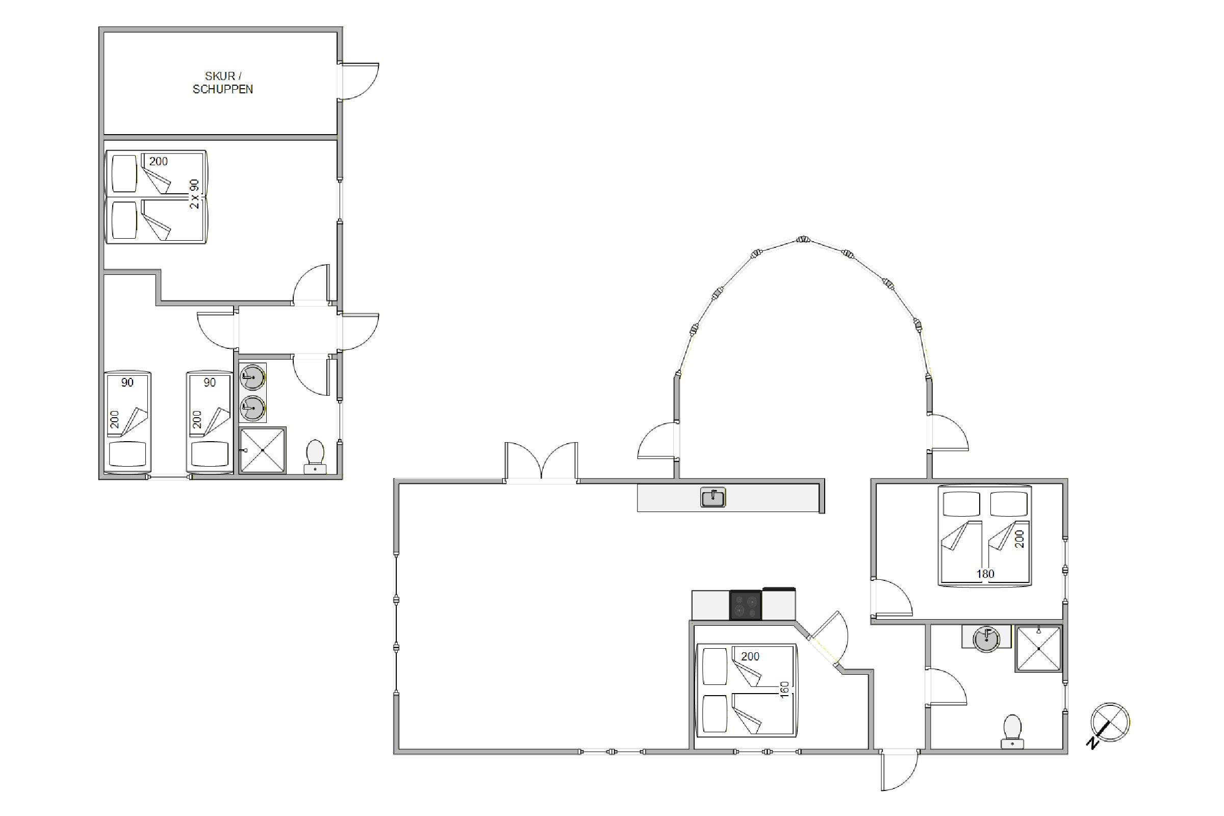 Sommerhuset er 102 m2 stort og rummer to velindrettede soverum med dobbeltsenge, der giver mulighed for en fredelig nattesøvn og et badeværelse. Det funktionelle køkken er udstyret med alle nødvendige faciliteter, herunder en opvaskemaskine, hvilket gør det let at tage sig af de daglige pligter, så I kan fokusere på at nyde ferien. Vaskemaskinen er en ekstra bonus, der gør det nemt at holde tøj rent og friskt gennem hele ferien. Der 2 avancerede luft til luft varmepumpe sørger for et behageligt indeklima, da varmepumperne både kan varme og køle, er de perfekte til både kølige sommeraftener og varme dage. Den ene varmepumpe er i køkkenalrummet og den anden varmepumpe er i udestuen.
