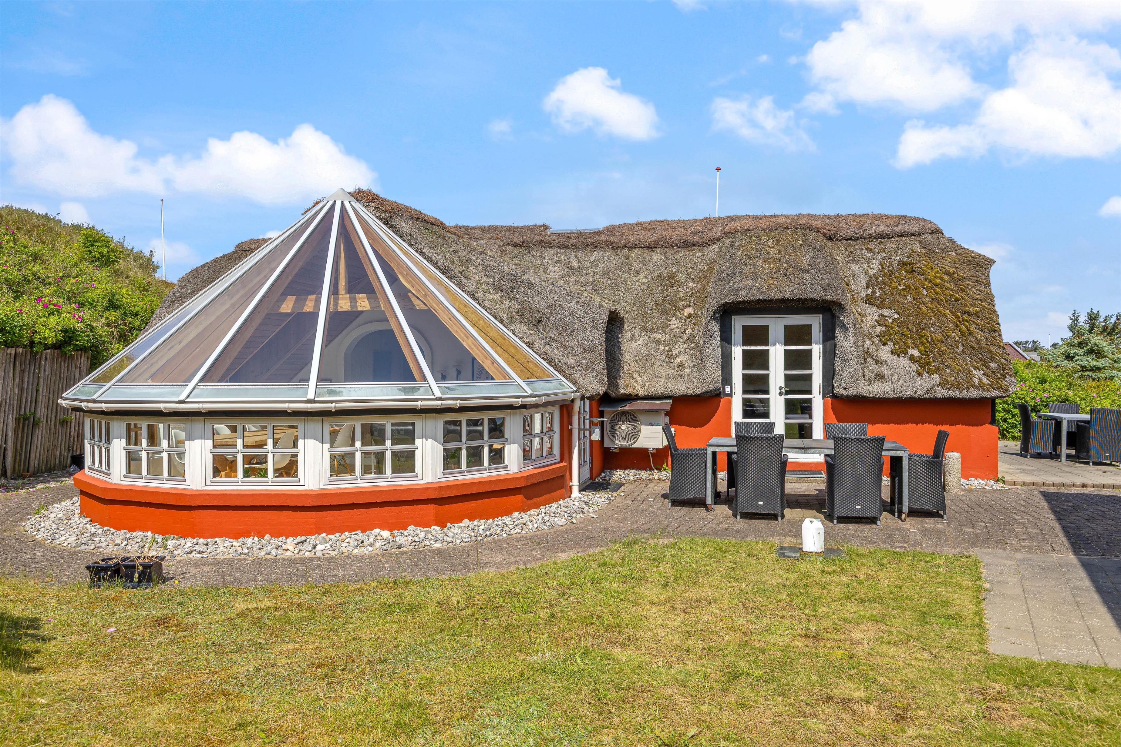 En af de mest fremtrædende funktioner ved dette sommerhus i Søndervig er den charmerende udestue. Dette dejlige rum bliver hurtigt en favorit, hvor I kan trække jer tilbage med en bog eller nyde middagen i det naturlige lys fra det store vinduesparti. Uanset om solen skinner eller regnen trommer mod ruden, tilbyder udestuen en perfekt kulisse for afslapning og hygge.