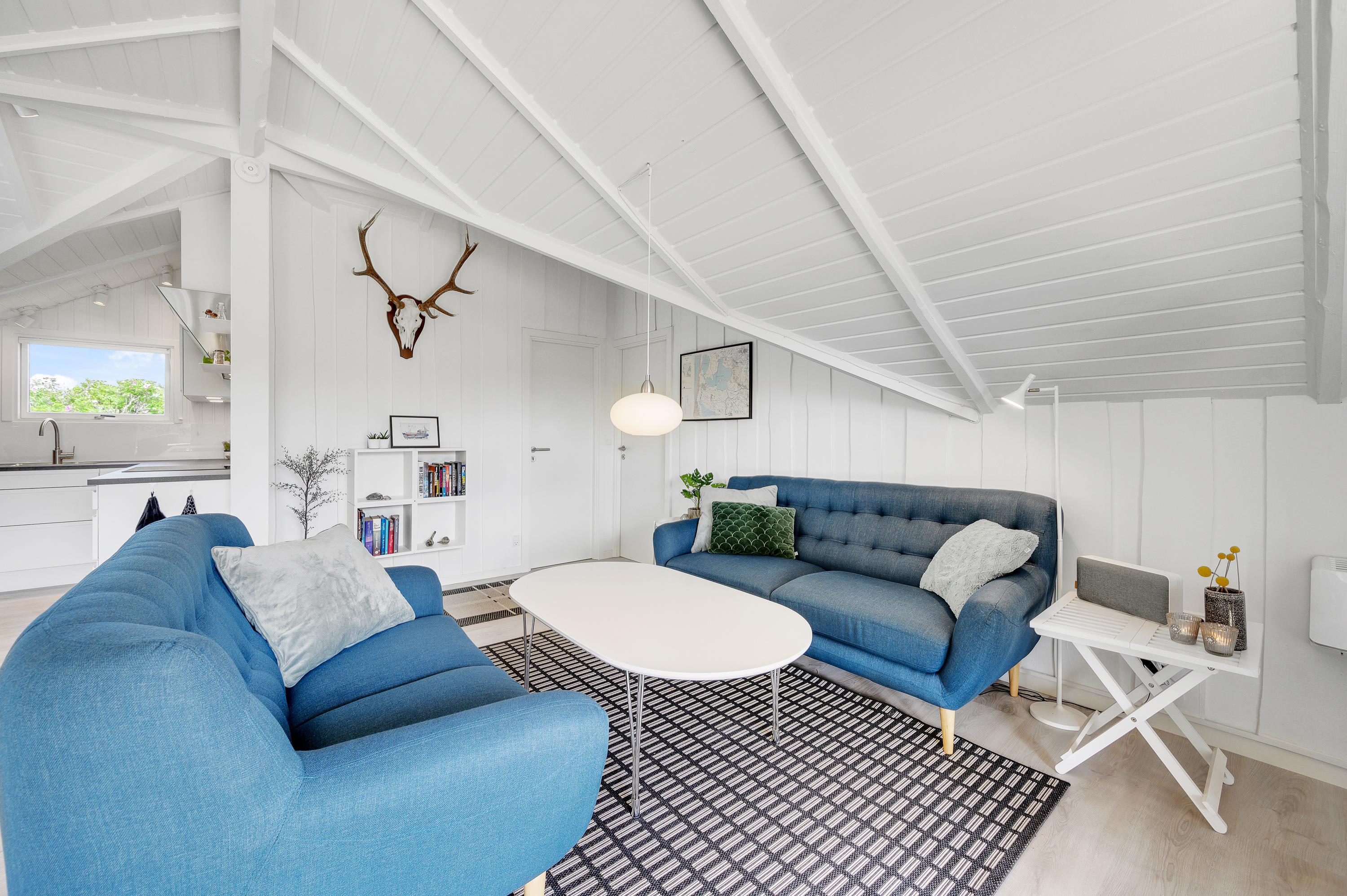 Det klassiske træhus på Holmsborgvej 21 har et komplet renoveret indre. Her er lyst og åbent, og indretningen emmer af feriestemning. Sommerhusets hjerte er alrummet, hvor stue, køkken og spiseafdeling er slået sammen til ét stort fællesrum – som med garanti kommer til at danne rammerne om masser af hyggelige ferieminder.