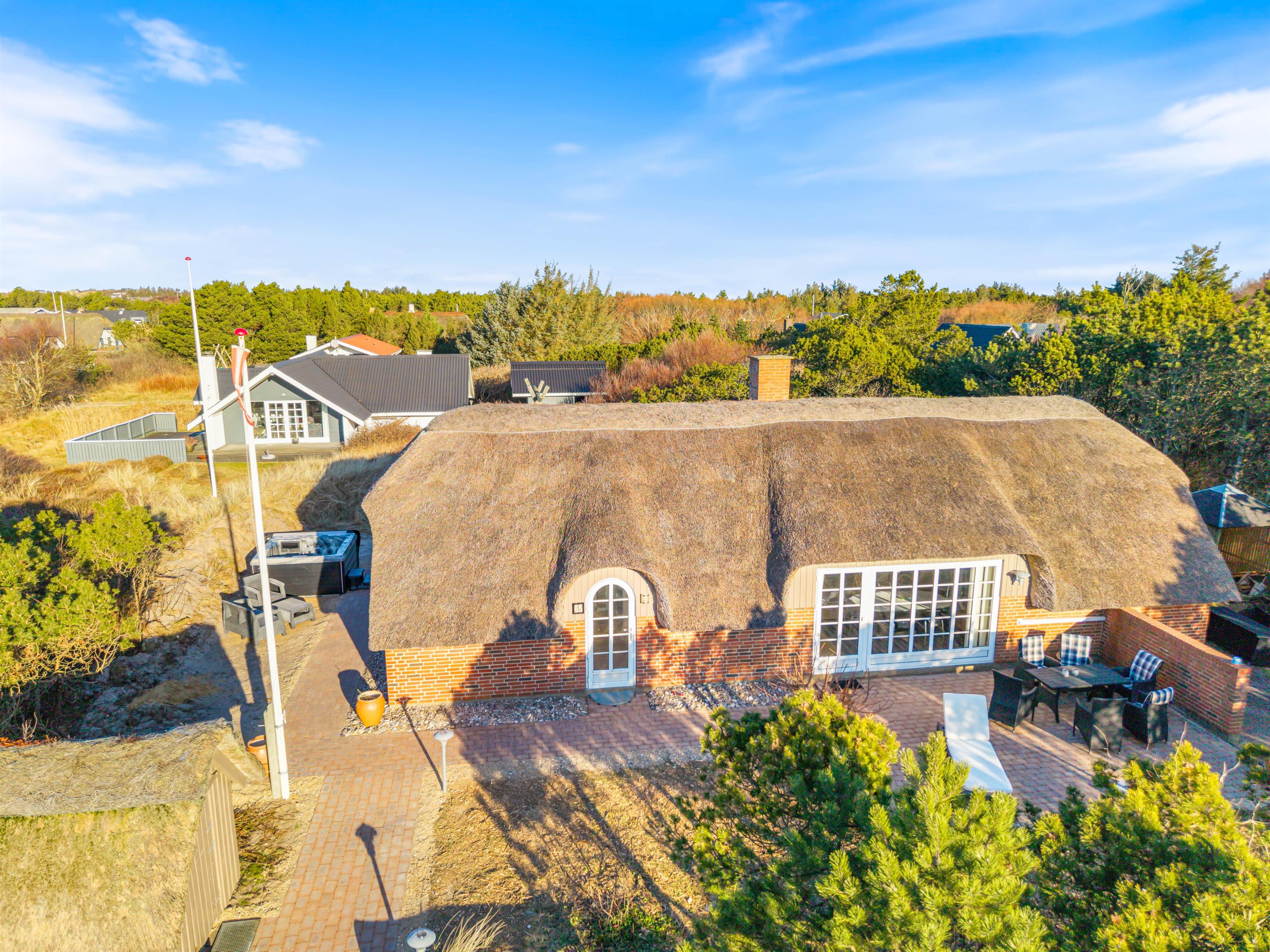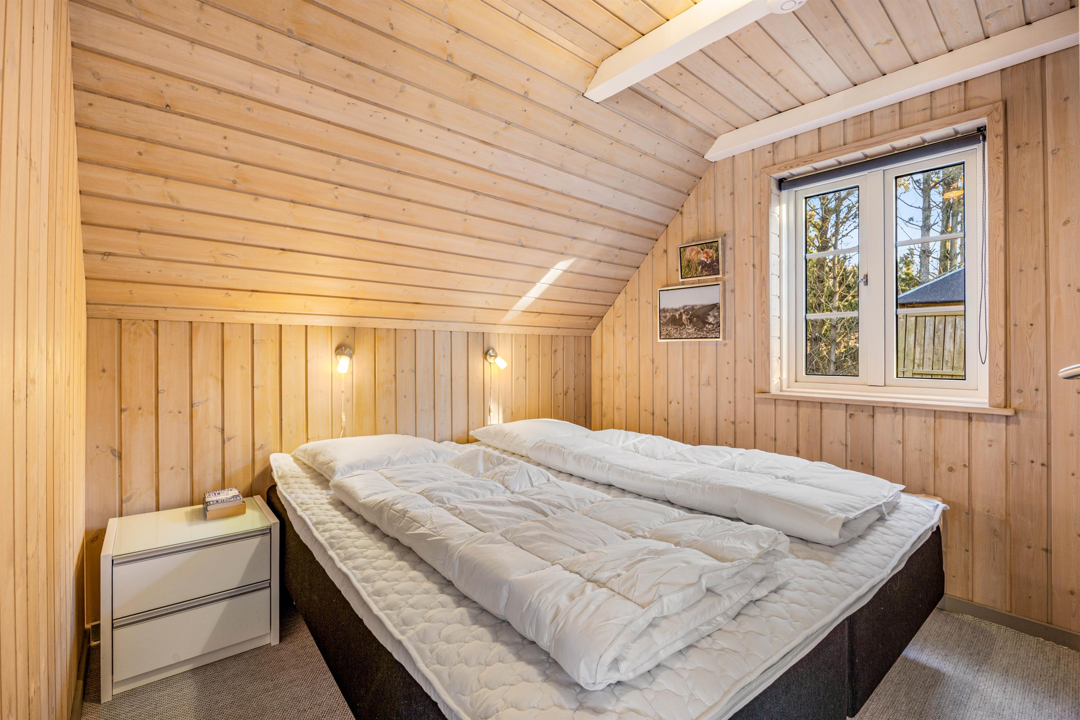 Sommerhuset ligger blot 1000 meter fra det brusende Vesterhav, hvor lange gåture i den vestjyske natur venter jer. Indkøbsmulighederne i Søndervig ligger kun 1400 meter væk, så det er nemt at handle ind uden besvær. I feriebyen Søndervig finder I desuden flere hyggelige caféer, spisesteder og butikker, der indbyder til en afslappende udflugt.