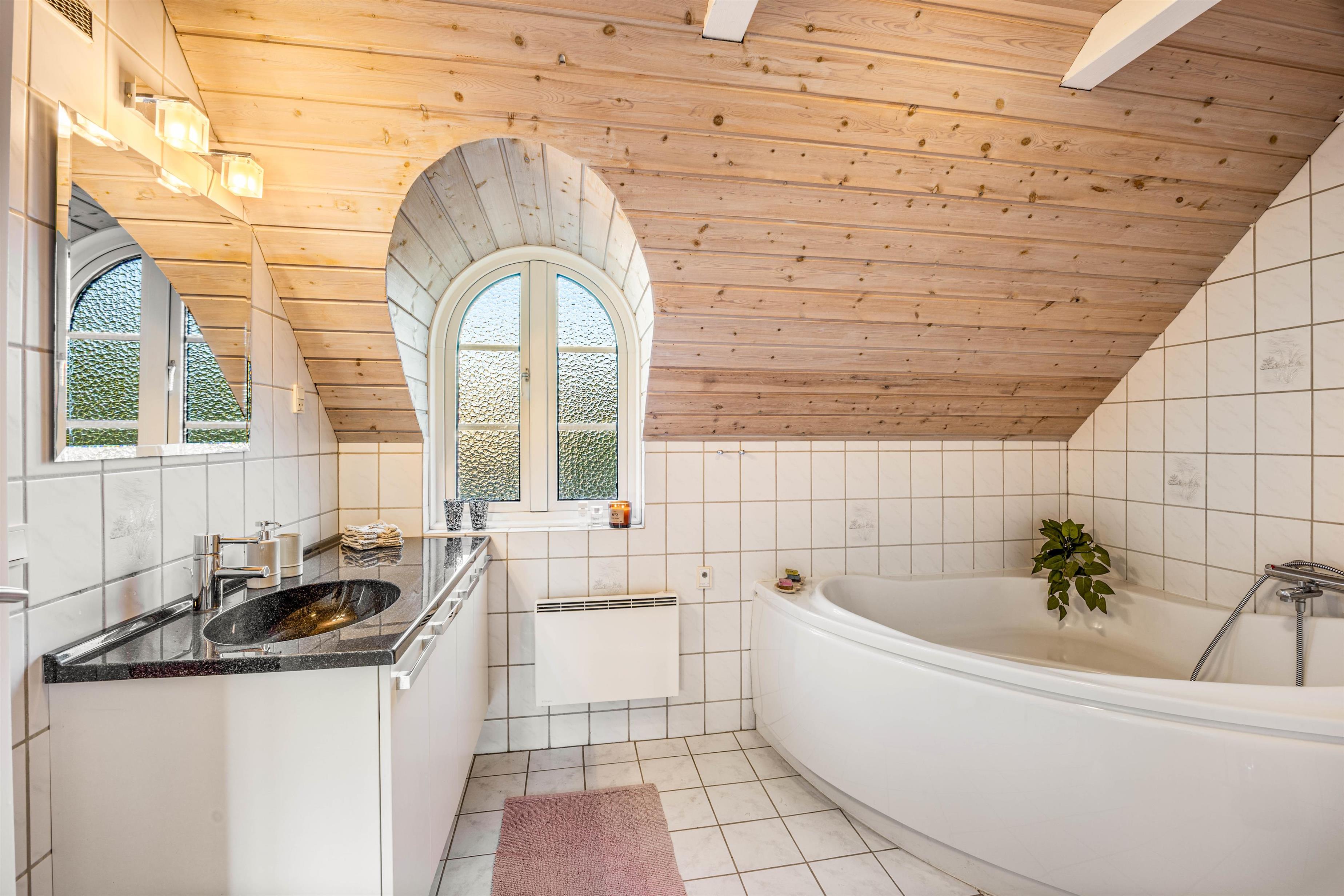 Køkkenet er fuldt udstyret med alt, hvad I behøver for en nem og bekvem ferie. Her finder I blandt andet en opvaskemaskine samt en stor, separat fryser på 80 liter. Derudover er sommerhuset udstyret med en vaskemaskine, som gør det nemt at holde styr på ferietøjet under opholdet. En moderne luft-til-luft varmepumpe sikrer et behageligt indeklima året rundt, og på husets rummelige badeværelse er der gulvvarme, så I kan nyde varme fødder – selv på de køligere dage.