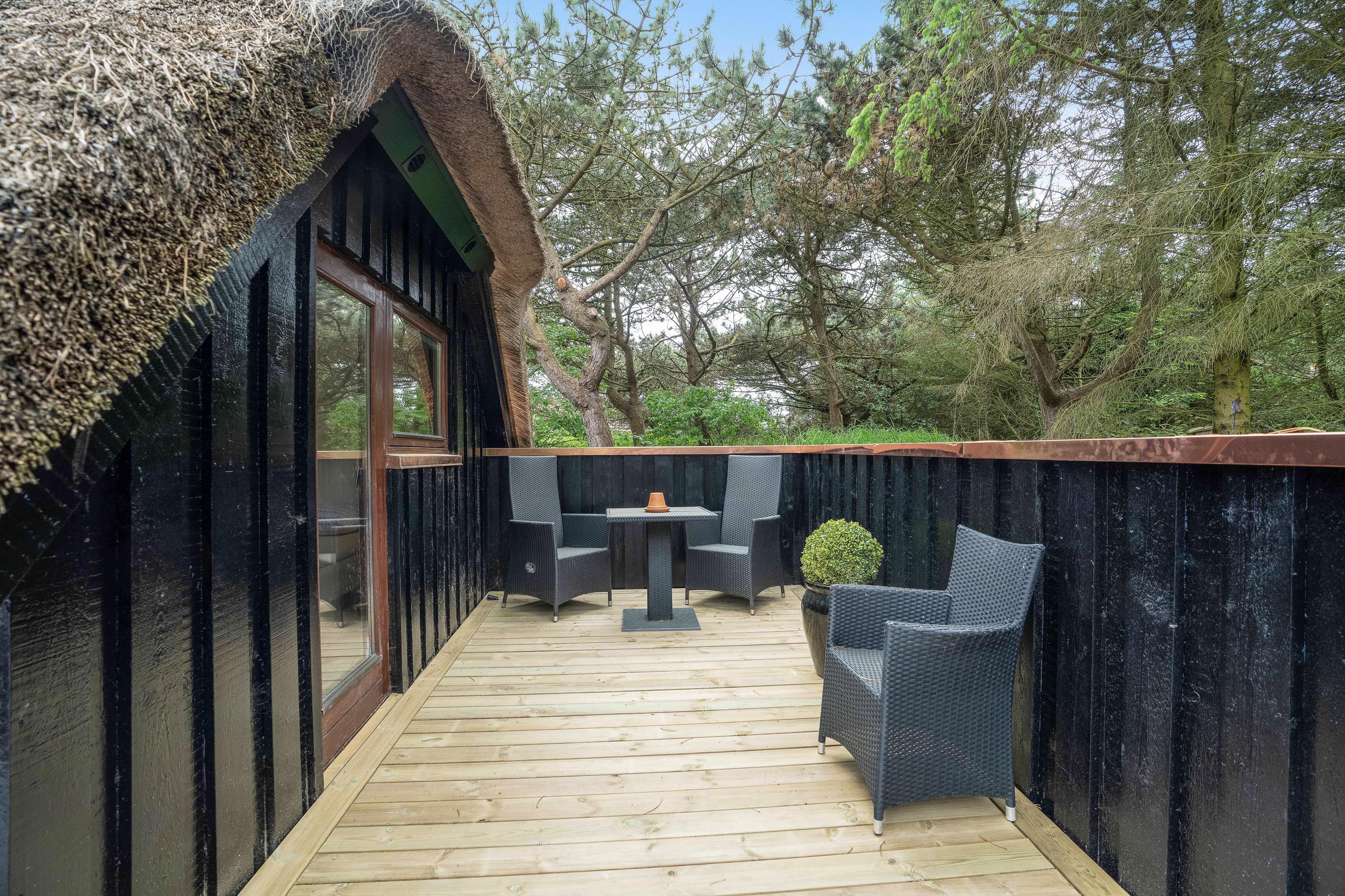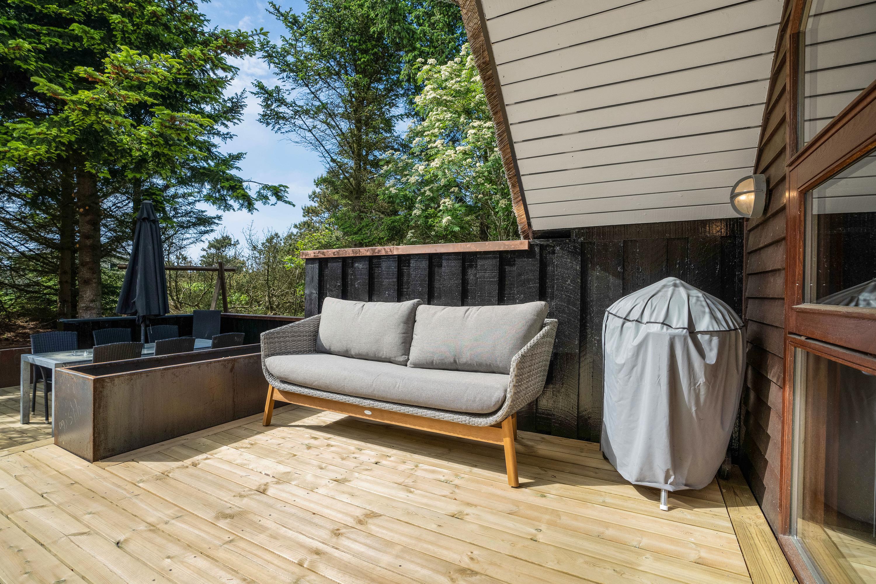 Sommerhuset på Jens Jensens Vej 26 ligger midt inde mellem træerne, og et af sommerhusets highlights er de skønne terrasser, der omgiver sommerhuset. Her findes både havemøbler, solvogne og grill, og her kan I sætte jer med en god bog og lidt koldt at drikke og suge solens stråler til jer. Om aftenen kan I tænde op i grillen og tilberede en lækker middag i den lune aftensol, imens børnene leger i gyngestativet. Feriehuset har desuden en god stor indkørsel, hvor der er rigelig plads til flere biler, hvis I har vennerne med på sommerferie.
