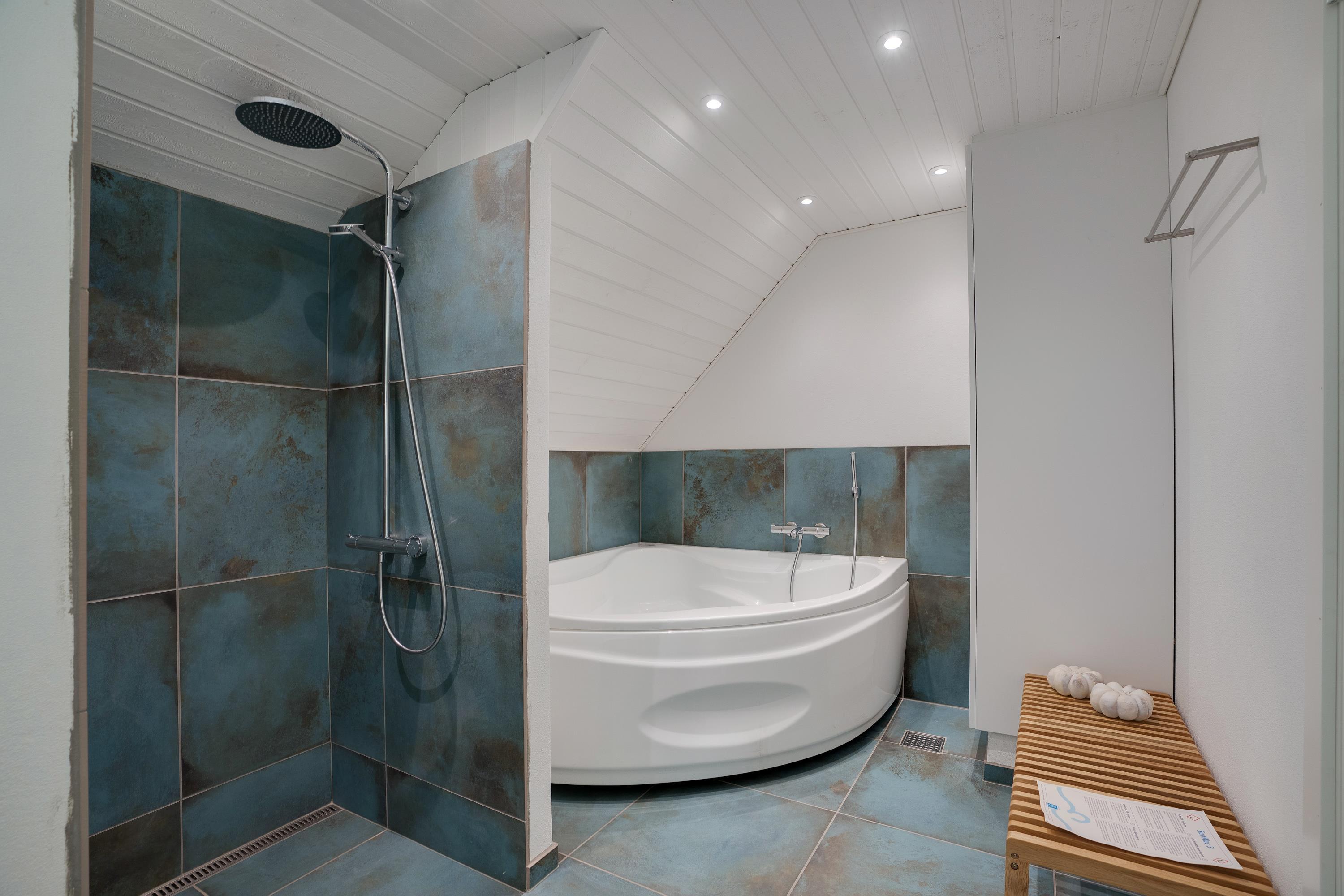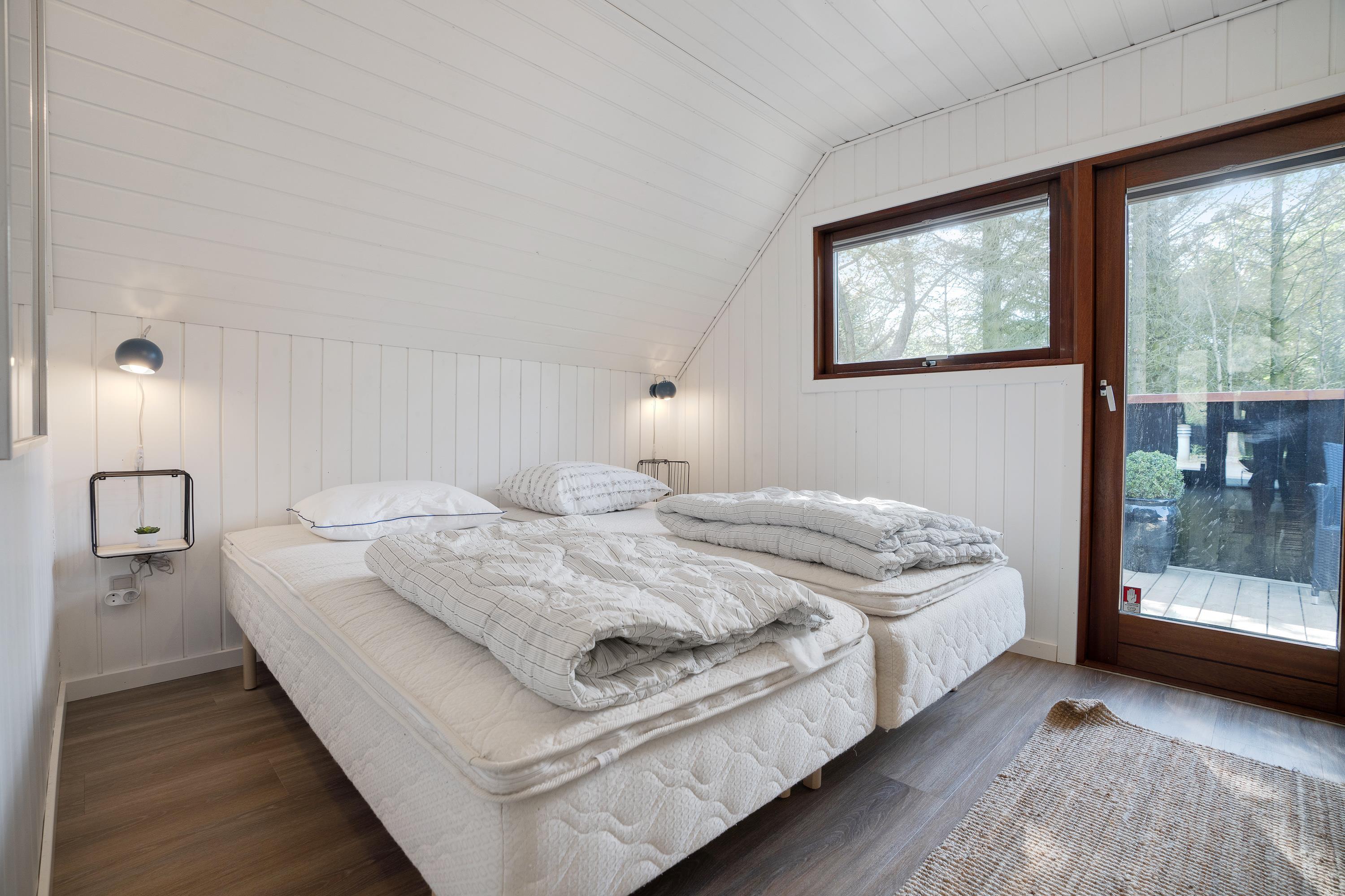 Sommerhuset har 3 soverum, hvoraf de 2 er med dobbeltsenge. Der er 2 lækre badeværelser med moderne hjælpemidler som tørretumbler og vaskemaskine. Fra det ene badeværelse har I adgang til sommerhusets sauna og spa, som giver en følelse af wellness og afslapning på ferien.