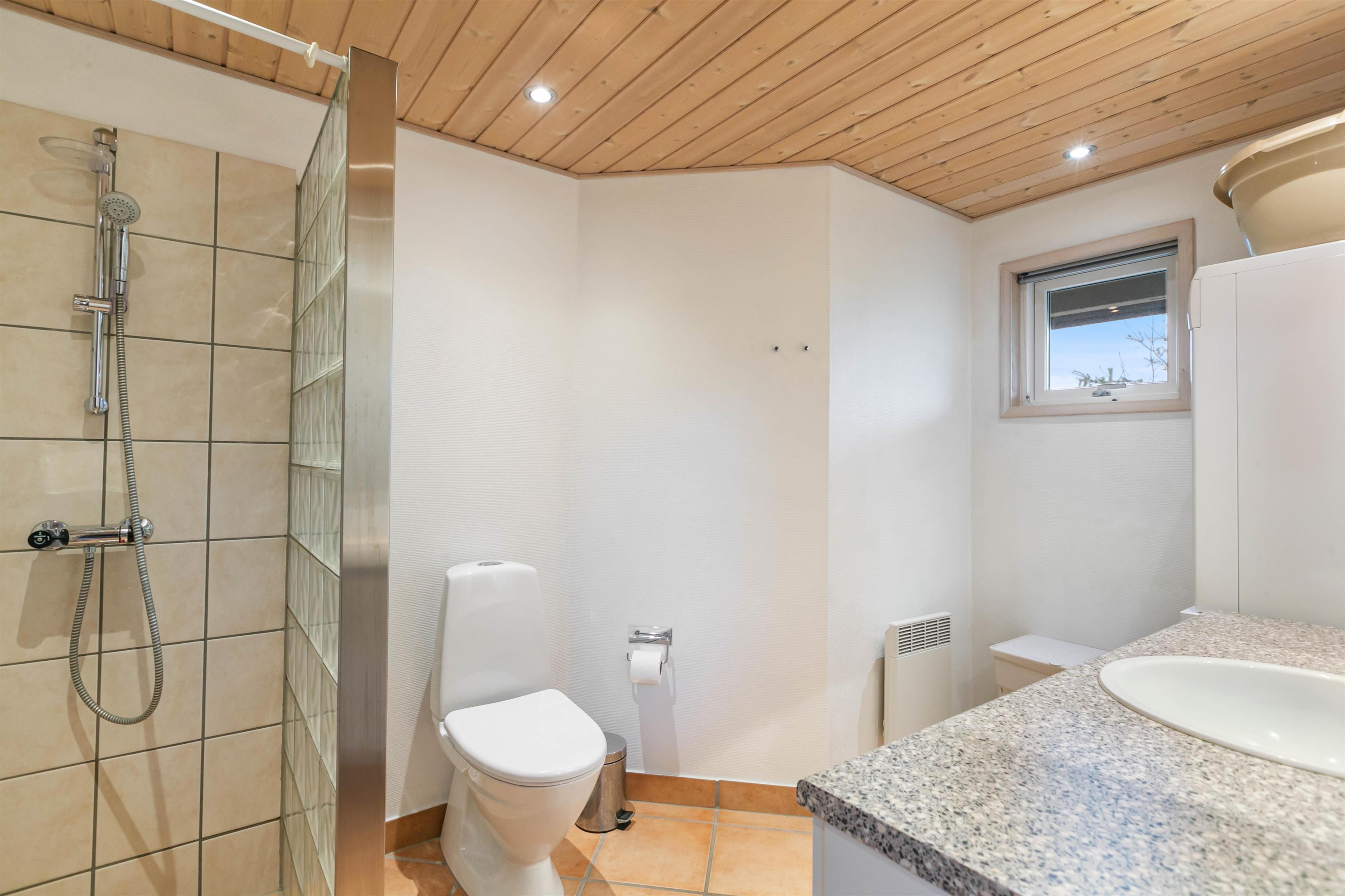 Rundt om ferieboligen er en stor og rigtig lækker træterrasse, som virkelig indbyder til udendørs hygge og komsammen. Den er delvis overdækket både mod sydøst og mod sydvest og her er der plads til at nyde de lange sommerdage med grill, spil og afslapning. Den naturlige afskærmning af træer og buske, gør at du slet ikke bemærker naboerne. En virkelig dejlig grund at holde sin ferie på.