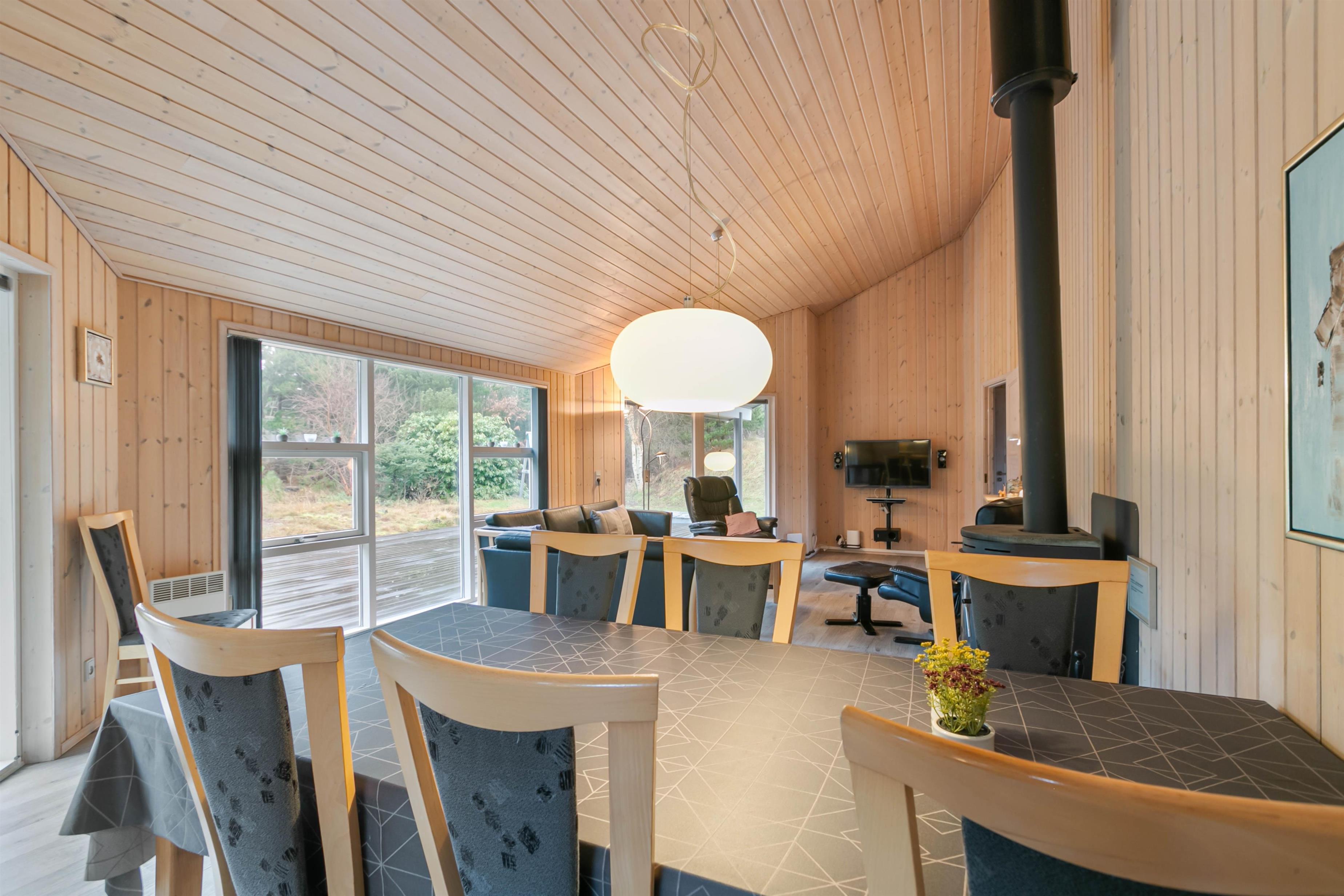 Et utrolig dejligt feriehus med plads til hele familien. Sommerhuset er lyst og venligt indrettet med en skøn og uforstyrret beliggenhed på en naturlig afskærmning af træer og buske. Her er 3 dejlige lyse soveværelser, alle med 3 dobbeltsenge. 2 rigtig gode badeværelser, hvoraf det ene er med sauna og spabad. I hjertet af huset finder du en dejlig stue/spisestue med stort vinduesparti med kig ud til den store terrasse og de store træer der omkranser grunden. Køkkent er stort og veludstyret med et køleskab på 225 liter, og ligger i åben forbindelse med spisestuen/stuen. Der er et Internet Fladskærms-TV i huset og en Blu-ray afspiller, så i kan se jeres medbragte Blu-ray eller DVD film.