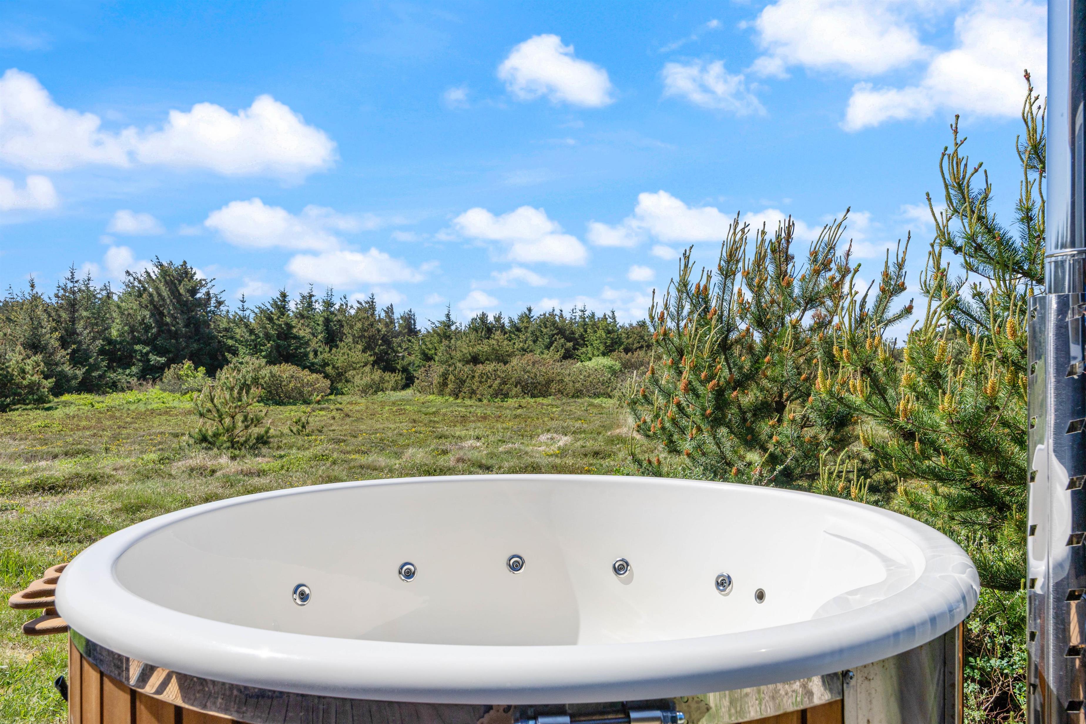 Sommerhusets højdepunkt er det ene af de to badeværelser, hvor I finder en lille wellness-afdeling med spabad og sauna. Læn jer tilbage i spabadet eller saunaen, lad jeres kroppe slappe af og få ladt batterierne fuldt op igen.