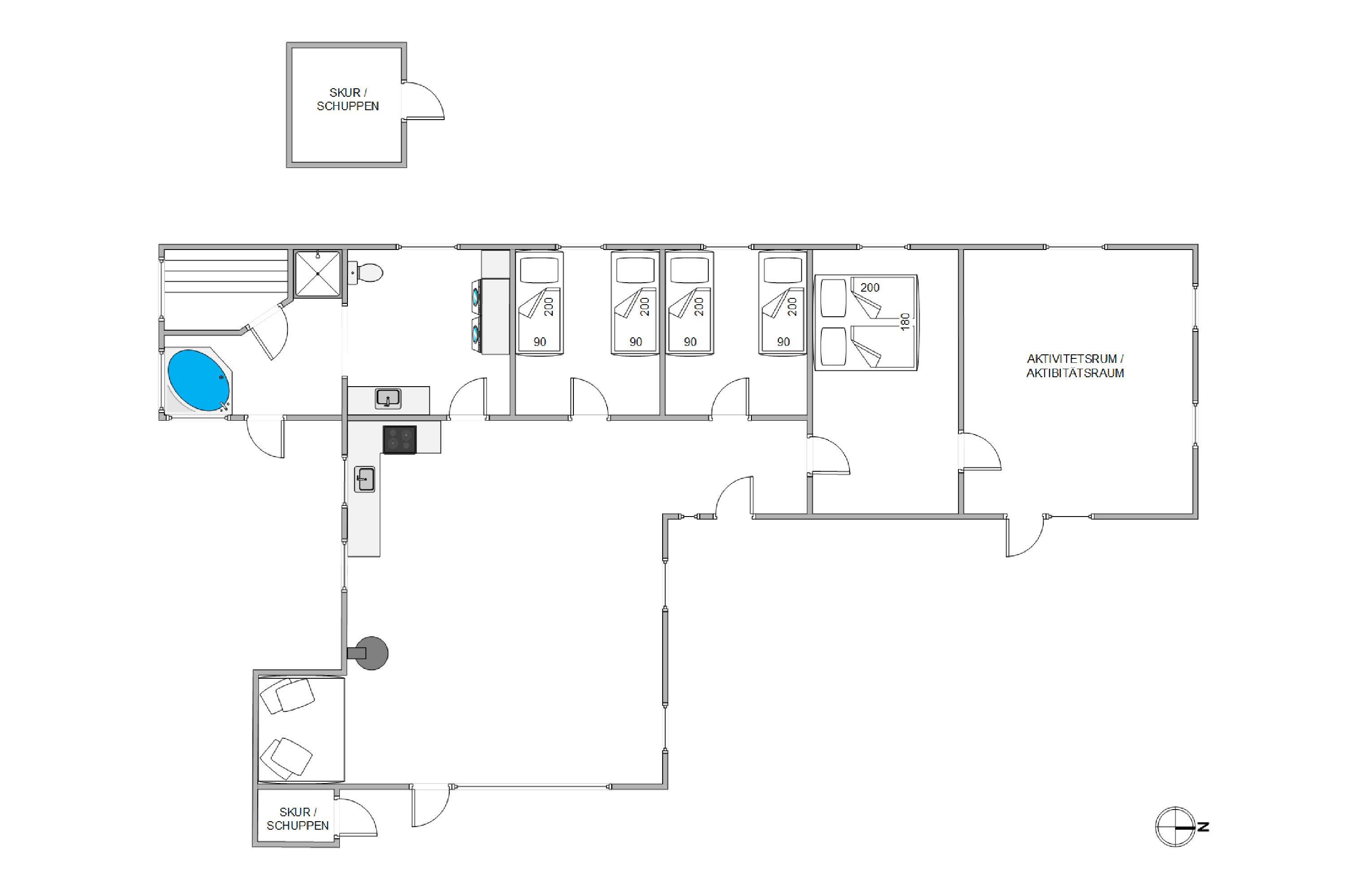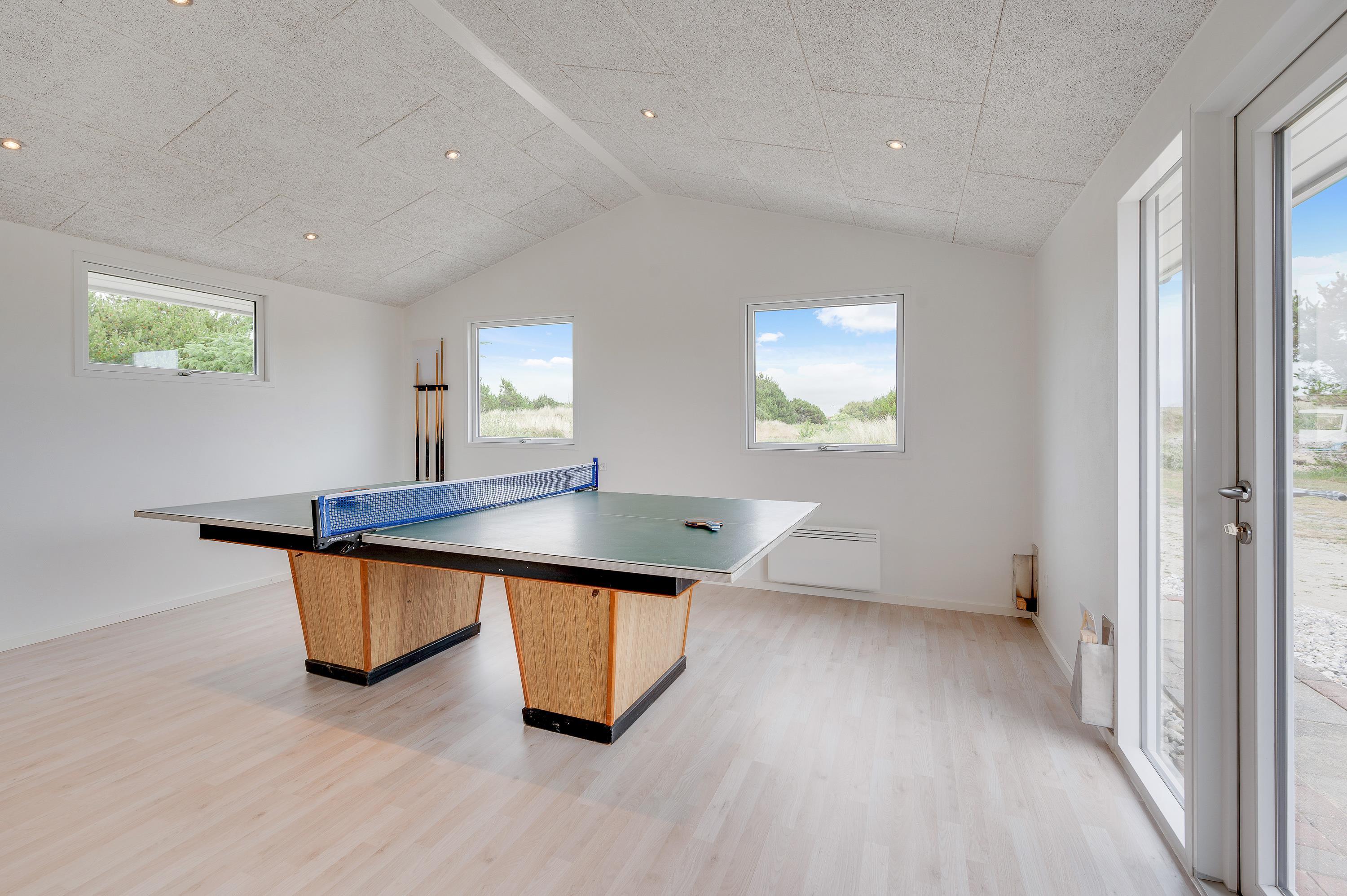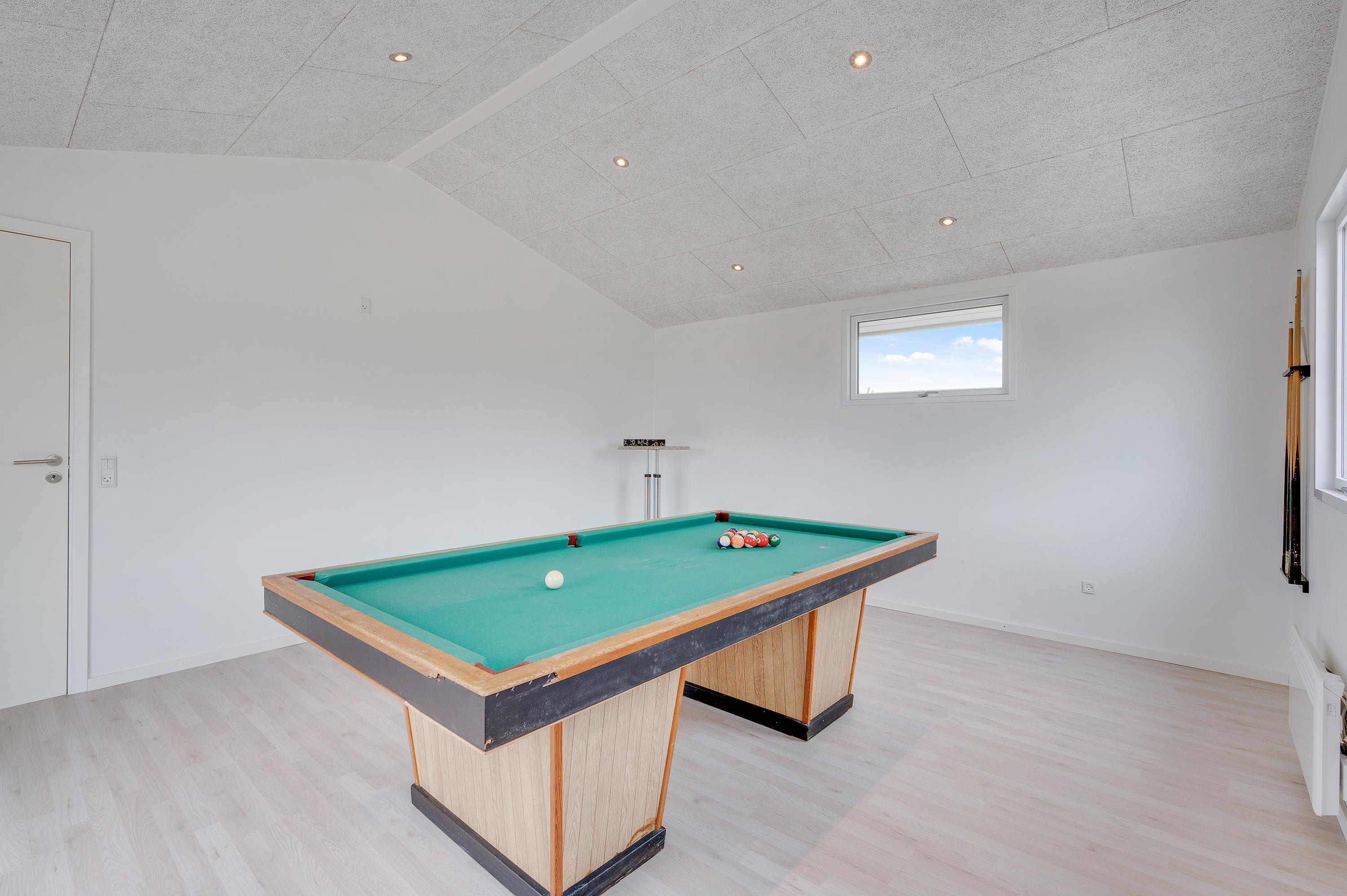 Udover at være et indbydende sted at bo, tilbyder sommerhusets flere aktivitetsmuligheder. I huset finder I også et aktivitetsrum med billard og bordtennis, der giver timevis af underholdning for både børn og voksne. En brændeovn er med til at skabe en hyggelig atmosfære, hvor aftener kan nydes med samvær og sjov.
