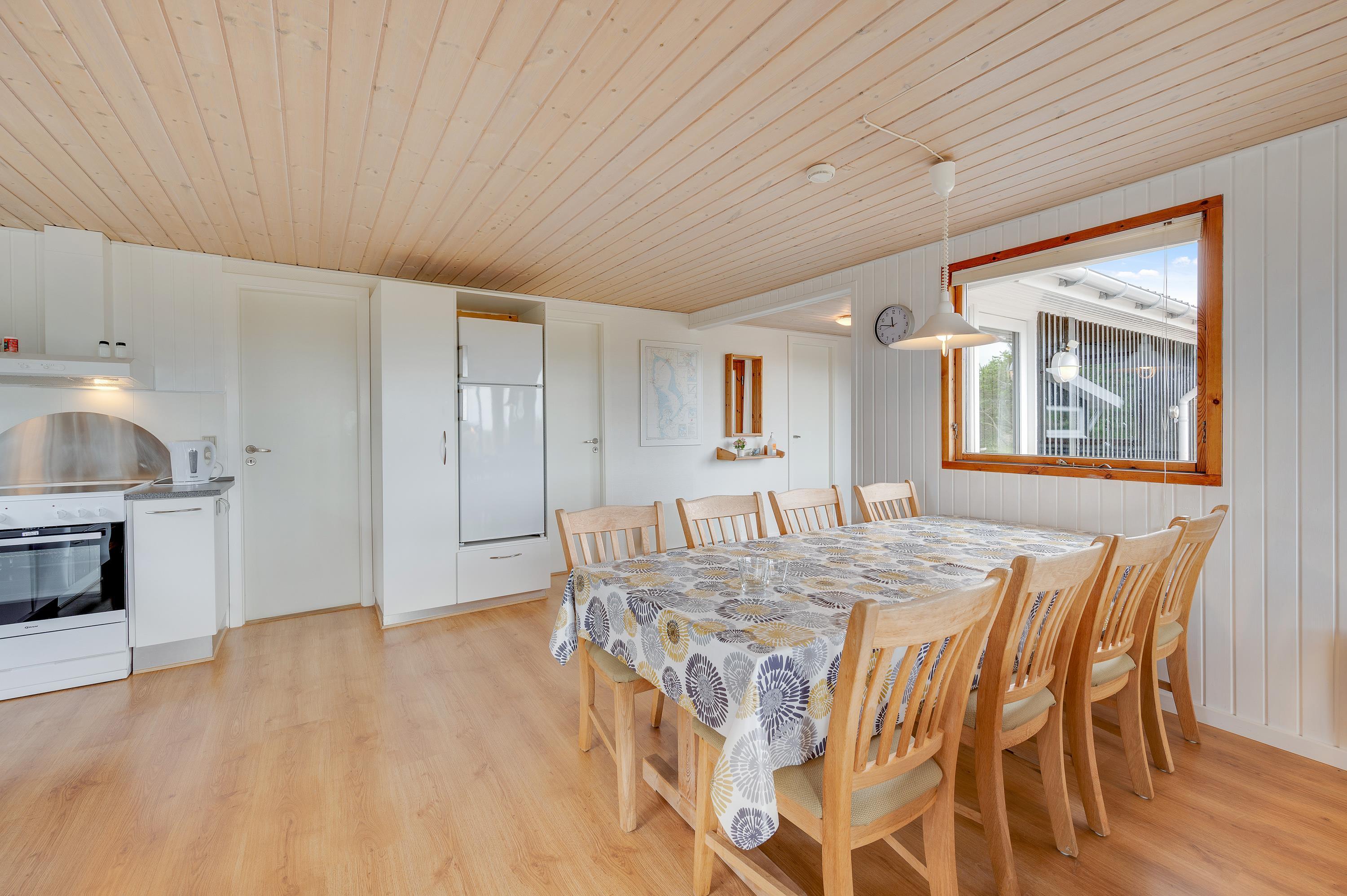 Et hyggeligt og velholdt feriehus med plads til 6 personer fordelt på 3 værelser. Det ene er med dobbeltsenge, og de 2 andre værelser er med enkeltsenge. Badeværelset er med gulvvarme og bruseniche. Stue, spisestue og køkken er i et stort åben rum, så her kan man snakke sammen, uanset hvor man sidder, og samtidigt nyde varme fra brændeovnen. Sommerhuset råder også over trådløst internet og et fladskærms-TV, hvilket er med til at give jer den samme hjemlige følelse, som I jo også har derhjemme.