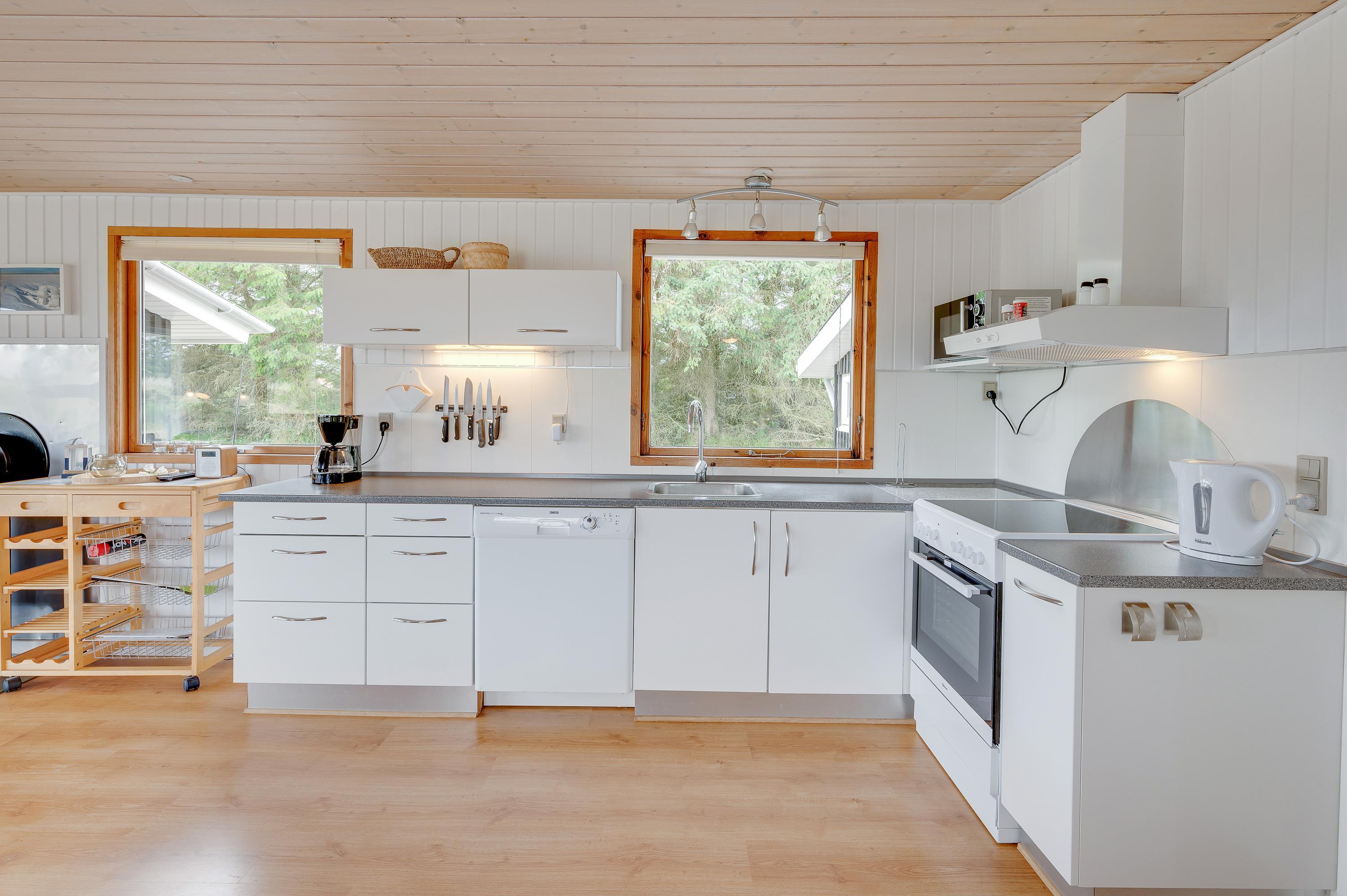 Med praktiske faciliteter såsom en opvaskemaskine, en vaskemaskine og en tørretumbler bliver de praktiske aspekter af ferien let klaret. For yderligere komfort er sommerhuset udstyret med en luft-til-luft varmepumpe, der sikrer et behageligt indeklima året rundt. I det veludstyrede badeværelse er der gulvvarme, som giver ekstra velvære, samt en tømmespa og sauna til ren afslapning efter en dag fyldt med oplevelser.