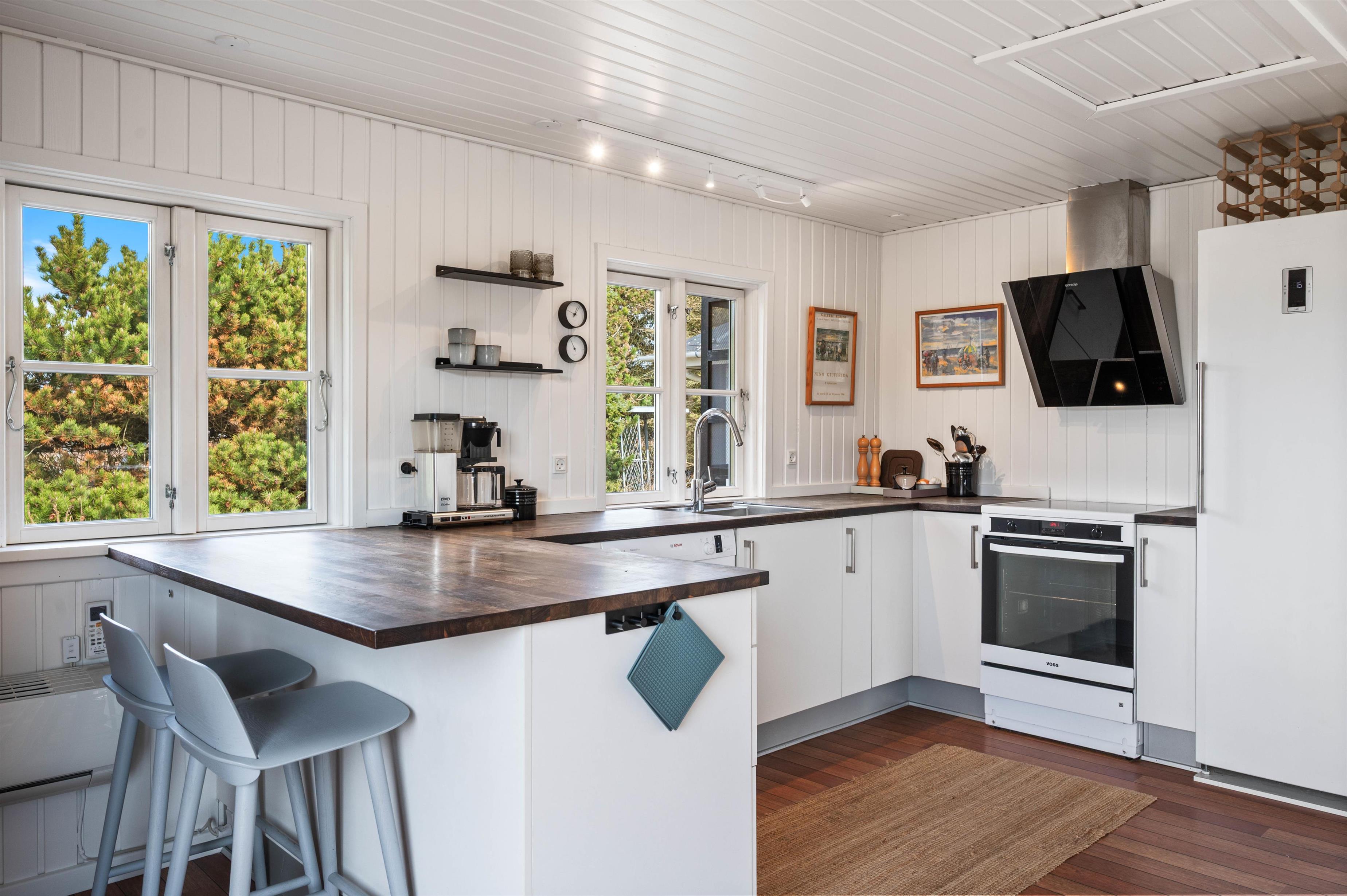 Lige så snart I træder ind ad hoveddøren her, vil I straks føle jer hjemme og godt tilpas. Her har man virkelig lyst til at holde ferie og komme helt ned i gear. Opholdsrummet byder på en hyggelig atmosfære, og på de koldere feriedage har I mulighed for at tænde op for brændeovnen, som bidrager til en ekstra god feriestemning. Er brændeovnen ikke i gang, har I mulighed for at benytte jer af den energibesparende luft-til-luft varmepumpe eller elvarme.