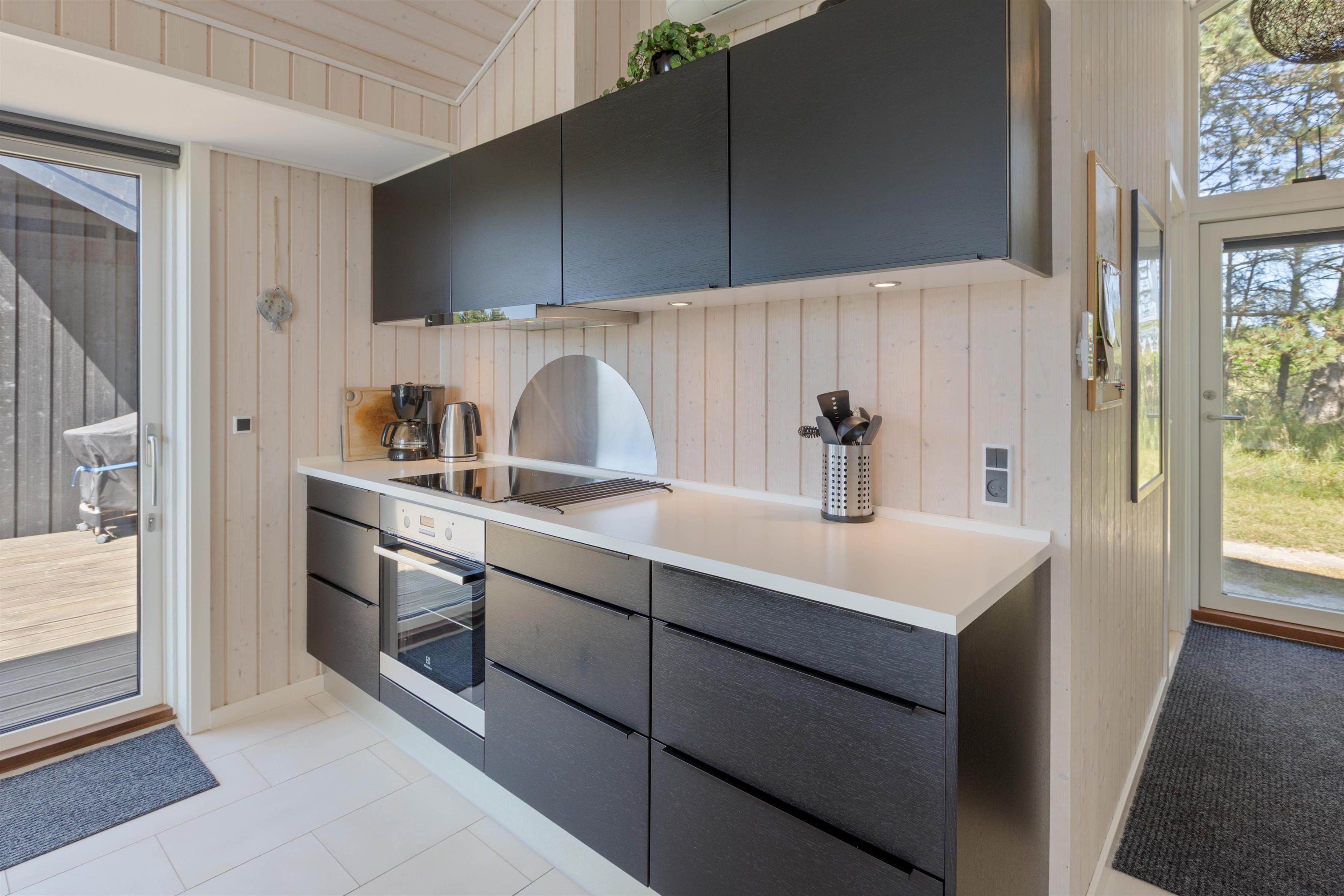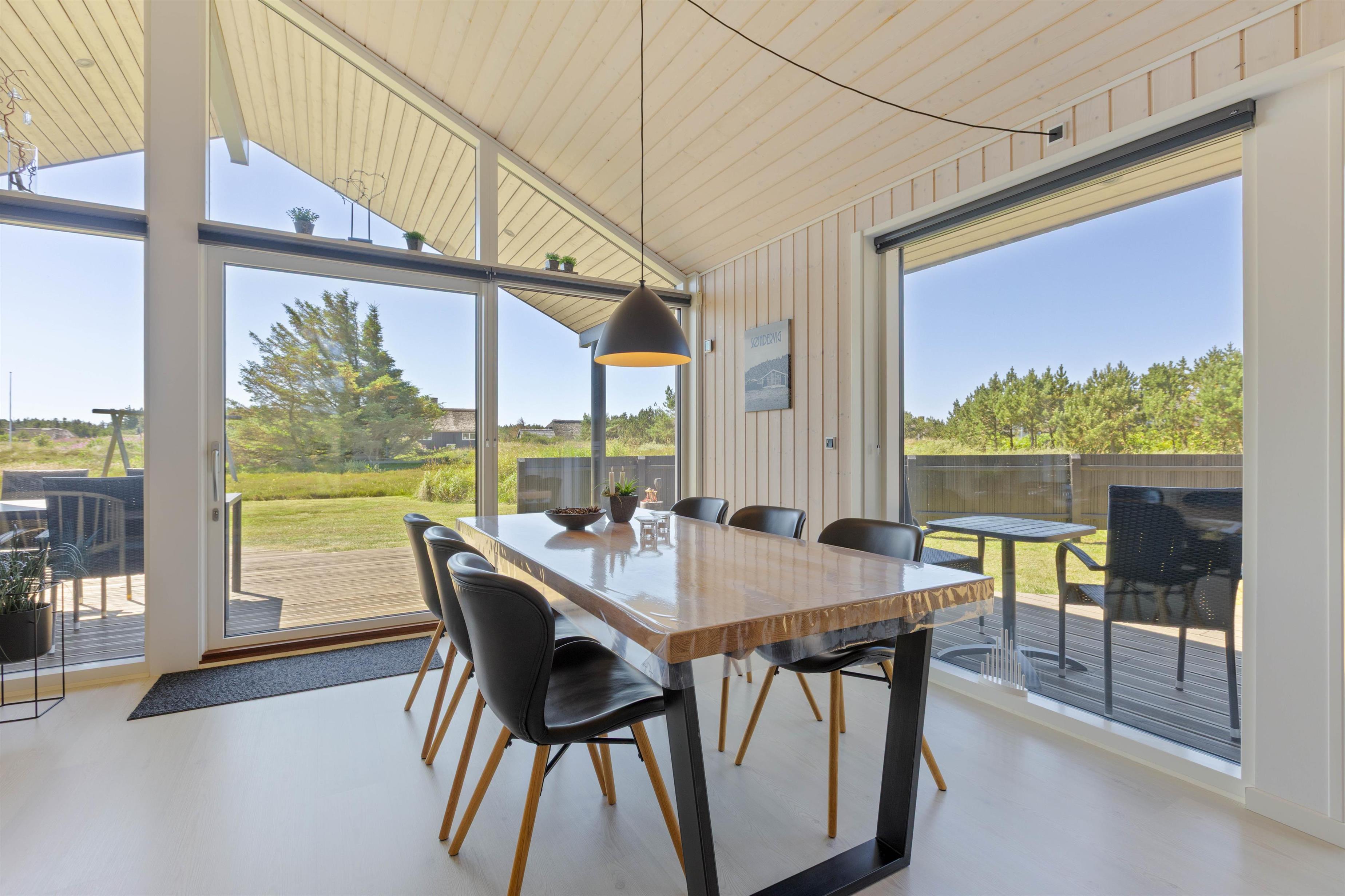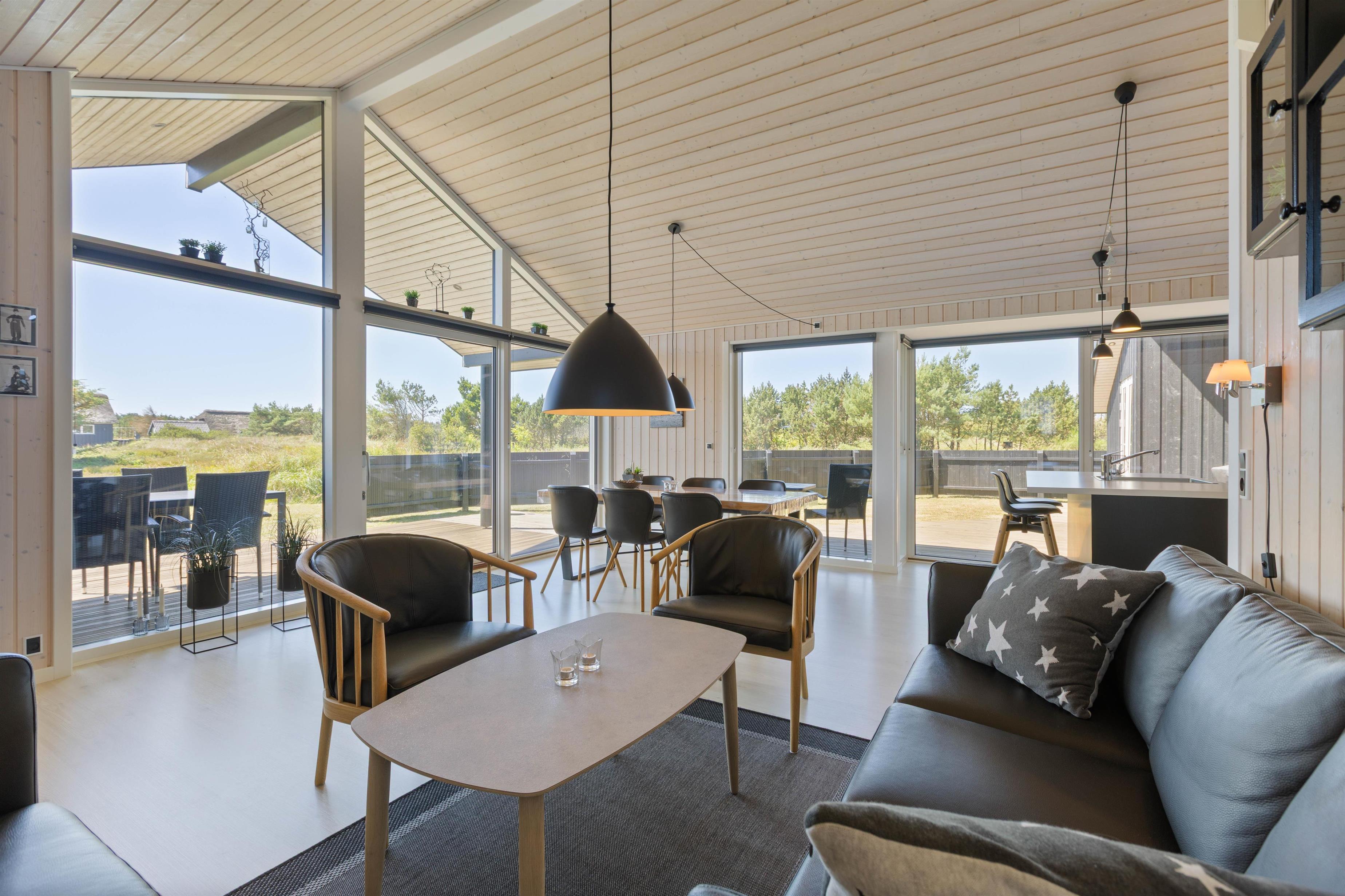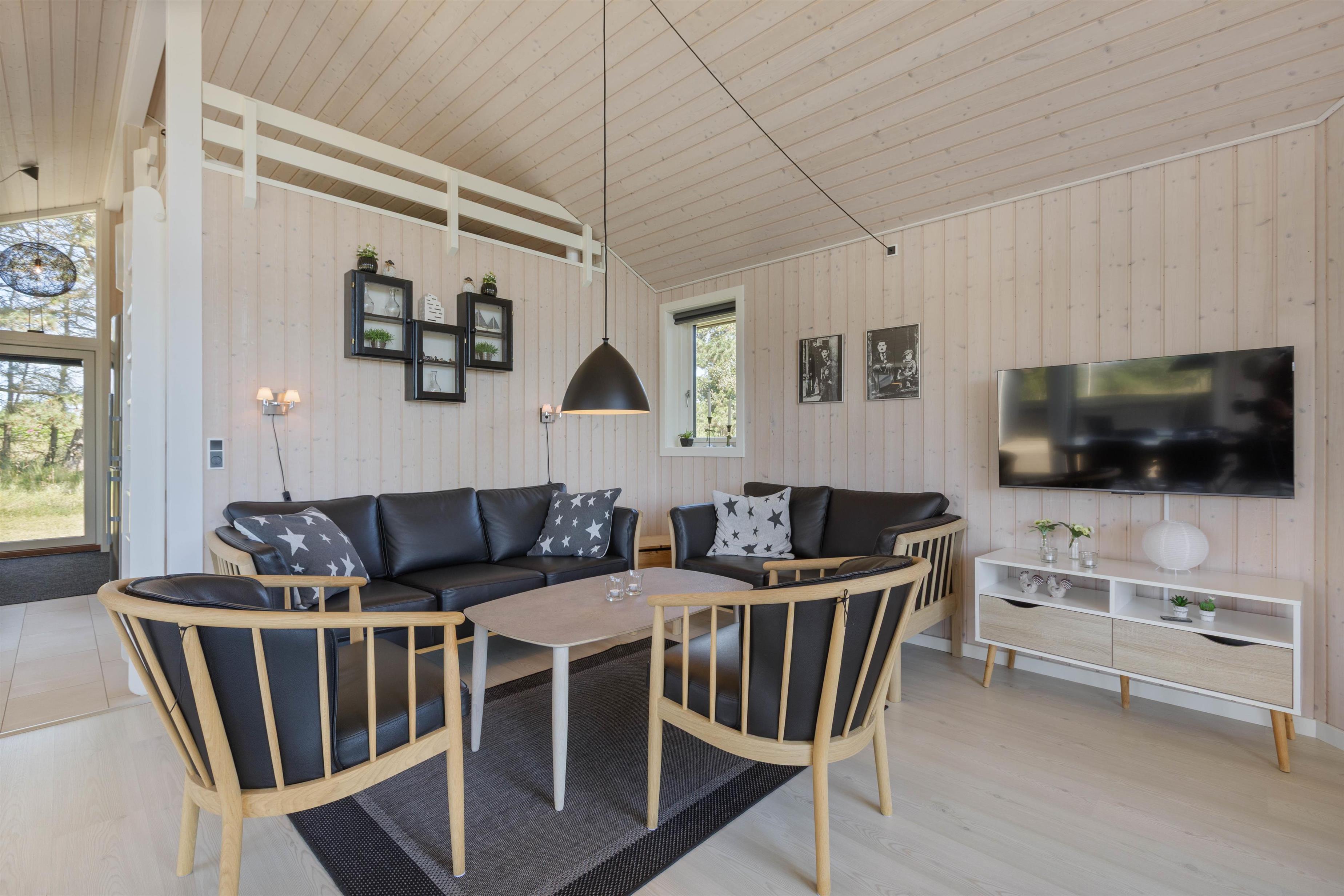 De lyse trælofter, gulve og vægge sørger for en venlig atmosfære, hvor I fra første ferieøjeblik vil føle jer godt tilpas. I det kombinerede opholdsrum med stue, køkken og spiseafdeling er rammerne sat for en ferie med masser af samvær og fællesskab.
