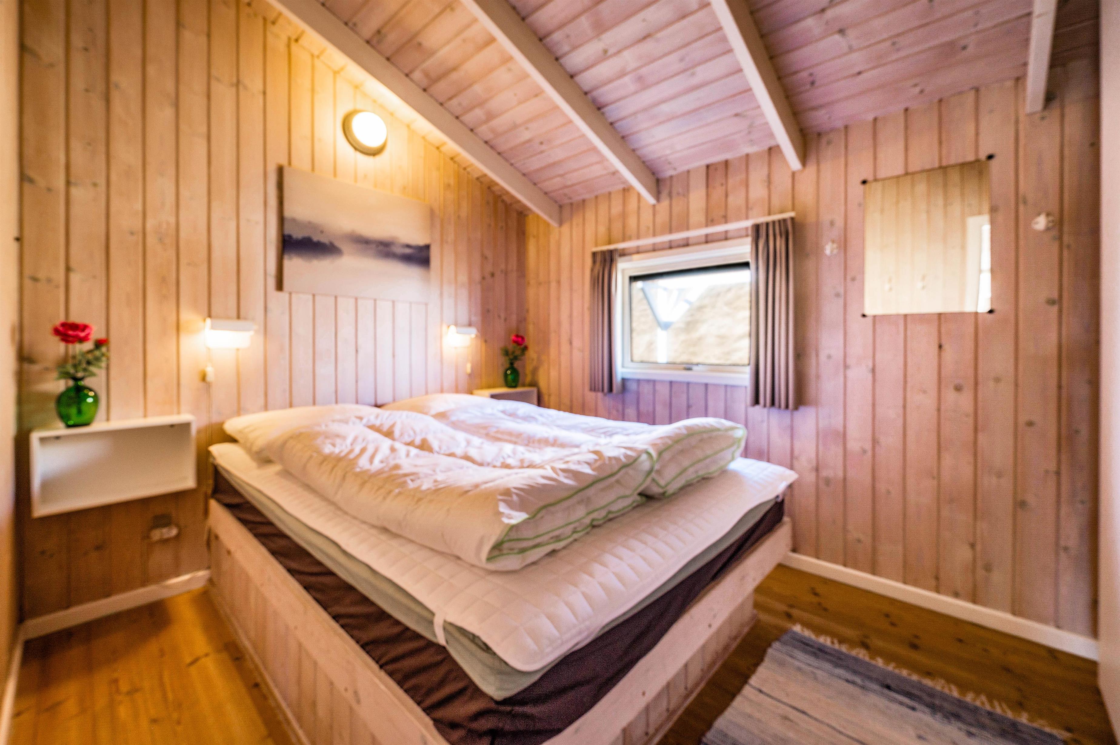 Huset er indrettet med 4 lyse og gode soveværelser. 3 af disse værelser er udstyret med komfortable dobbeltsenge, mens det sidste værelse er indrettet med 1 køjeseng og et mindre skrivebord. I har derfor god plads til at kunne invitere bedsteforældrene med på ferie.