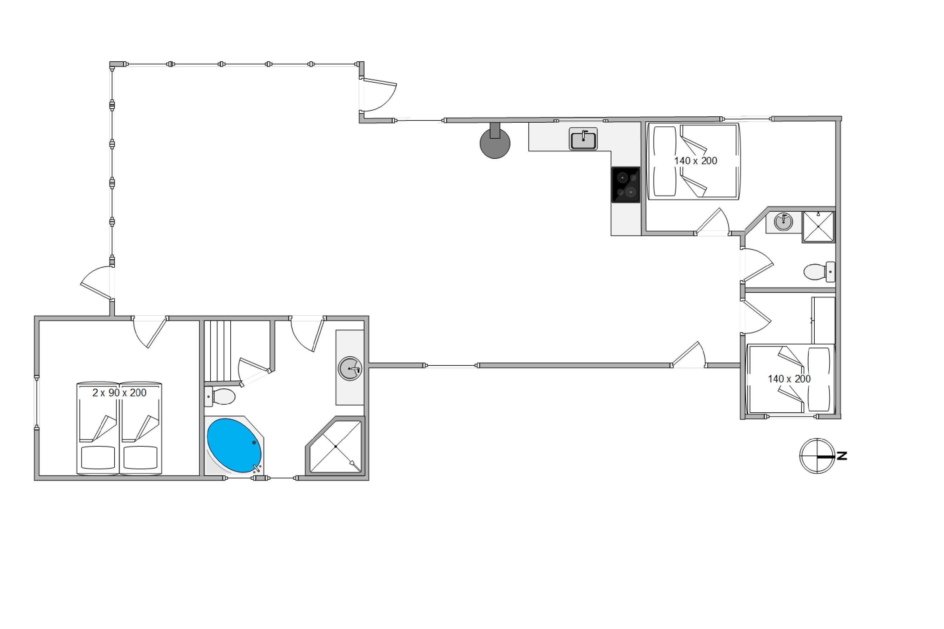 Feriehuset blev renoveret i 2026, så det i dag fremstår lyst, venligt og indbydende til en dejlig ferie. Det er flot og rummeligt indrettet, så du og familien har masser af plads. Sommerhuset består af i alt 98m2 og kan i alt rumme op til seks feriegæster, hvorfor de to badebadeværelser i sommerhuset altid er et plus – især når det ene har både har spabad og sauna, hvor du rigtig kan slappe af og nyde varmen.
