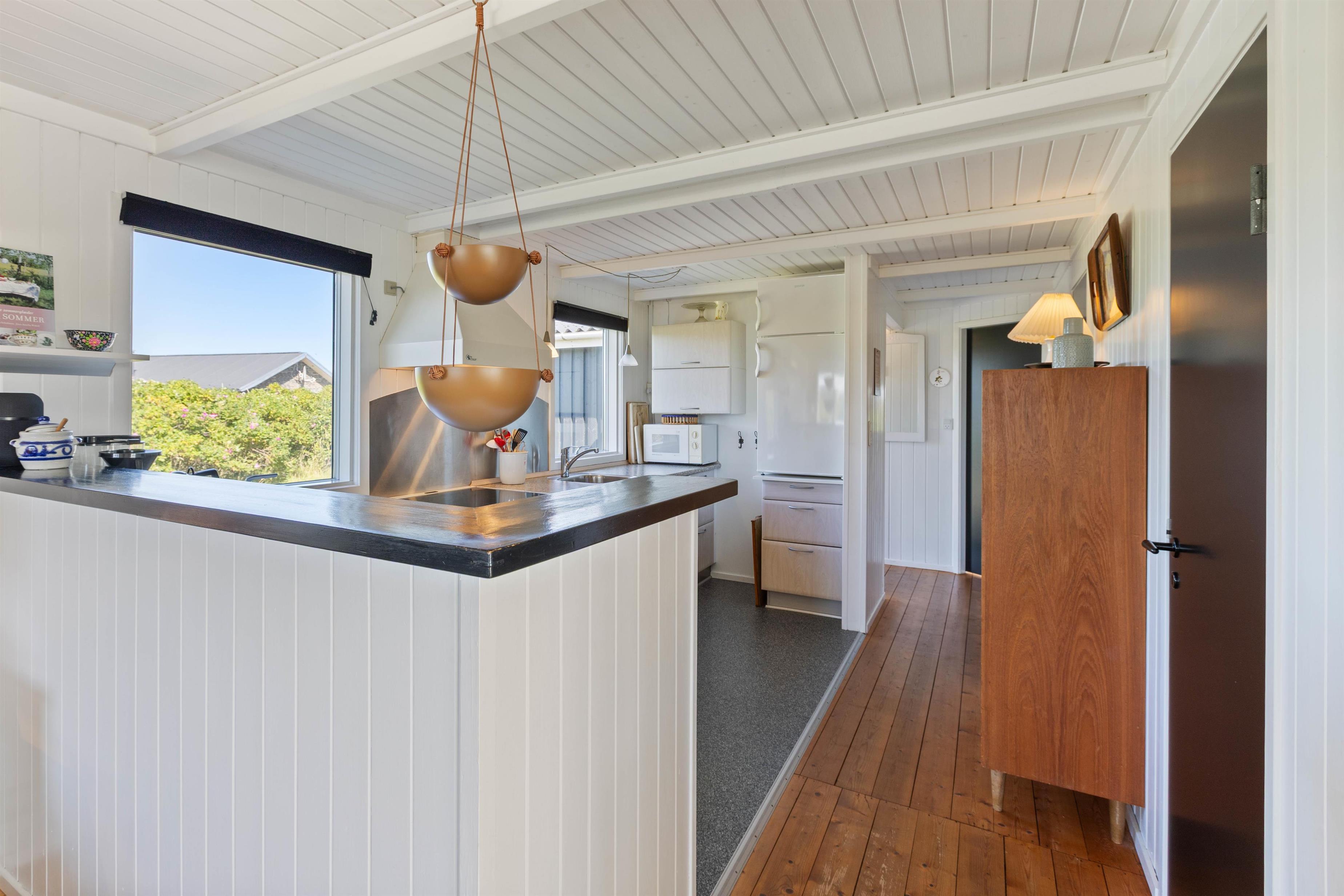 Det 73 m2 store sommerhus ligger på Hafavej lige nord for Søndervig. Det attraktive ferieområde er kendetegnet ved flot natur og rolige omgivelser. Det hyggelige feriehus er fra 1965, dog renoveret i 2013, hvilket tilfører huset en charme og autencitet, som du ikke ser i et nyt hus. Samtidig er indretningen gjort tidssvarende og let med hvide lofter og vægge og pæne møbler. Huset har i alt tre soverum, som alle er med dobbeltseng. Huset kan derfor bruges af par, der holder ferie sammen eller en større børnefamilie.