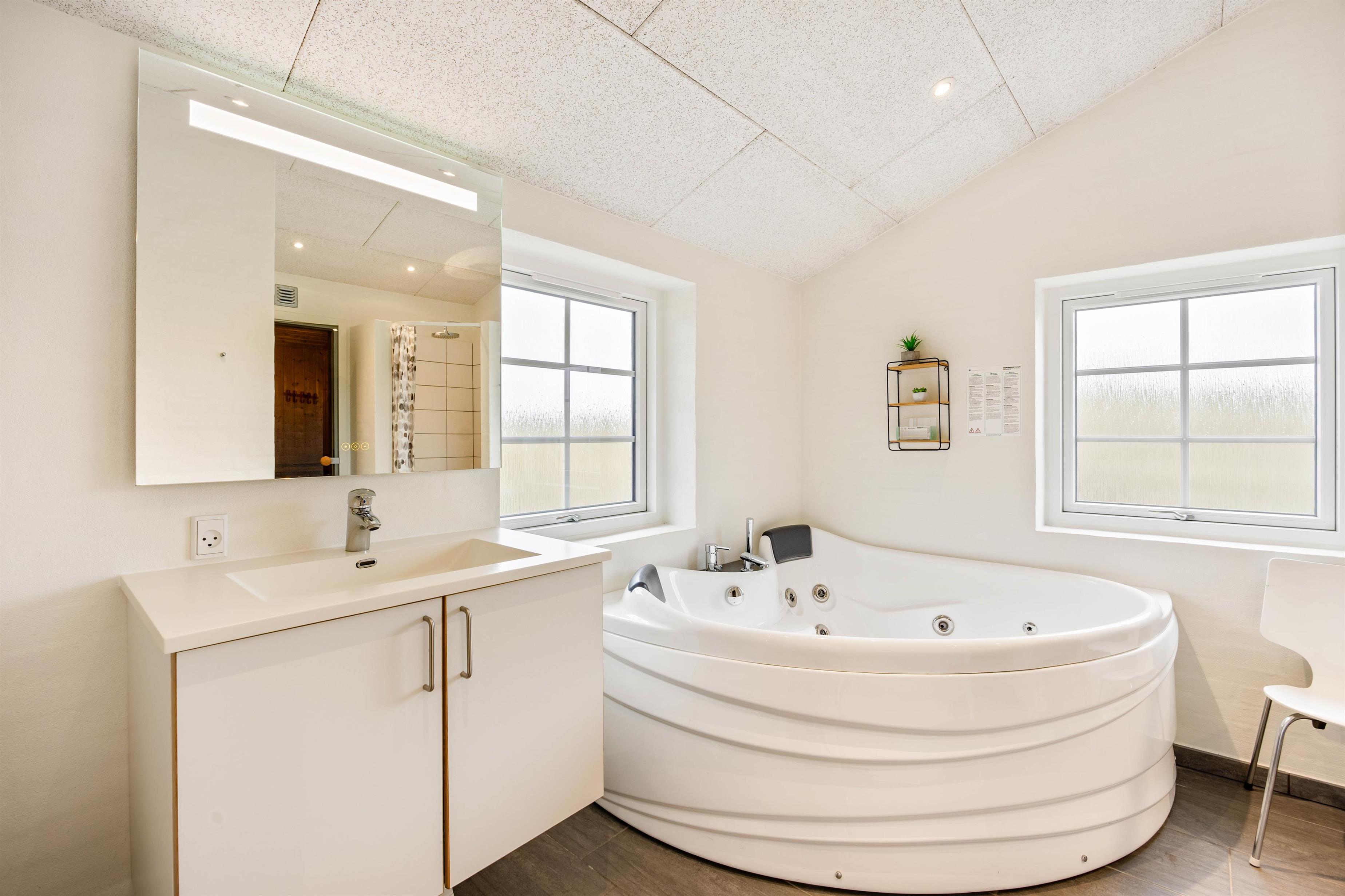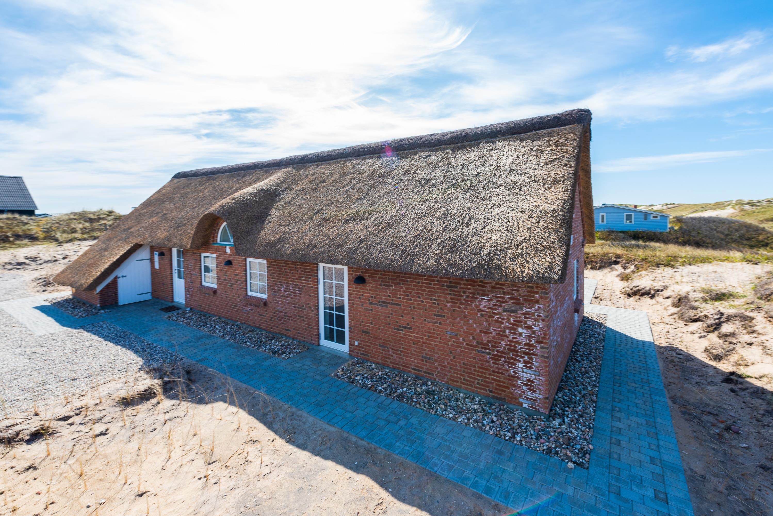 I det stråtækte sommerhus i Søndervig er rammerne sat for en ferie i ekstraordinære omgivelser. Med højt til loftet, store vinduer og lyse farver er der gjort meget for, at I skal føle jer godt tilpas, og den moderne og stilfulde indretning vil alles smag. Et af sommerhusets highlights finder I på det største af 2 badeværelser – det er nemlig indrettet med både sauna og spabad, så I kan forkæle jer selv lidt ekstra på ferien. I varmen kan I tanke ny energi langt væk fra den travle hverdag.