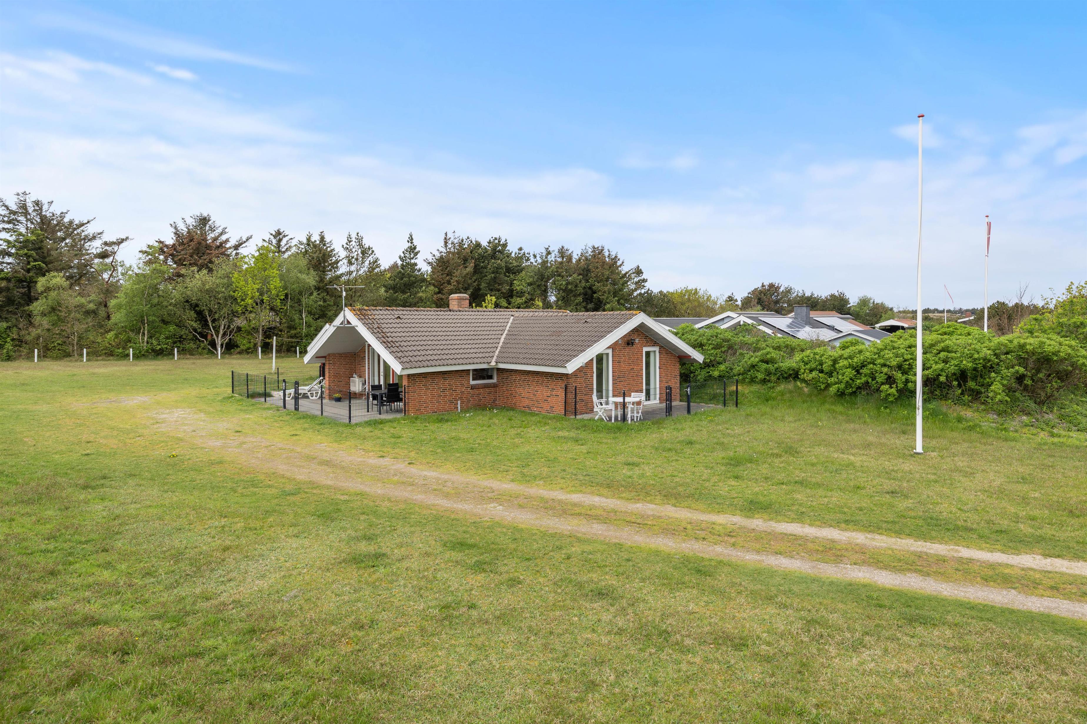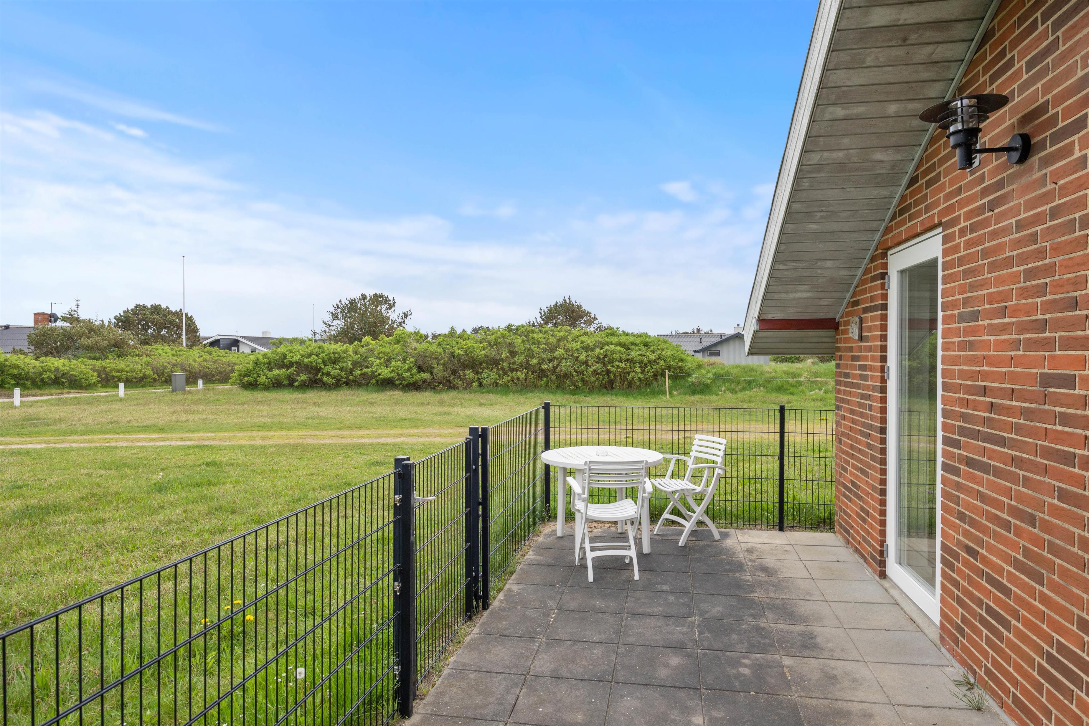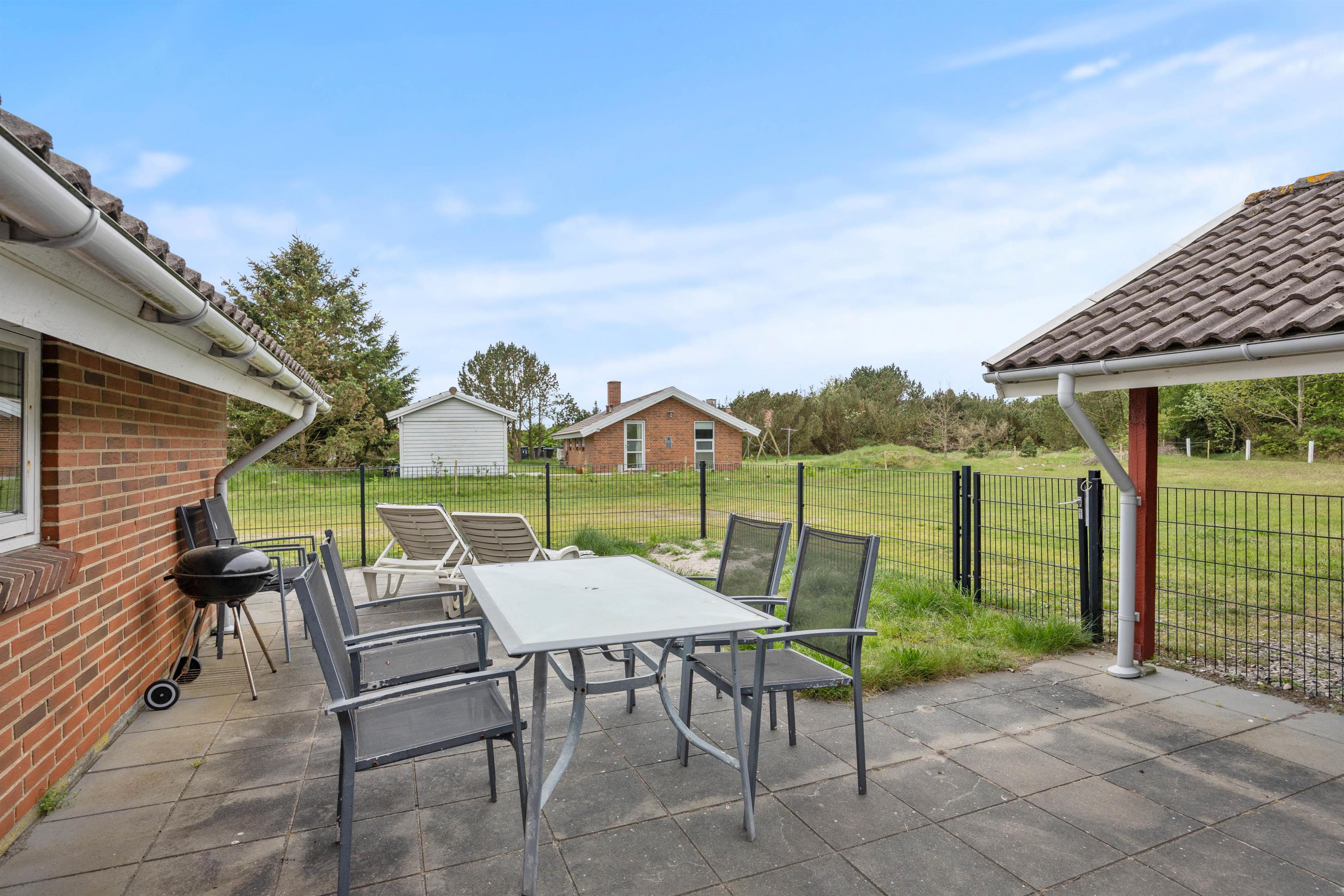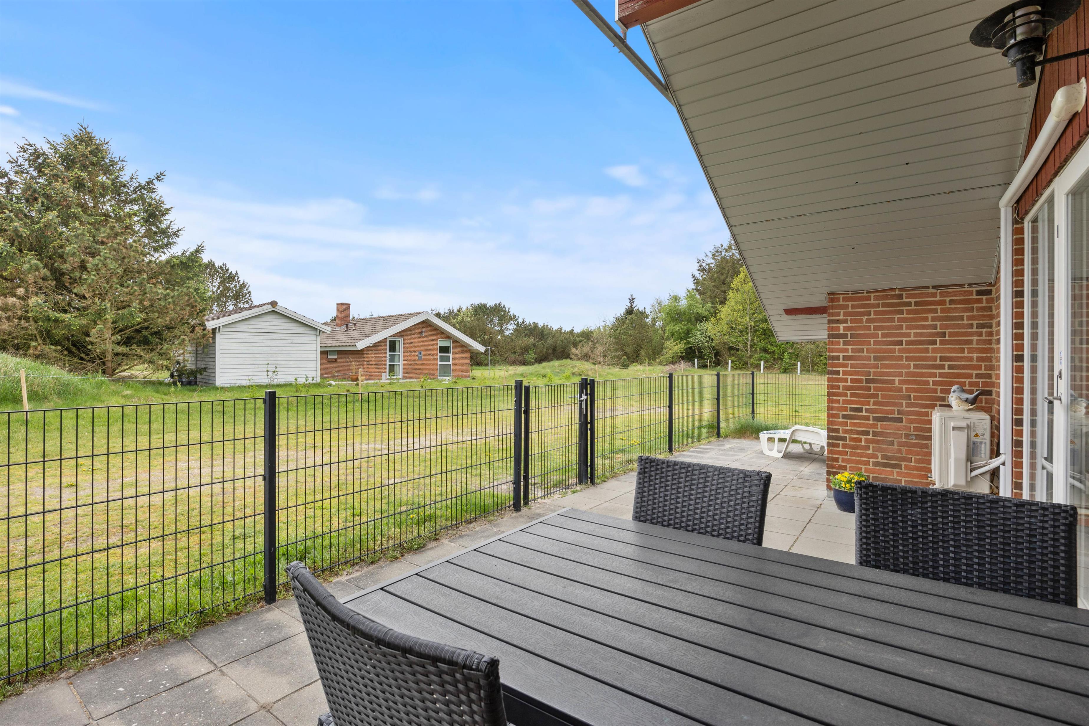 På den store plæne er der rig mulighed for både boldspil og leg. Det gør huset til den ideelle ramme for både børnefamilier og hundeejere. Huset råder over flere terrasseområder, der alle er lukkede med hegn, og herfra har I frit udsyn over plænen og børnenes leg. De aflukkede terrasser er også praktiske foranstaltninger for både hunde og mindre børn, da de ikke kan forvilde sig ud på eventyr på egen hånd