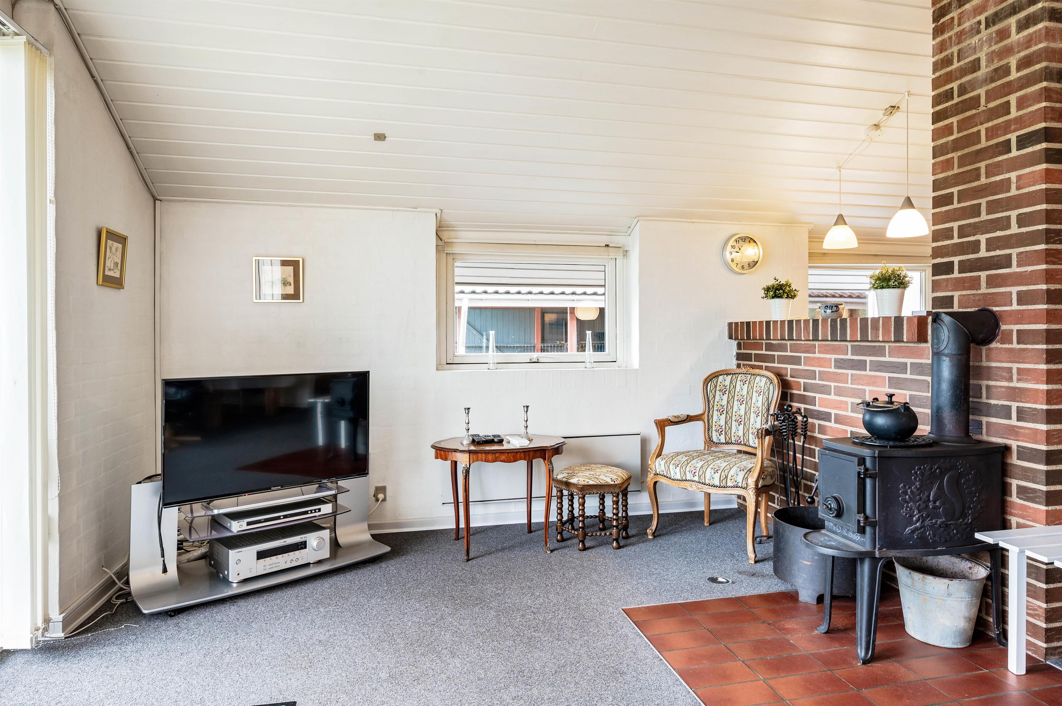 Huset fremstår lyst og indbydende, og straks I træder indenfor døren, vil I føle jer hjemme i de hyggelige omgivelser. Opholdsrummet er husets naturlige hjerte, da det er her, køkken, stue og spisekrog forenes. I stuen er der gjort klar til at I kan slappe af foran tv’et, mens brændeovnen knitrer lystigt i baggrunden. Stuen er udstyret med gratis internet, parabol, radio og CD. Der er med andre ord ikke risiko for, at I kommer til at kede jer.