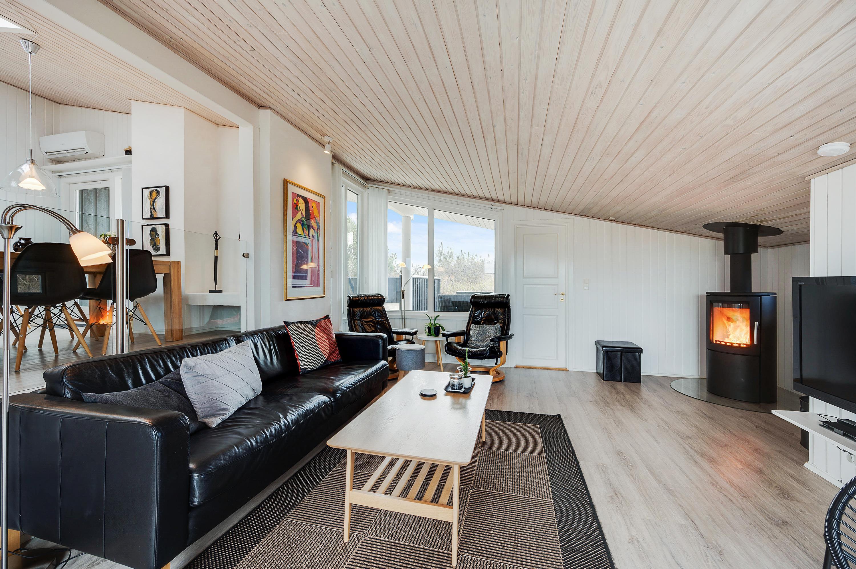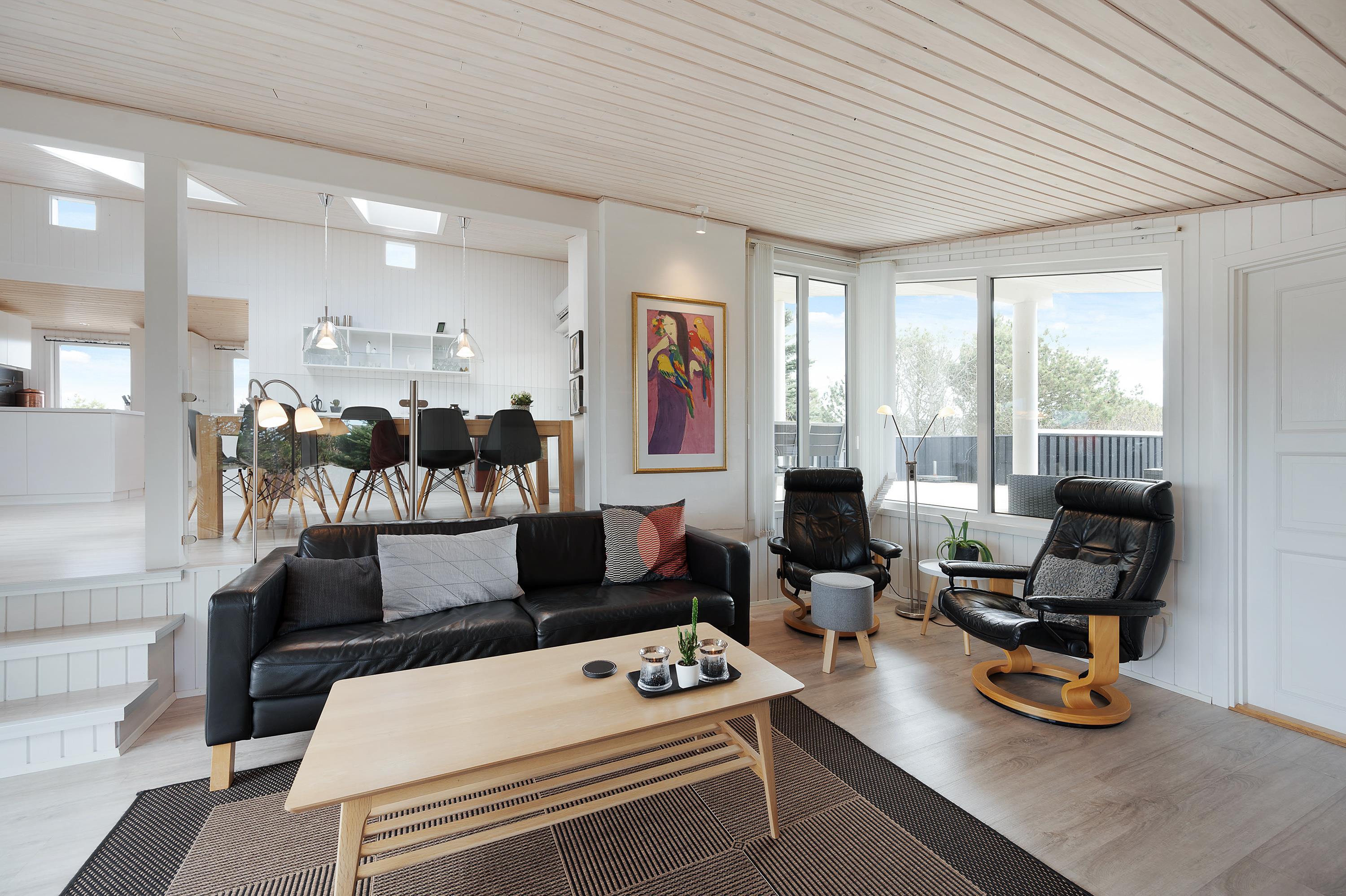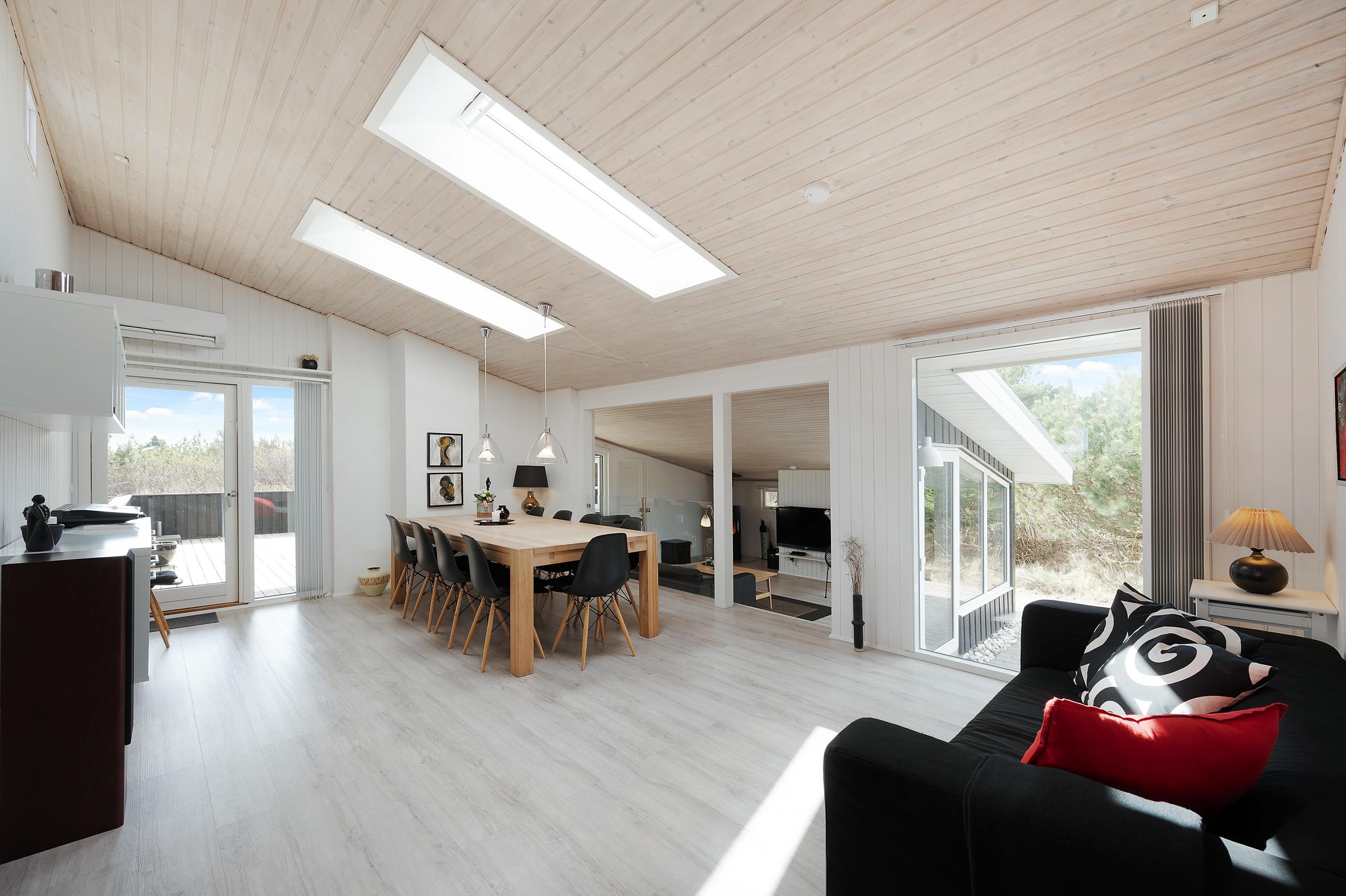 Fra første indtræden vil I føle jer hjemme på den midlertidige ferieadresse, og I vil kunne mærke, hvordan huset er indrettet med masser af kærlighed og charme med det formål, at I skal få den bedst mulige ferie i de hyggelige omgivelser. De store opholdsrum er skønne, og ovenlysvinduerne og de store vinduespartier giver der sørger for et godt lysindfald, samt en dejlig udsigt til den omkringliggende natur.