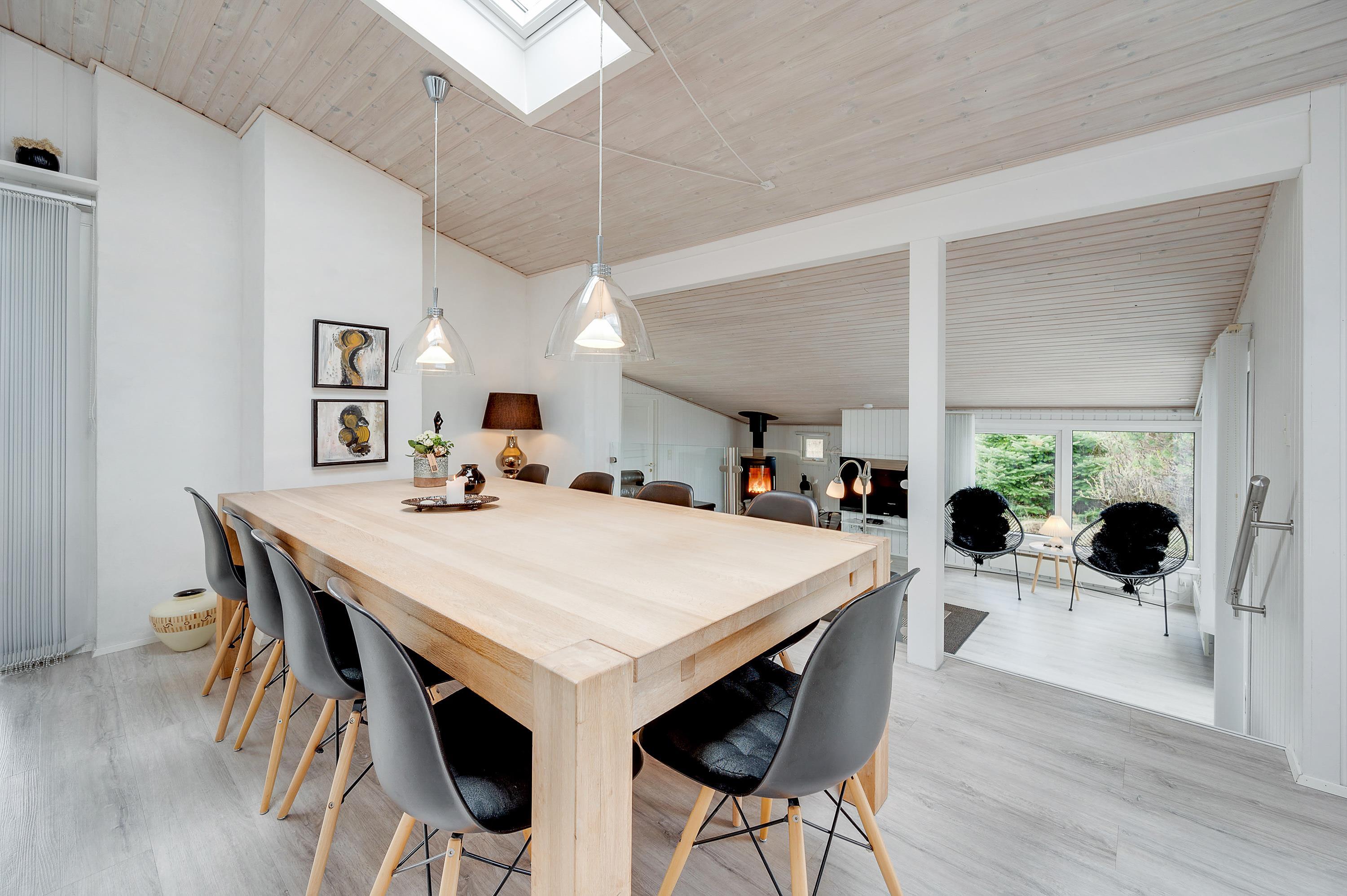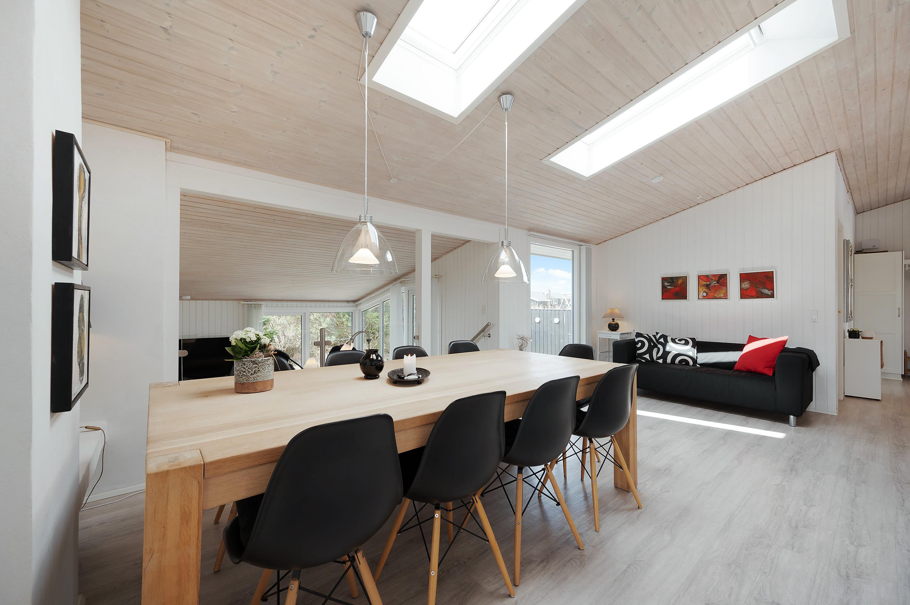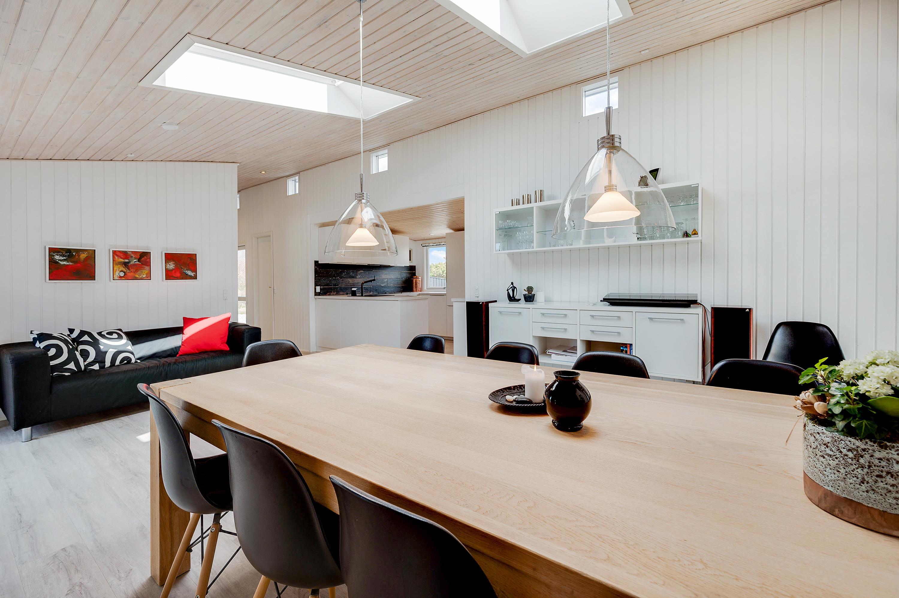 Fra første indtræden vil I føle jer hjemme på den midlertidige ferieadresse, og I vil kunne mærke, hvordan huset er indrettet med masser af kærlighed og charme med det formål, at I skal få den bedst mulige ferie i de hyggelige omgivelser. De store opholdsrum er skønne, og ovenlysvinduerne og de store vinduespartier giver der sørger for et godt lysindfald, samt en dejlig udsigt til den omkringliggende natur.