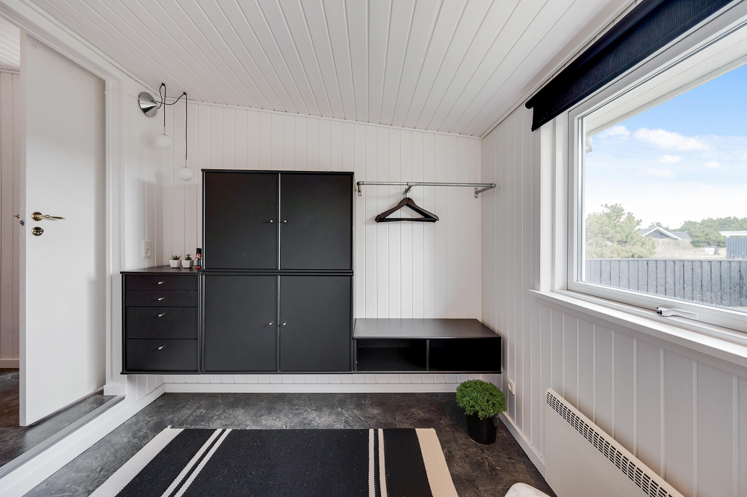 Rundt om huset finder I flere skønne terrasser, så der er rig mulighed for at nyde det flotte klitlandskab fra liggestolene. Tilmed er et stykke afskærmet, så I har gode læforhold, og den overdækkede del af terrassen gør, at I hurtigt kan komme i ly, hvis der skulle komme et uventet regnskyl. Havemøbler, grill og en gynge sørger for, at der er masser af muligheder for både afslapning og udendørs leg.