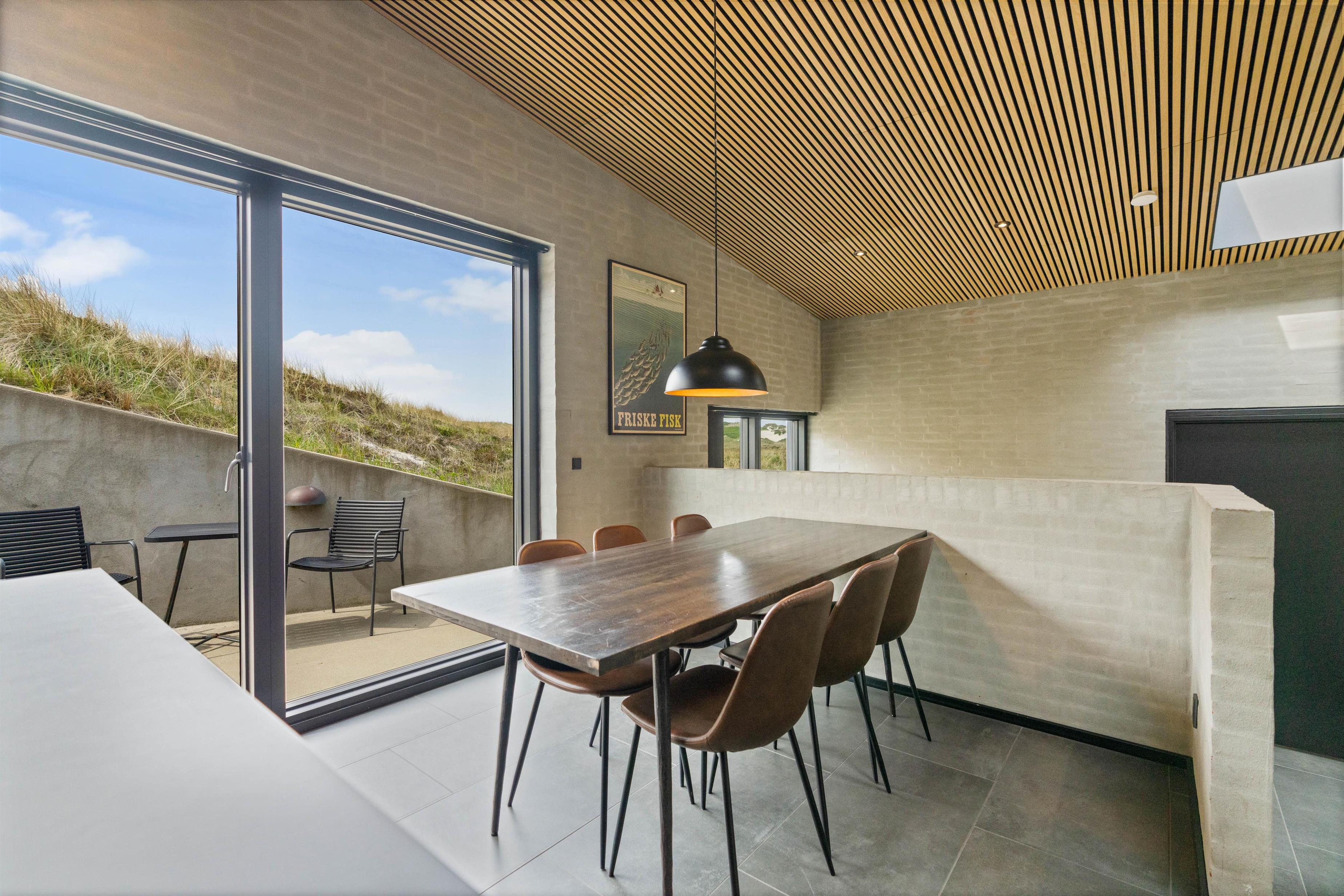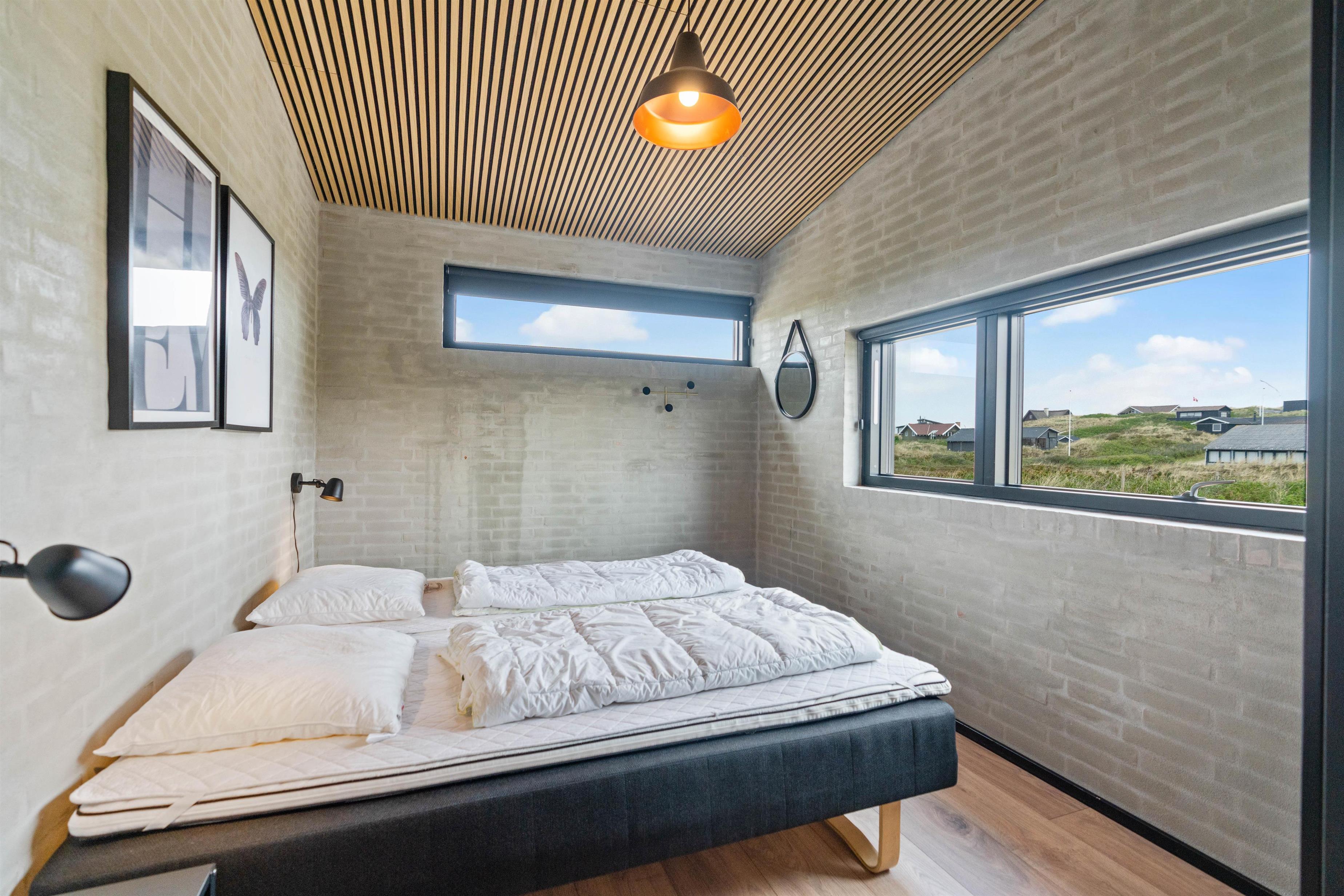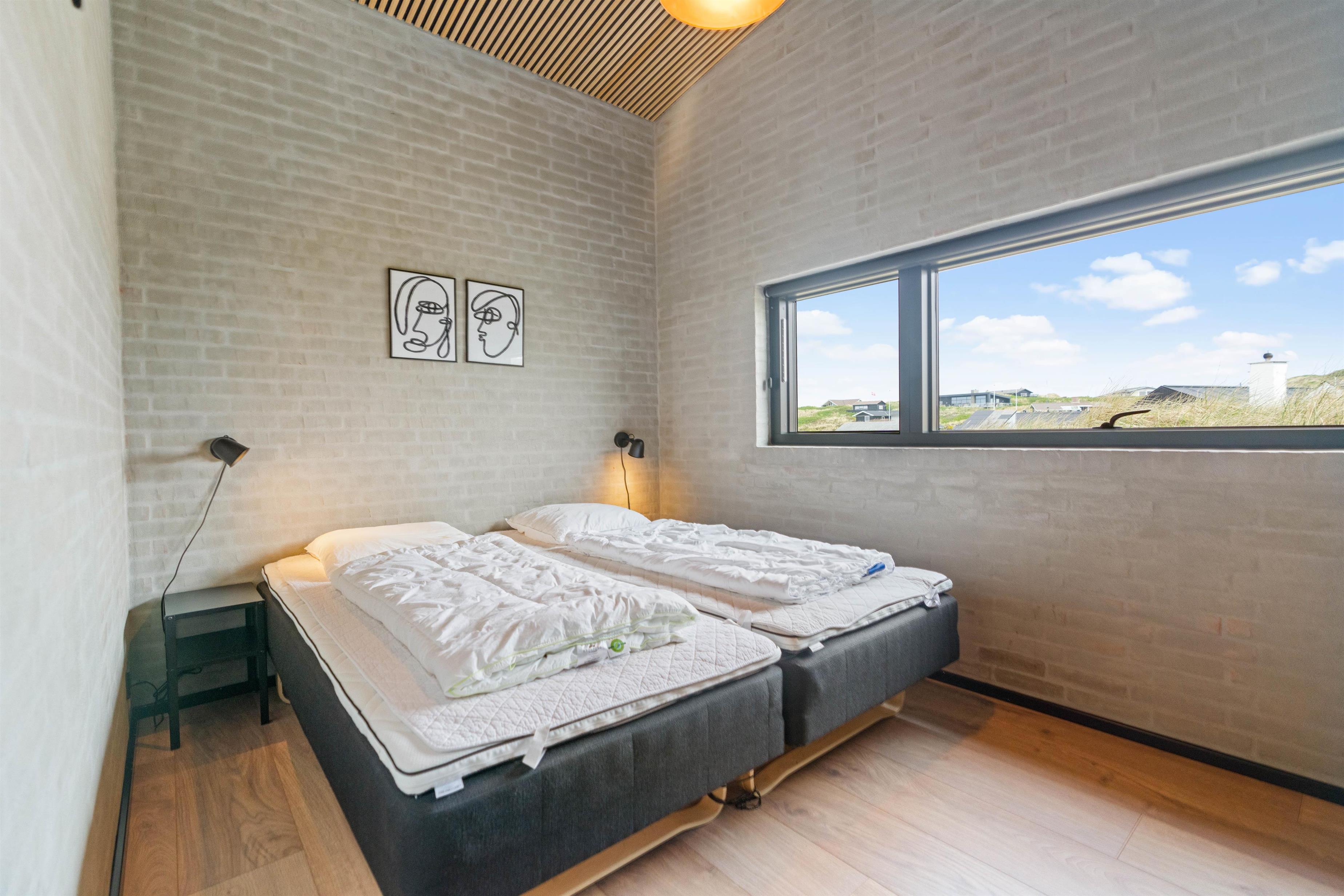 Det flotte feriehus på Hvidbjergvej 125 er opført i 2019 og oser af kvalitet og velvære indvendigt som udvendigt. Indretningen er stilfuld og kvalitetsbevidst med indbydende lyse egetræslofter, et moderne og veludstyret køkken og højt til loftet. De store vinduer får de 122 kvadratmeter til at virke endnu mere rummelige - og med plads til 6 personer er der god plads at brede sig ud på her.
