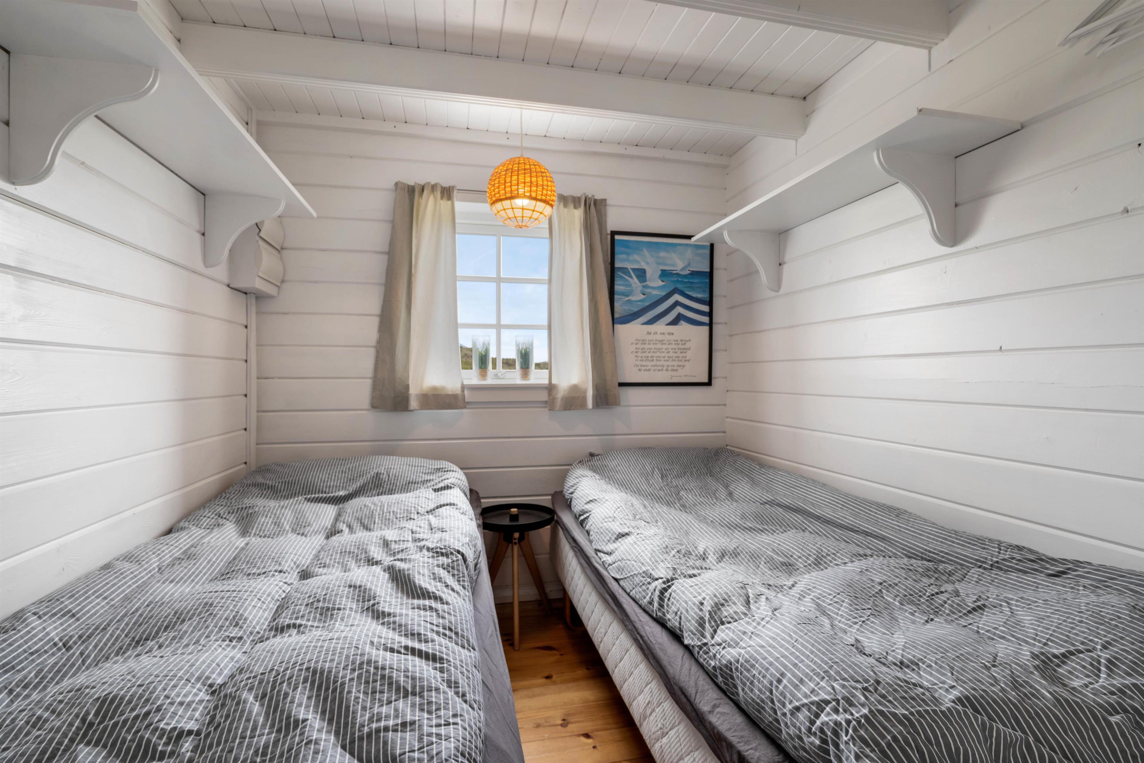 Der er et separat soveværelse med dobbeltseng, og badeværelset har gulvvarme, så I ikke kommer til at fryse fødderne, når I står op om morgenen og gør klar til en ny dag i feriens tegn.
