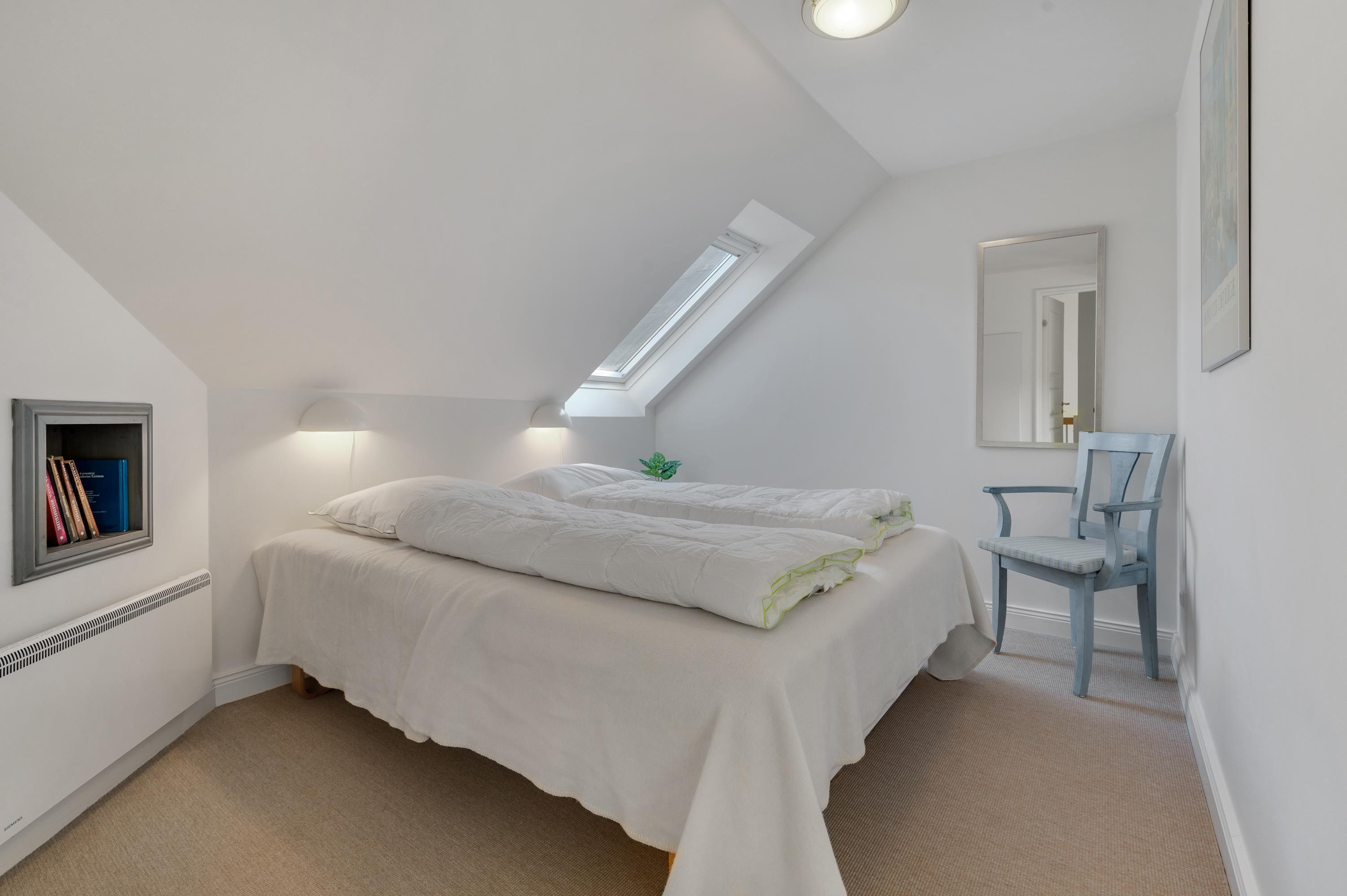 På ferielejlighedens førstesal er de 4 sovepladser, der er fordelt på 2 gode soveværelser. På hvert af de 2 soveværelser er der en dobbeltseng, som I kan få jer en god nats søvn i, så I er klar til jeres feriedage i Søndervig.