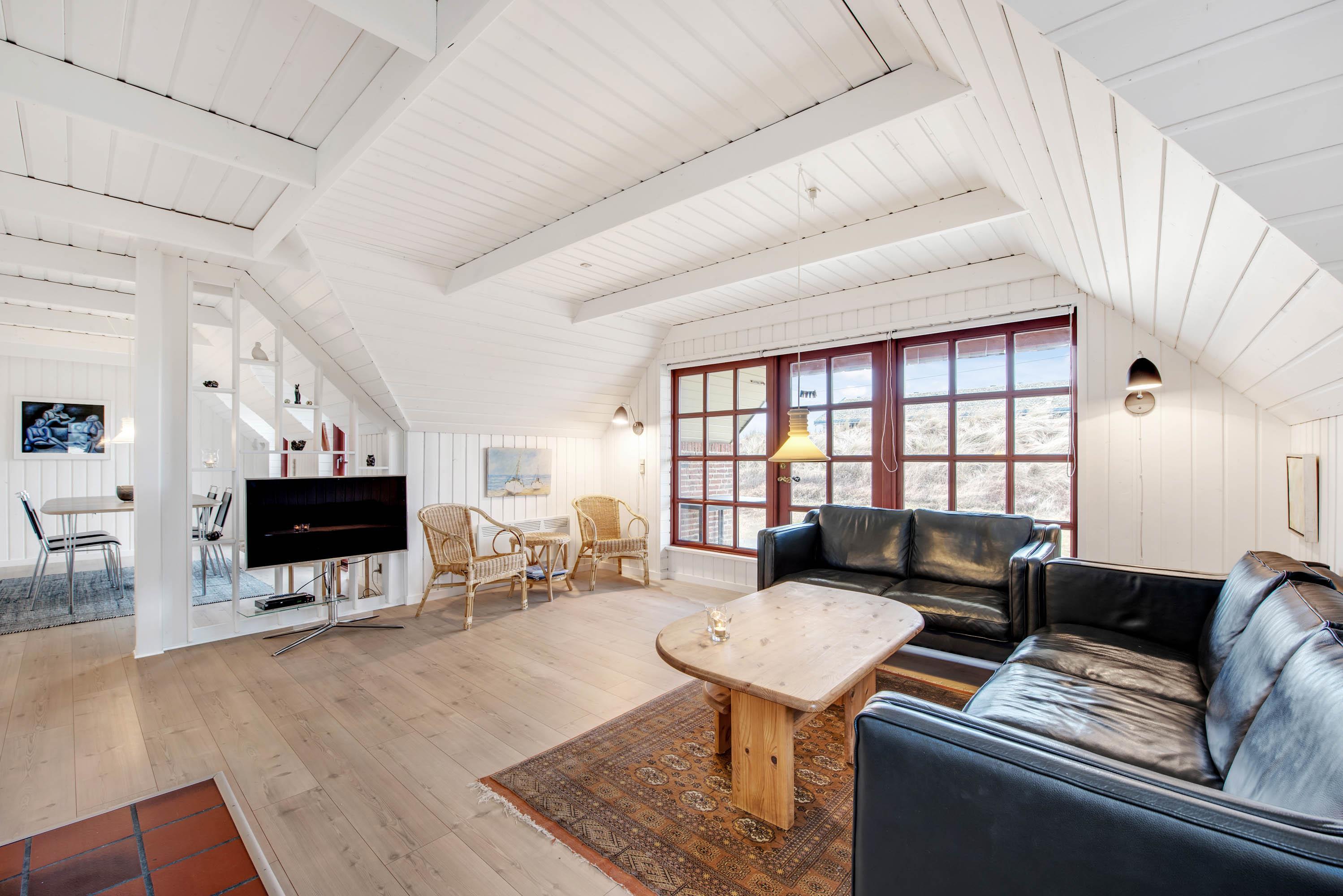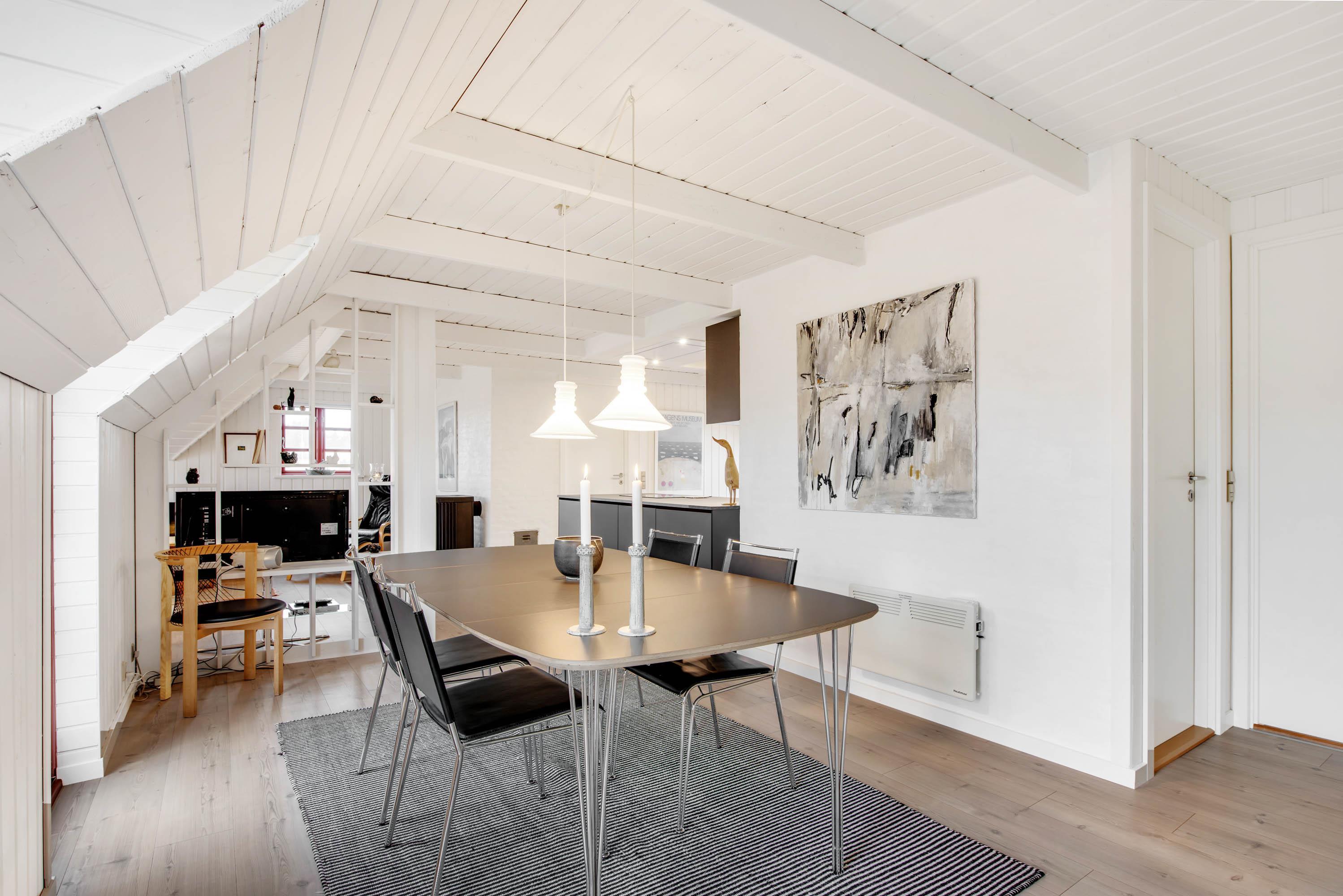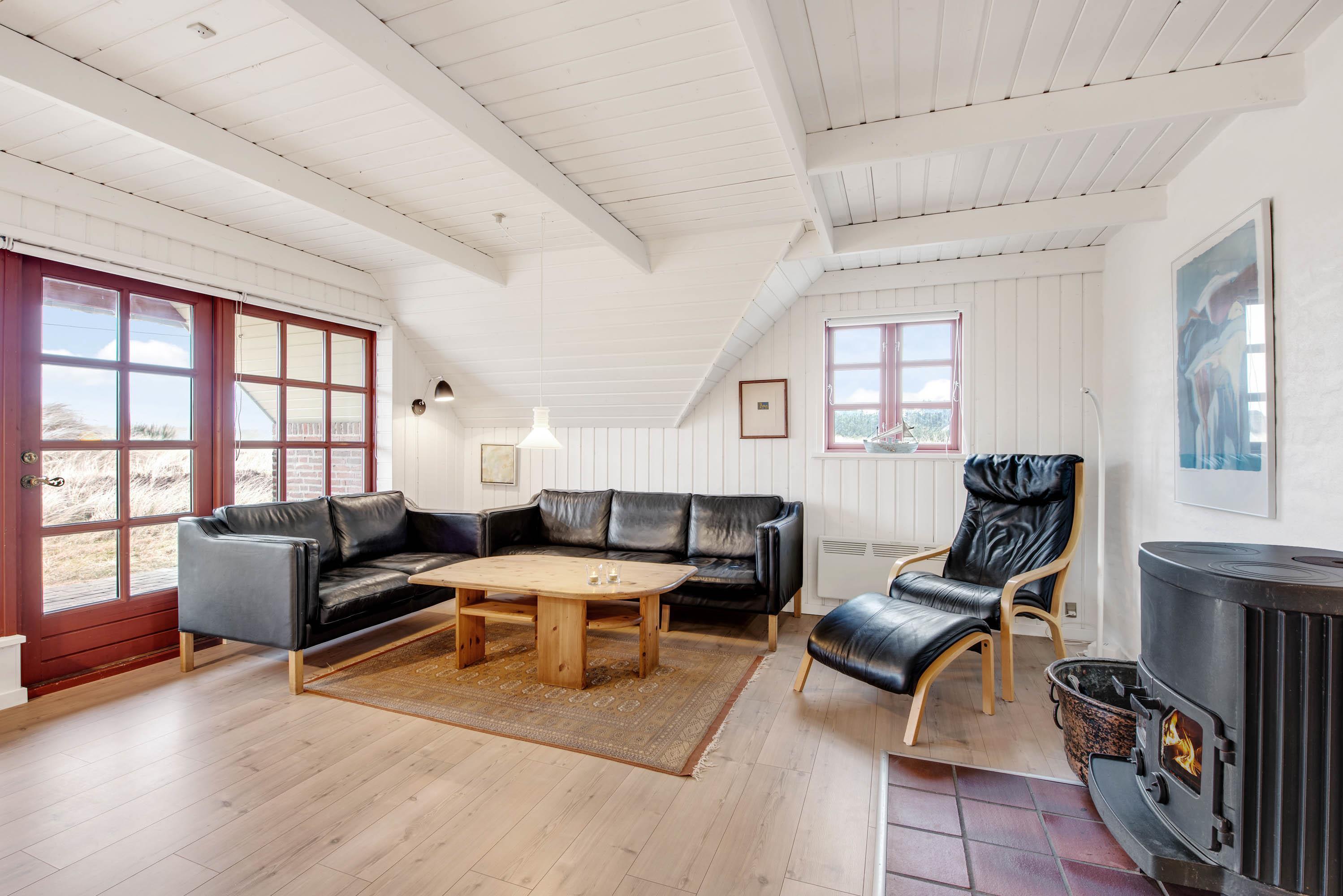 I den store opholdsstue vil I uden tvivl komme til at tilbringe mange gode timer sammen. Det lyse og indbydende rum har en skøn atmosfære, hvor I kan finde jer godt tilpas, mens I laver mad, spiller spil eller ser film. På ægte sommerhusmanér er der selvfølgelig en brændeovn i stuen, der både sørger for god stemning og varme. Huset har også en energibesparende varmepumpe som sørger for et behageligt indeklima.