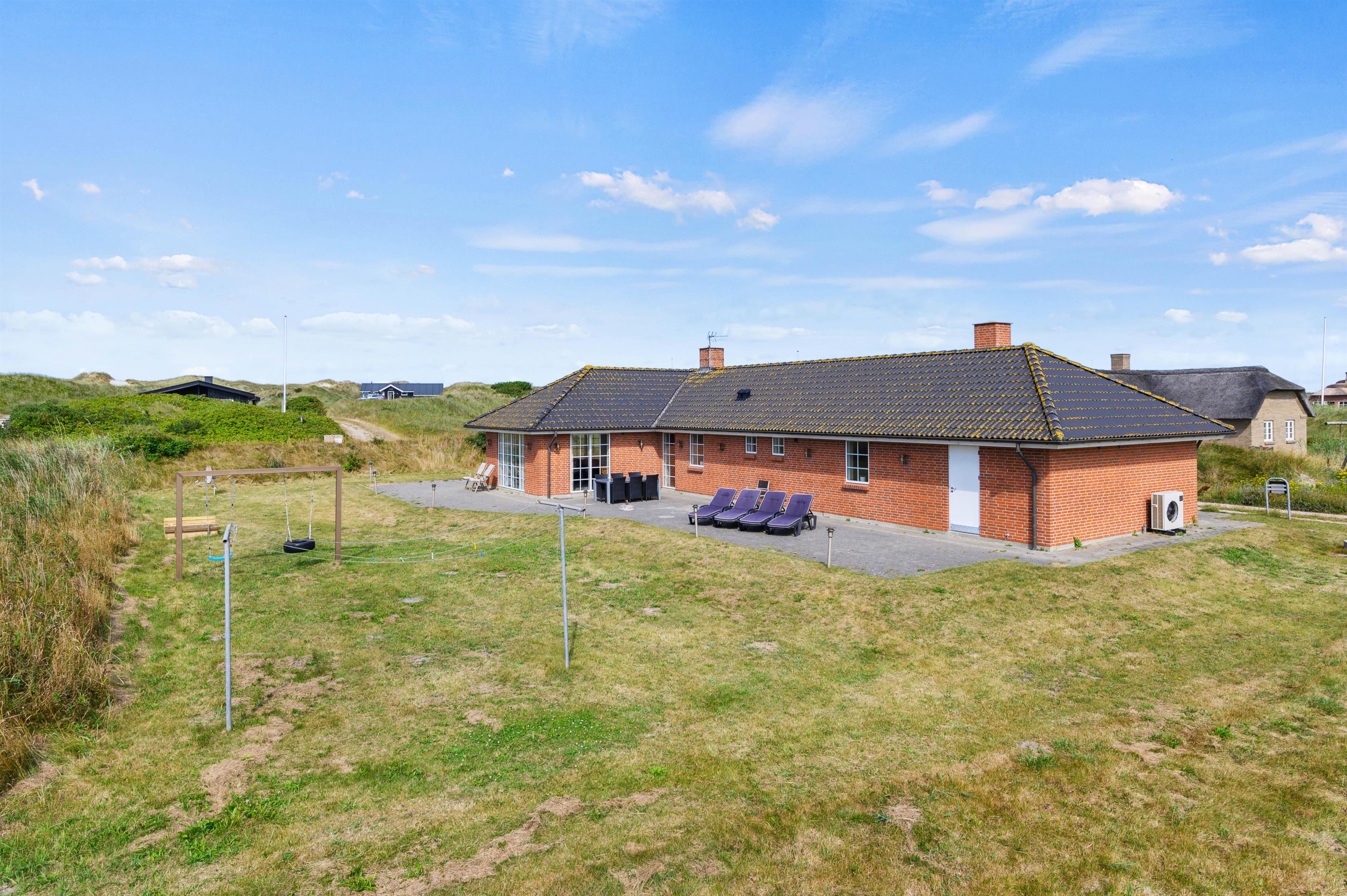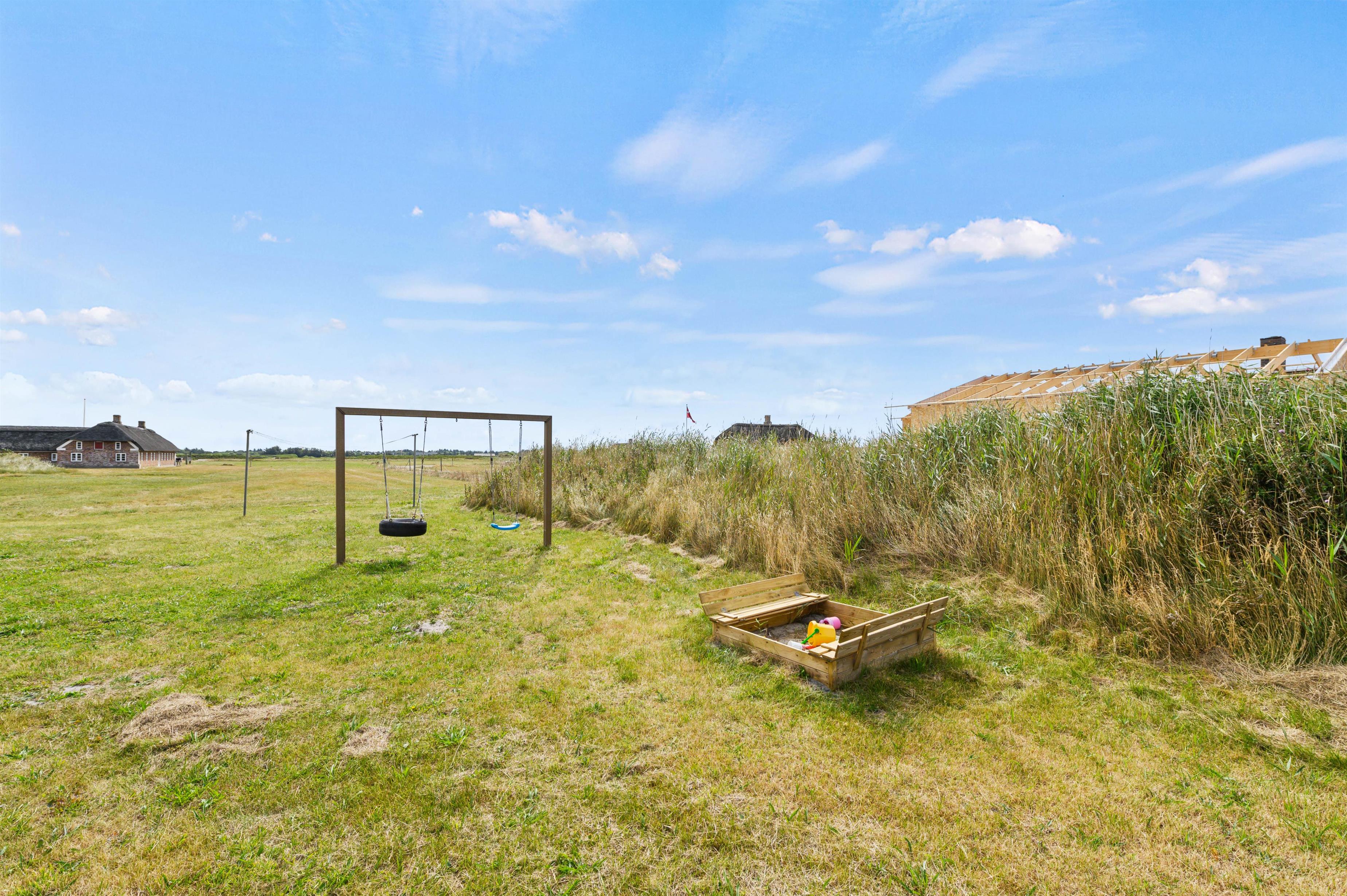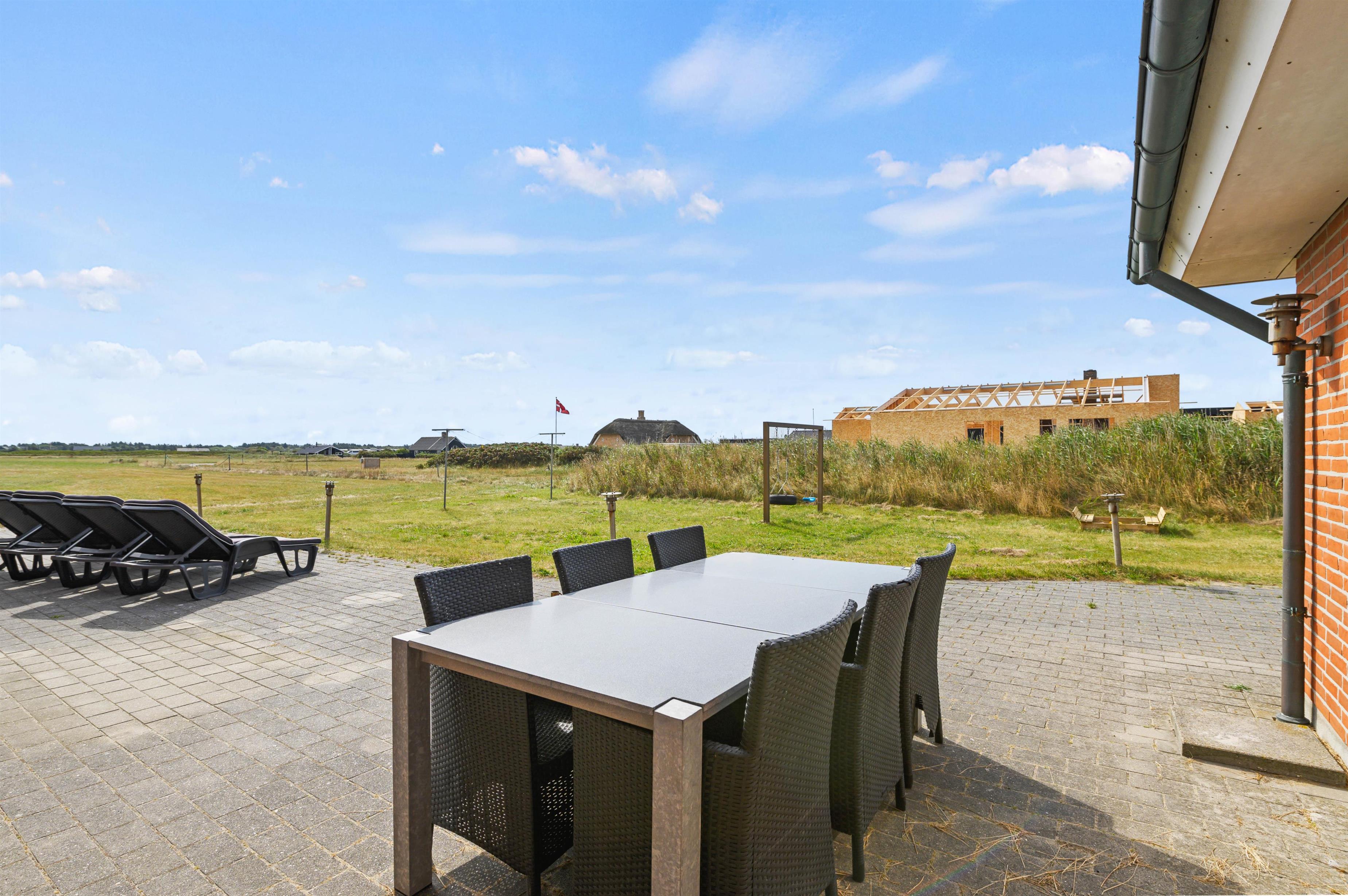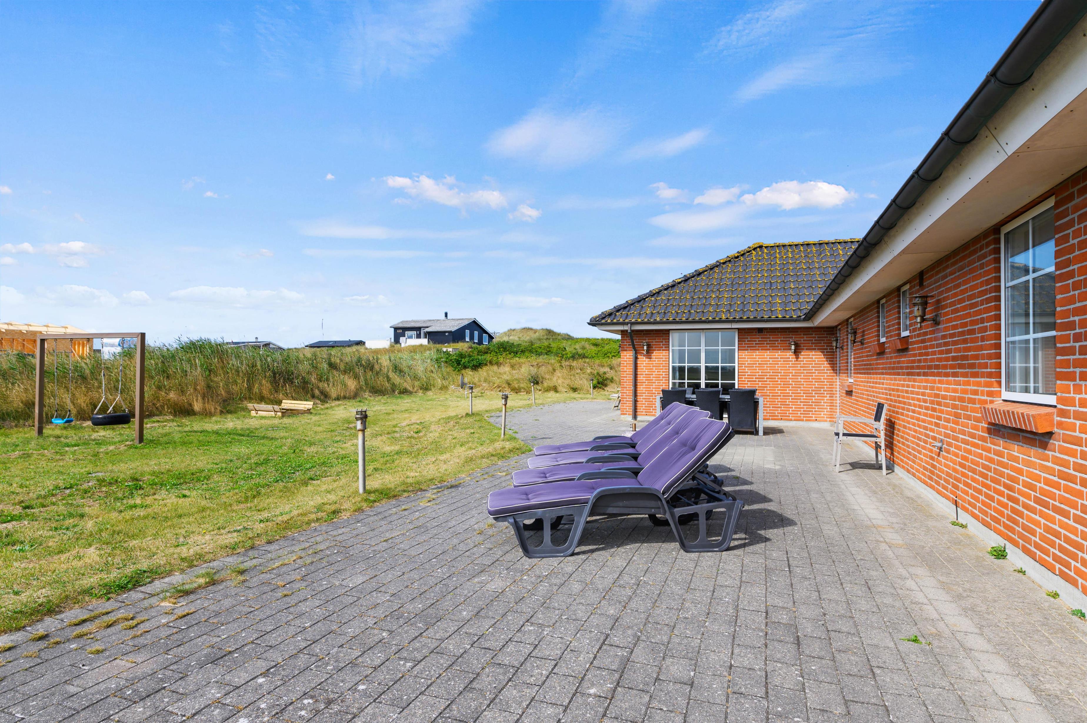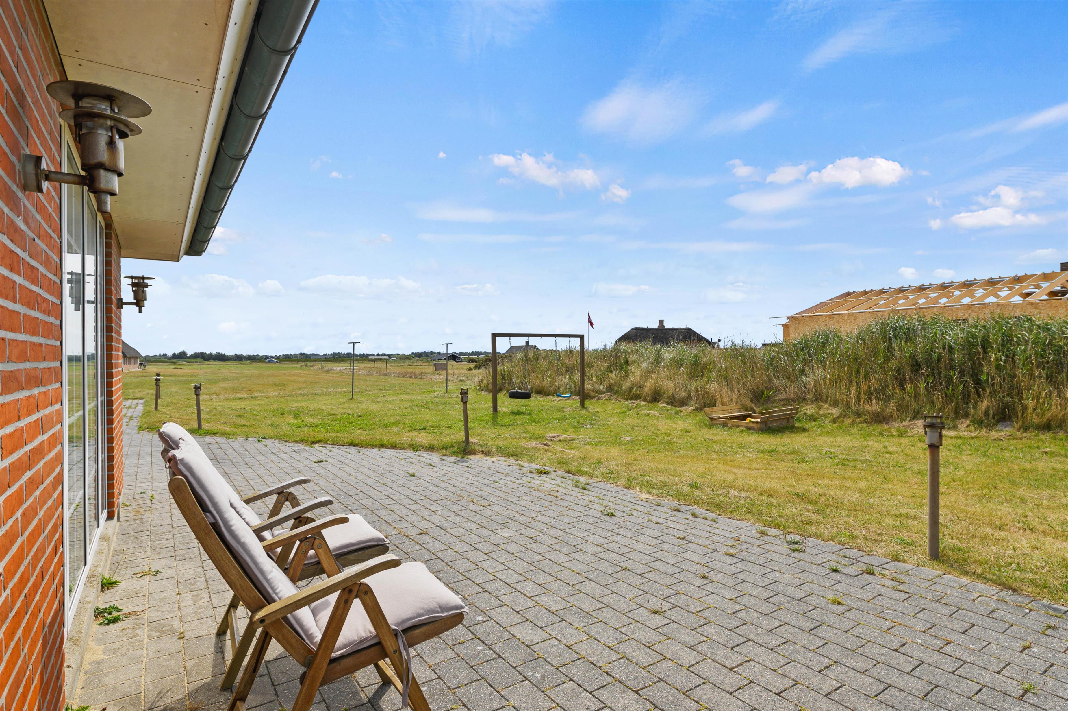 Udendørs har I en stor, åben terrasse, som er det helt perfekte sted at tilbringe feriens solrige dage. Både havemøbler og liggestole står klar til jer, så I virkelig kan nyde en dejlig dag i solen på terrassen. Mens I slapper af og nyder ferien på terrassen, kan børnene lege i haven, hvor der er både sandkasse og gyngestativ til dem.