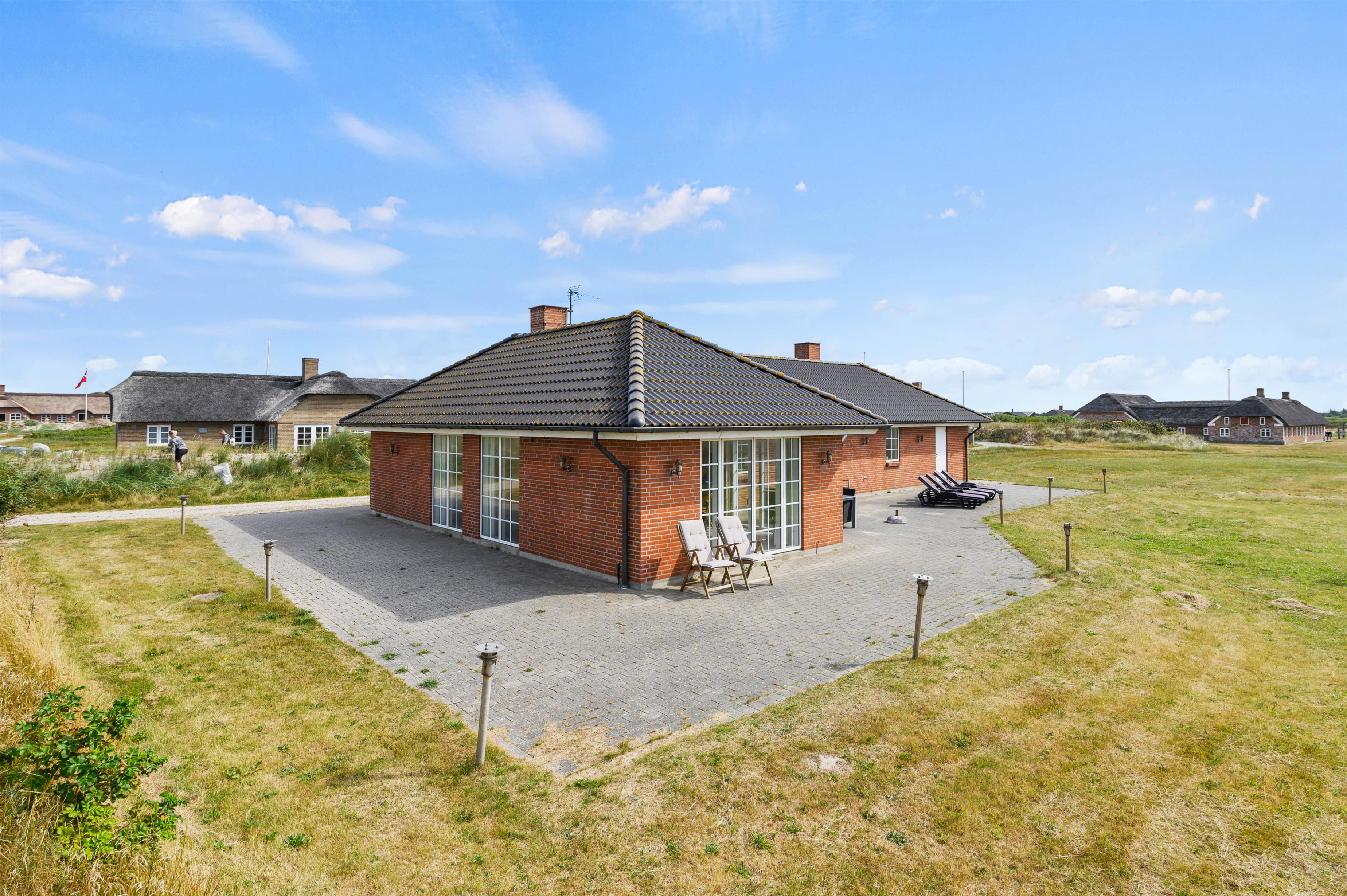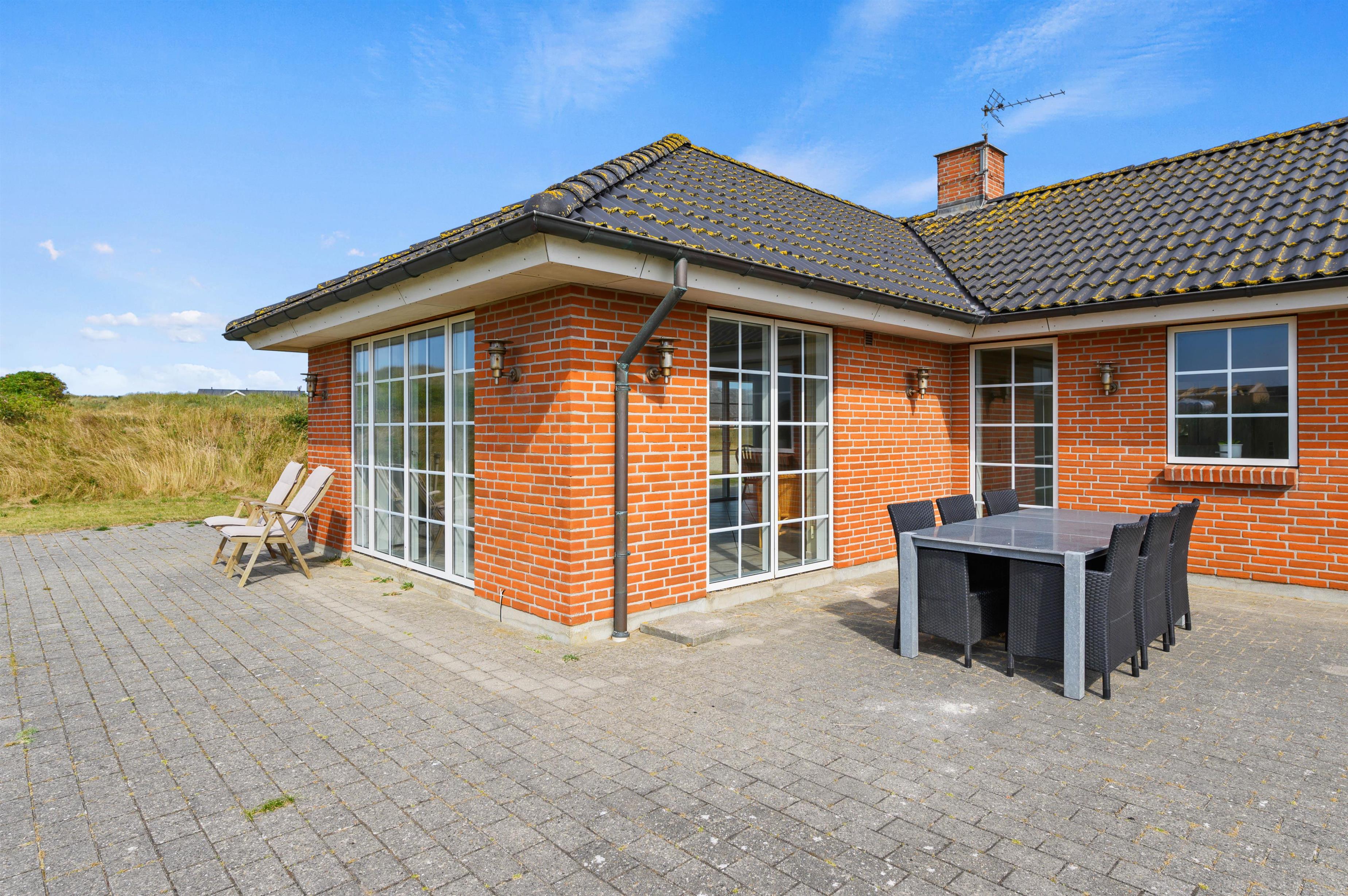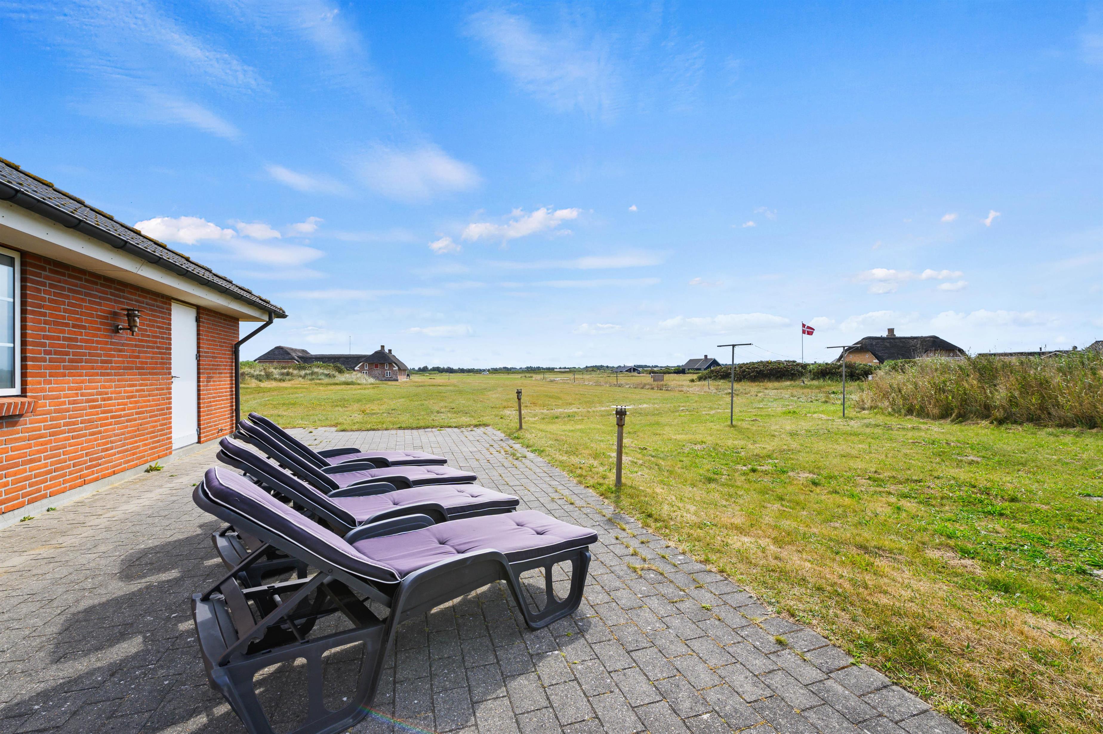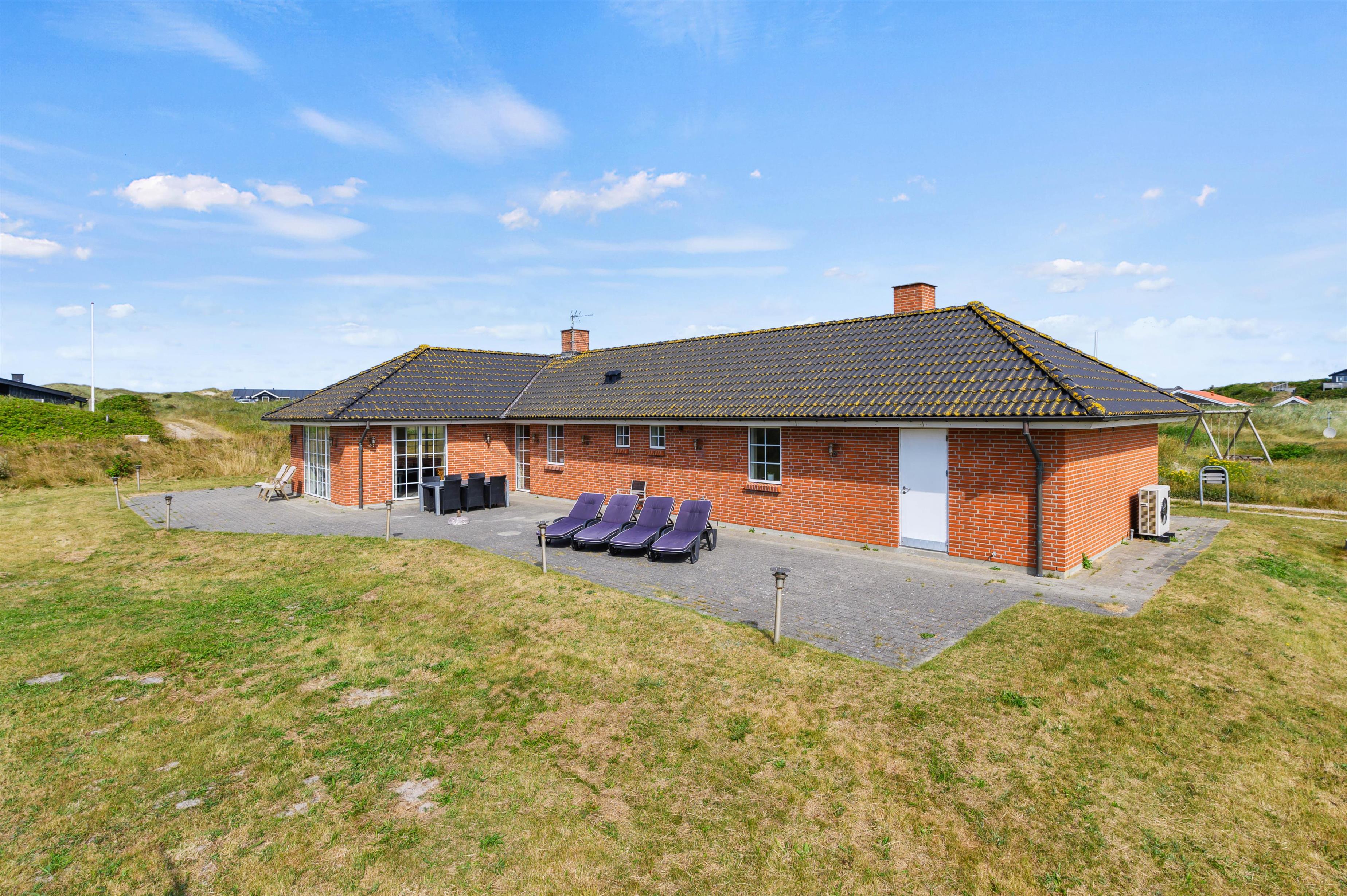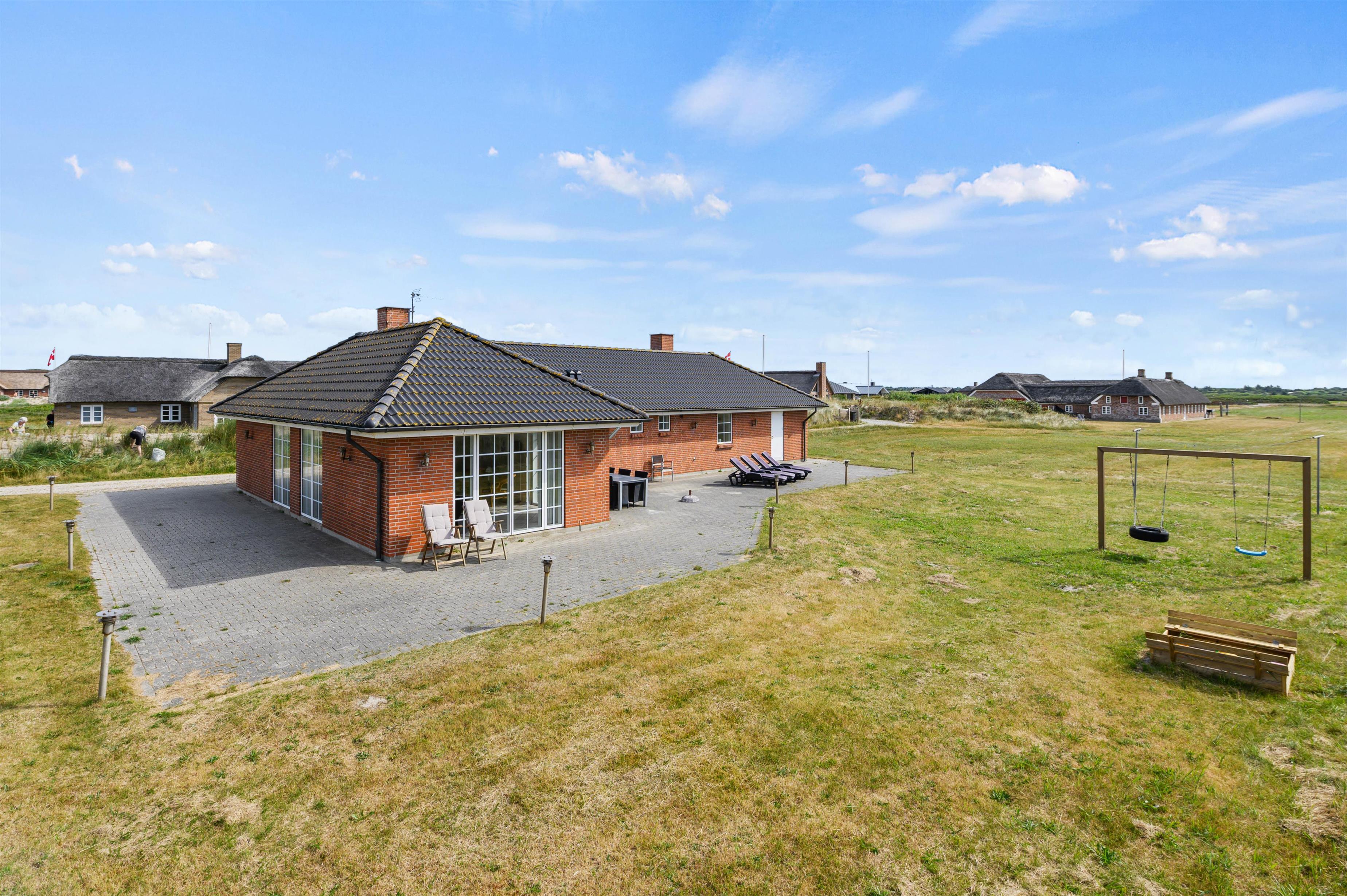 Udendørs har I en stor, åben terrasse, som er det helt perfekte sted at tilbringe feriens solrige dage. Både havemøbler og liggestole står klar til jer, så I virkelig kan nyde en dejlig dag i solen på terrassen. Mens I slapper af og nyder ferien på terrassen, kan børnene lege i haven, hvor der er både sandkasse og gyngestativ til dem.