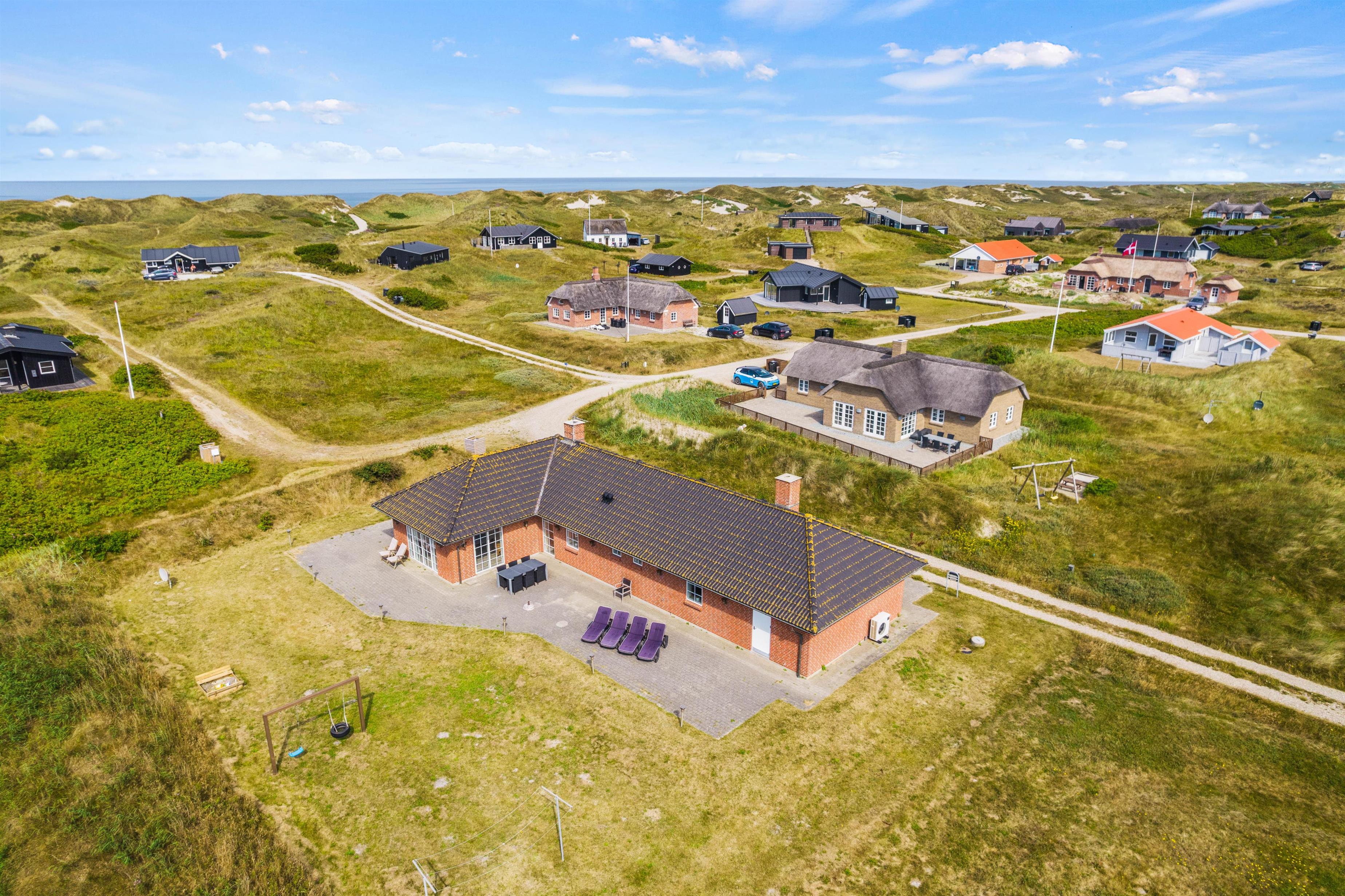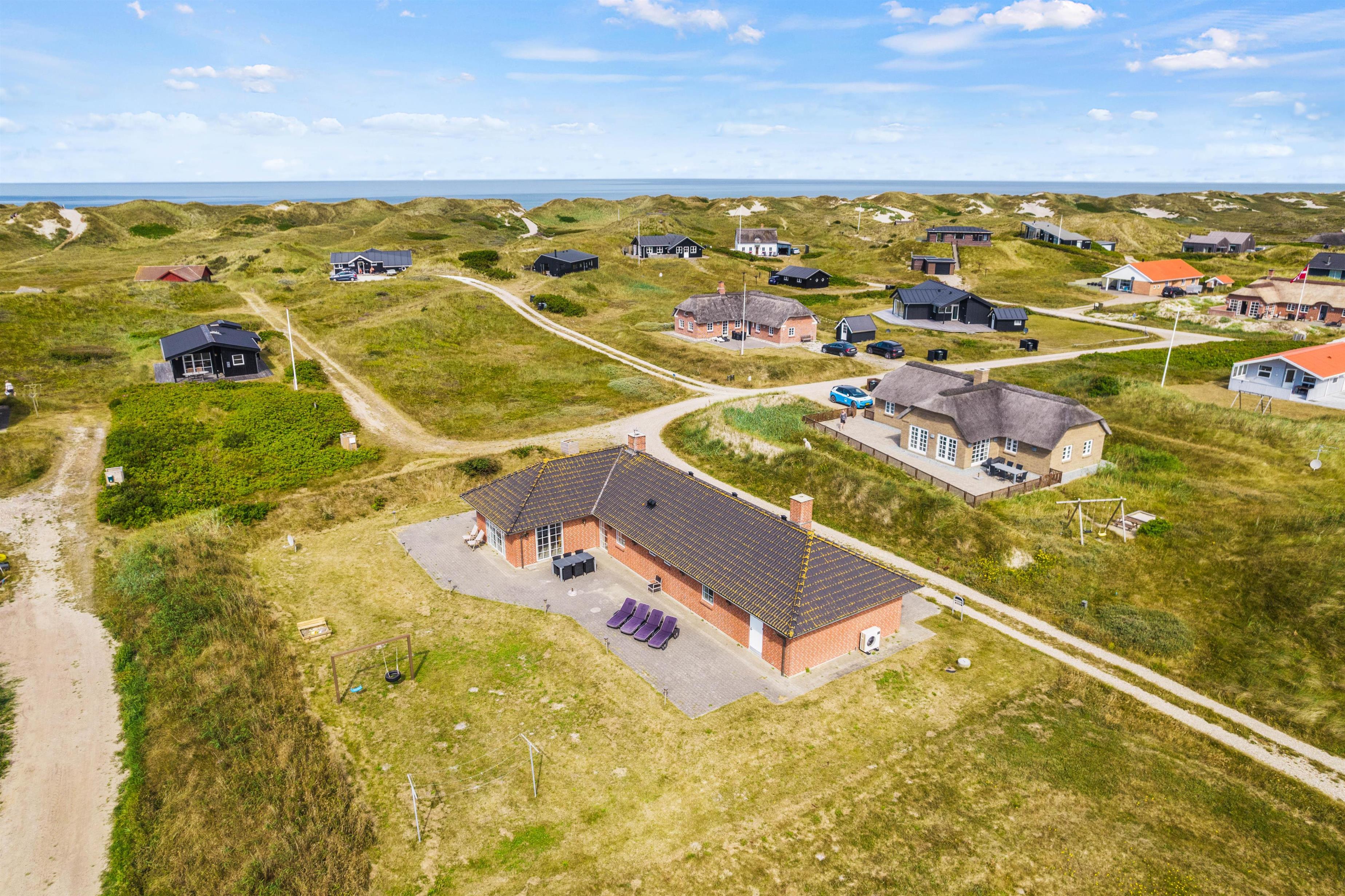 Sommerhuset ligger på Holdvej 29 lige nord for Søndervig i et dejligt, roligt feriehusområde. Området har utroligt meget at byde på hele året rundt, hvor I blandt andet kan gå lange ture i den friske natur. I kan også tage en tur til stranden og Vesterhavet, der ligger kun 300 meter fra sommerhuset, hvor I kan bade eller gå ture.