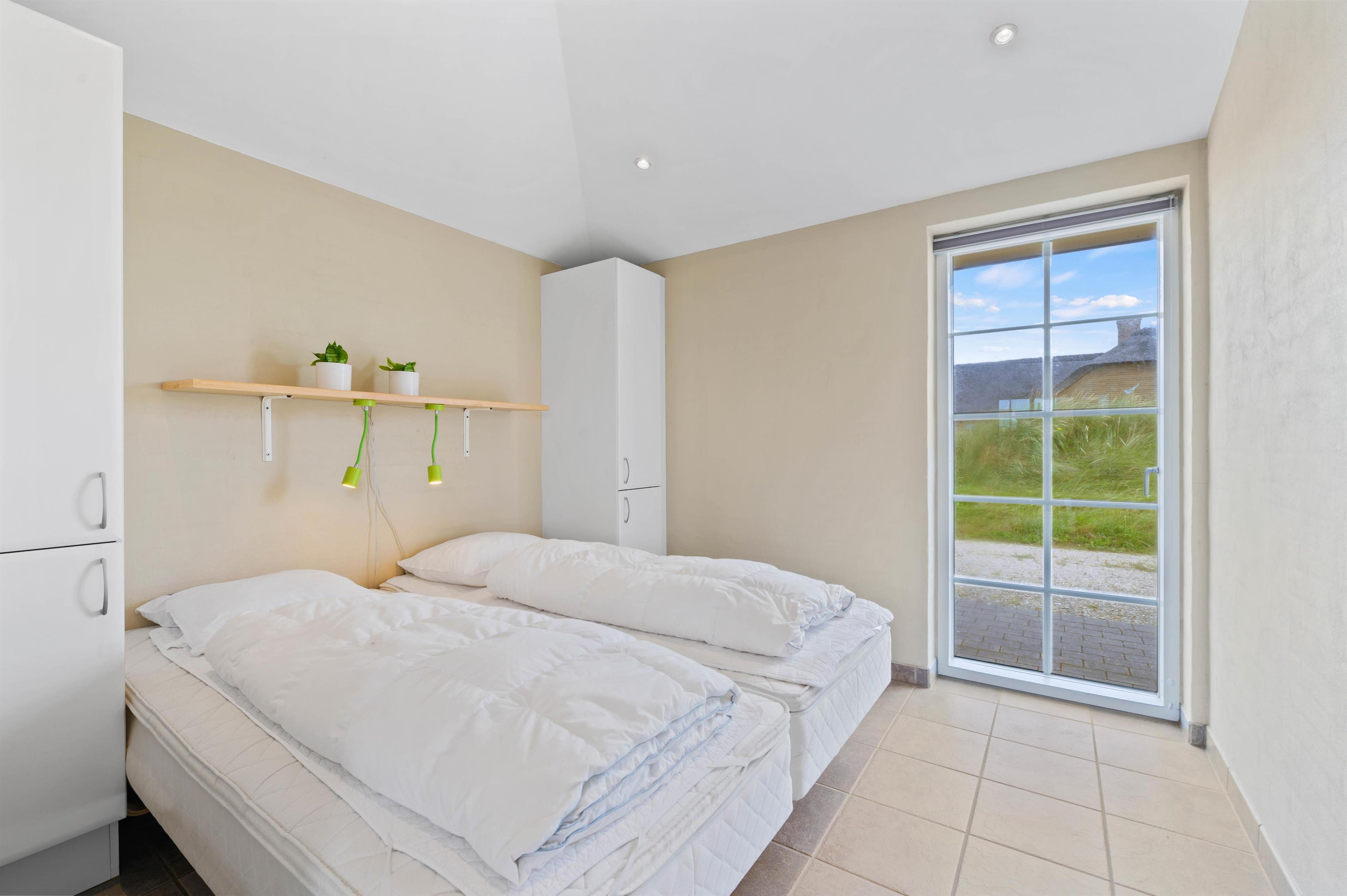 I sommerhuset er der 3 gode soveværelser samt 2 badeværelser. På det ene af sommerhusets badeværelser er der både spa og sauna, hvor I virkelig kan få slappet af og komme ned i gear; både børn og voksne vil elske en tur i spa og sauna efter en lang dag ude i den friske luft. Begge badeværelser har desuden gulvvarme.