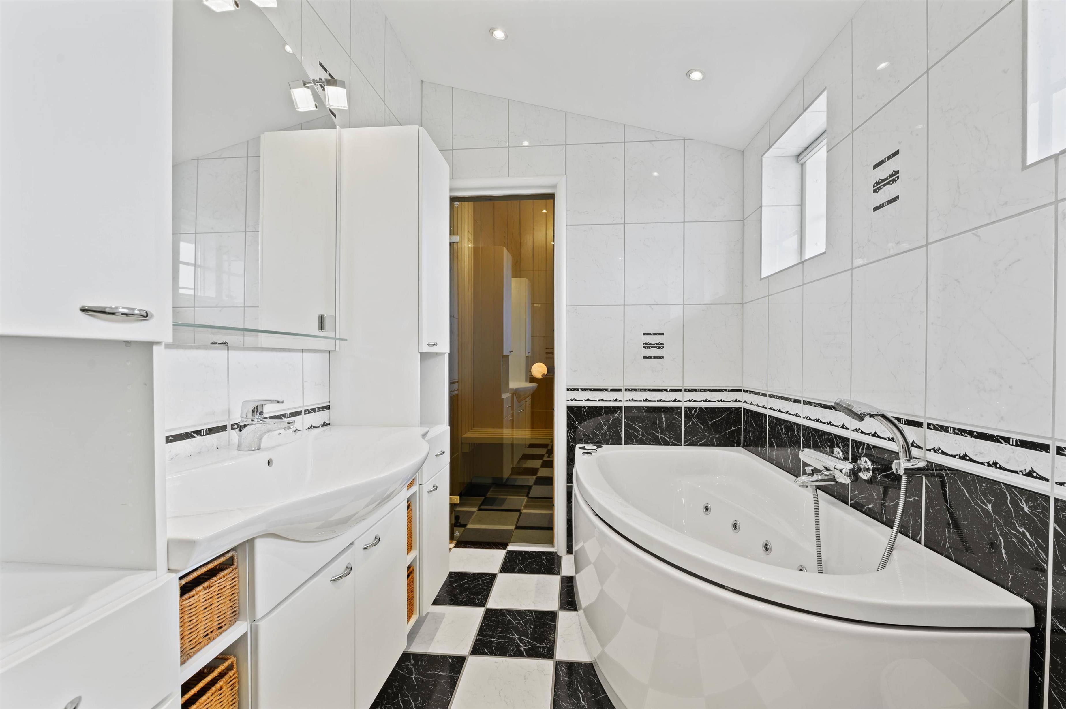 Lys og pæn indretning - badeværelse med spa og sauna