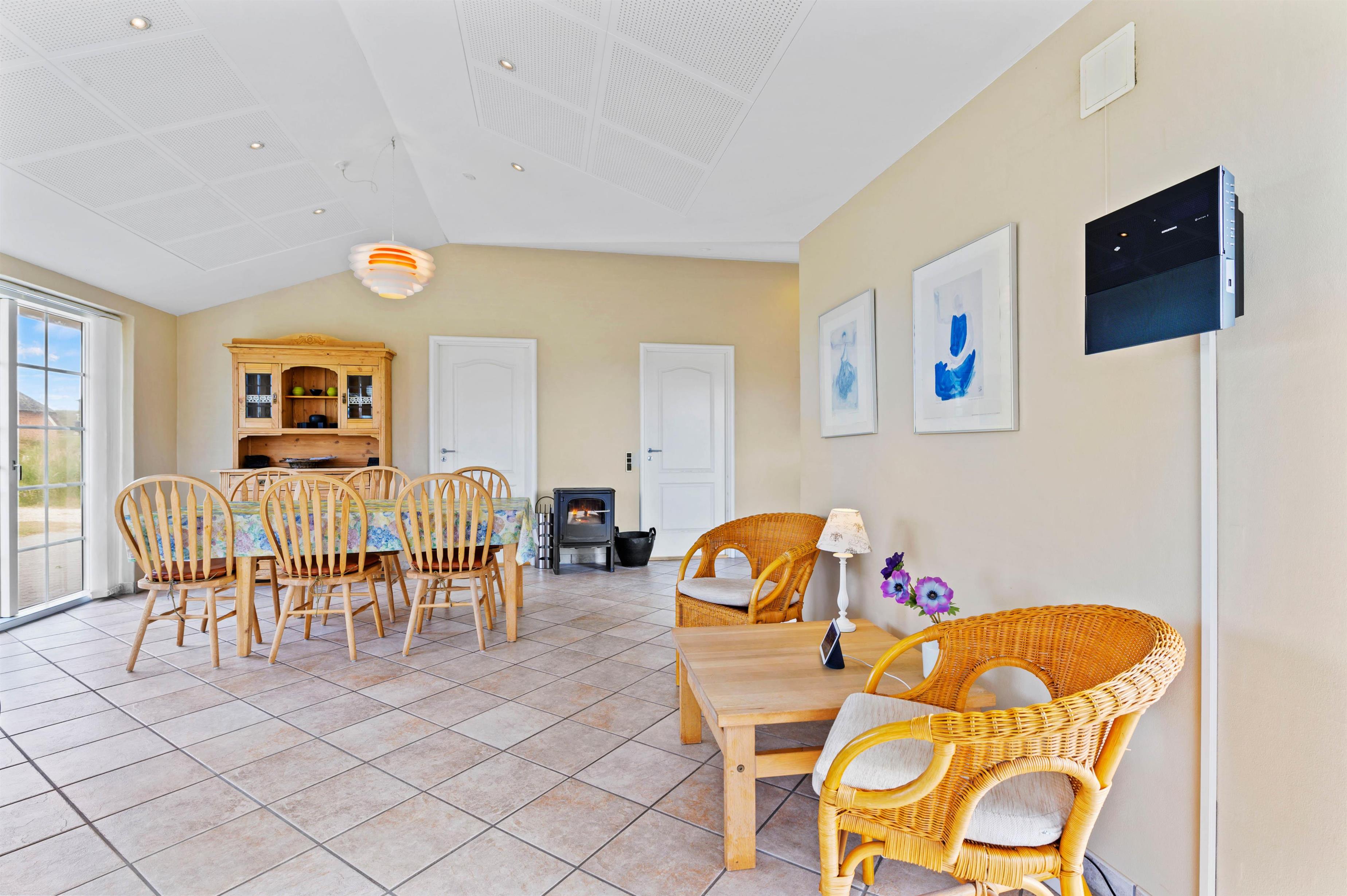 Sommerhuset på Holdvej 29 er indrettet lyst og pænt og med gode møbler. I alrummet, der forener stue, køkken og spisestue, er der masser af plads og rum til at være sammen. Måske om et sjovt spil, en lækker frokost eller en god film; I kan streame jeres favoritfilm via Chomecasten. Brændeovnen i alrummet sørger for at fuldende feriestemningen med sin varme og knitren i baggrunden.