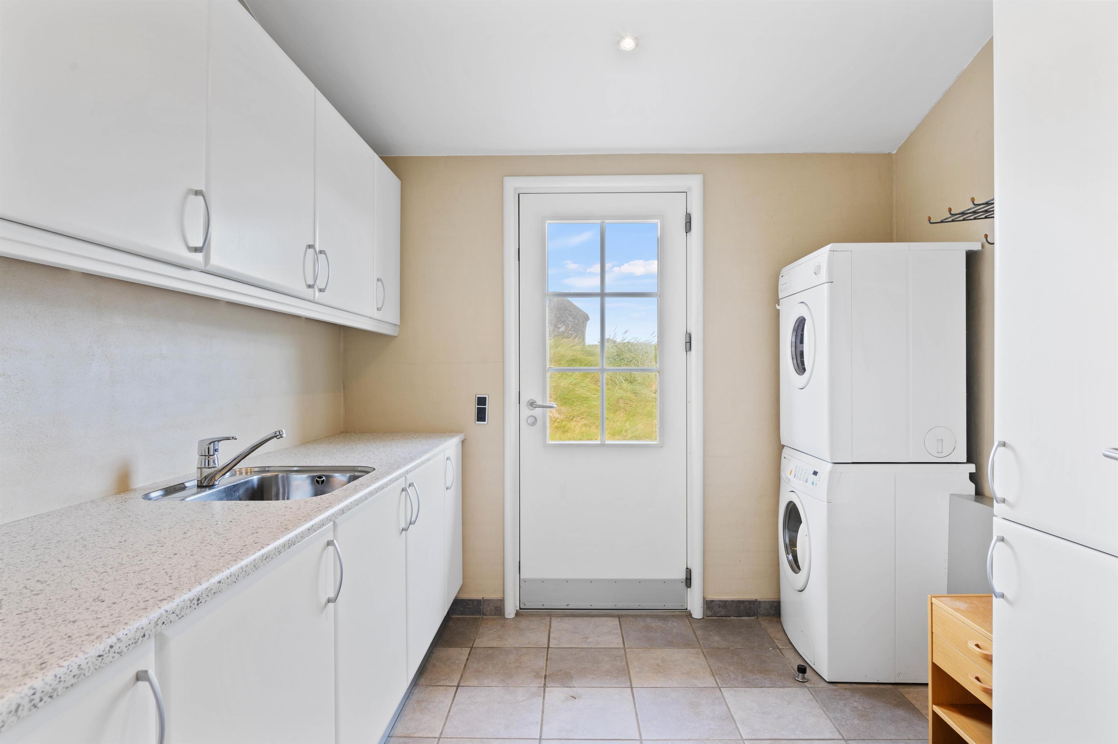 Ferie handler om at slippe hverdagens pligter. Derfor har feriehuset selvfølgelig både vaskemaskine, tørretumbler og opvaskemaskine, så jeres ferie bliver så nem som mulig, og I slipper for at bruge en masse af jeres kostbare ferietid på huslige pligter.