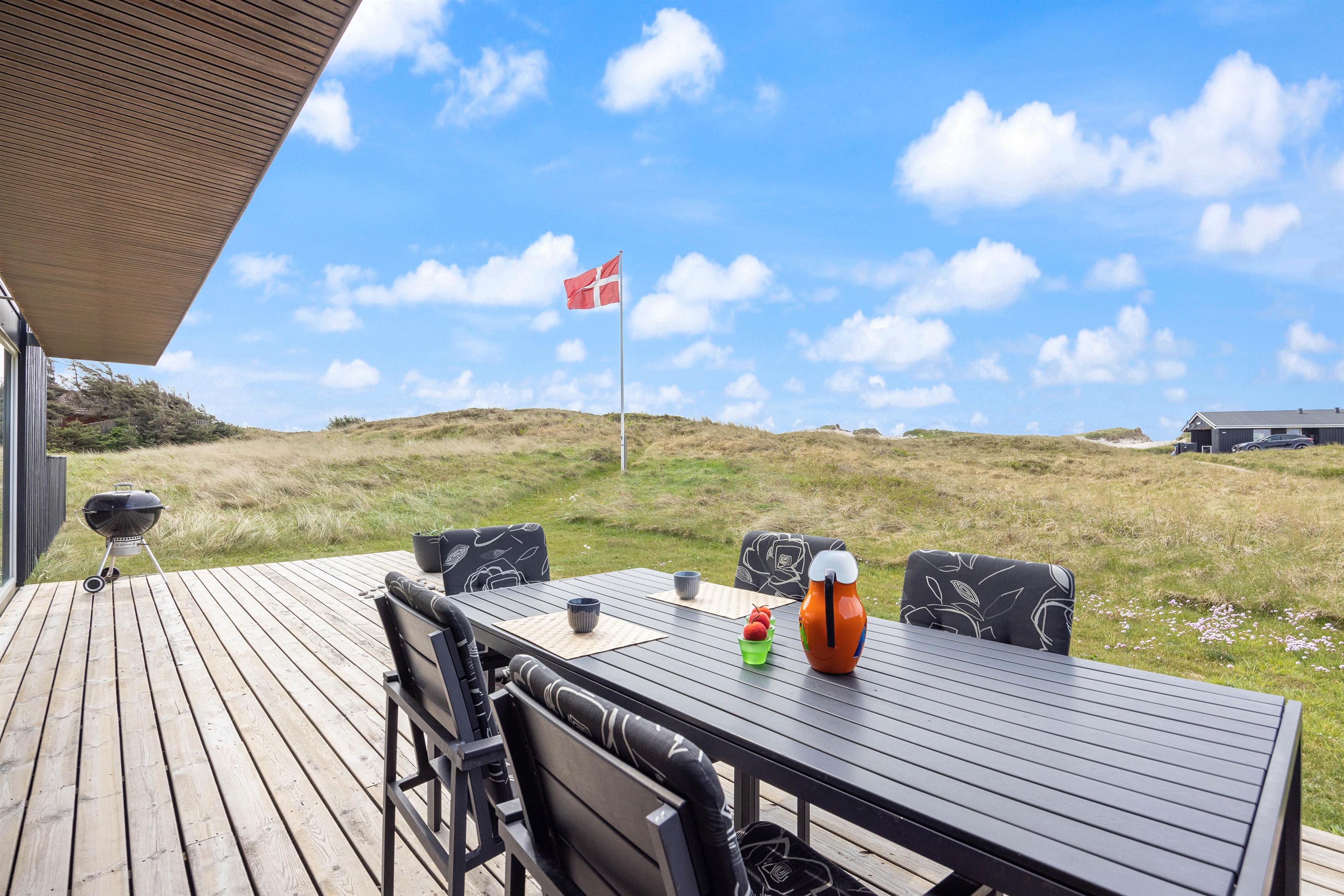 På sommerhusets udeområde, der er mere end 3.100 kvadratmeter stort, har I 3 skønne terrasser, som I kan tilbringe de solrige feriedage på. På den østvendte terrasse kan I nyde dagens første kop kaffe, mens resten af ferieflokken stadig sover.