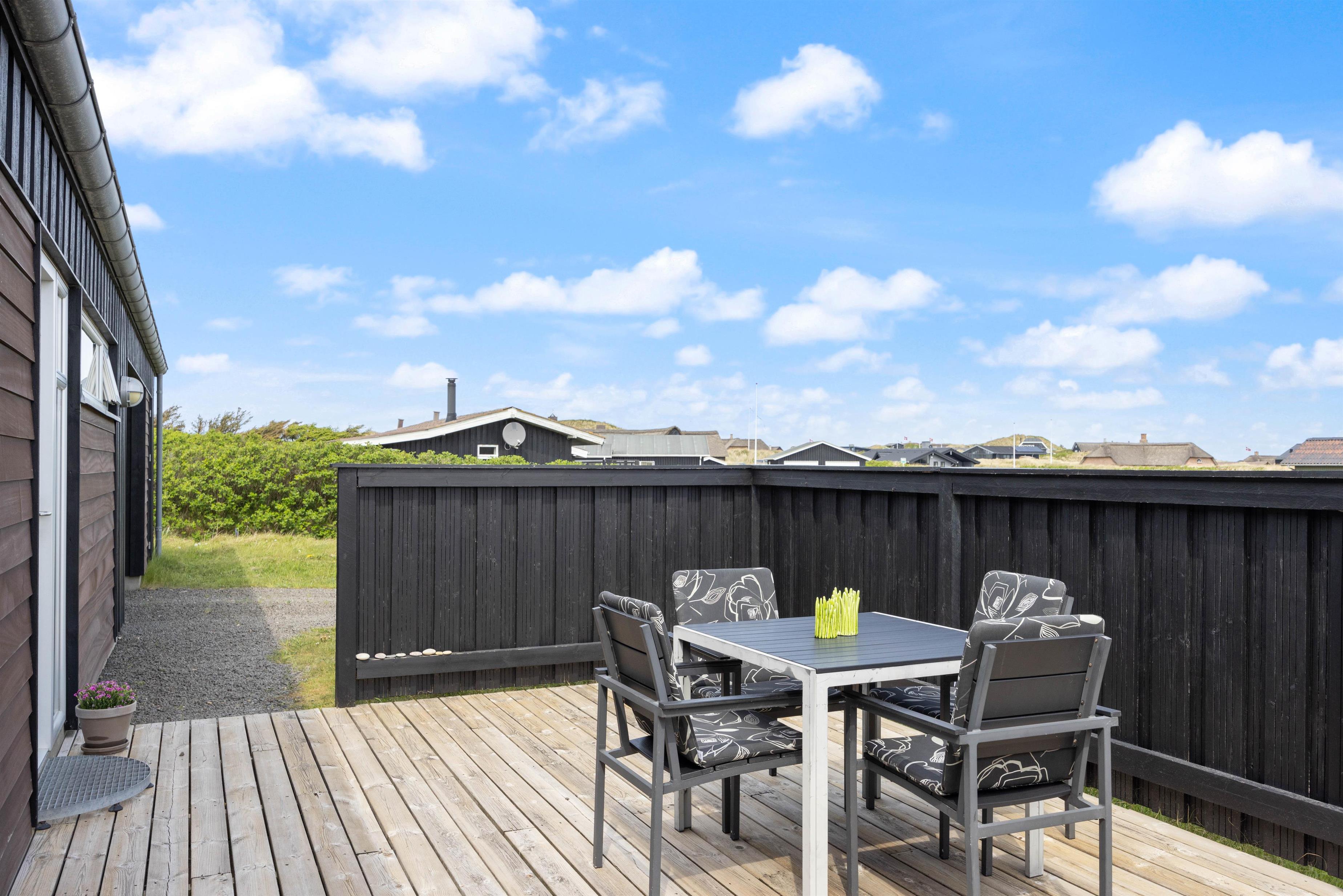 På den sydvendte terrasse kan I sætte jer til rette i havemøblerne og nyde solen i løbet af dagen. Om aftenen kan I rykke over på den vestvendte terrasse, hvor I kan spise en lækker grillmiddag og nyde udsigten til solnedgangen bag klitterne.