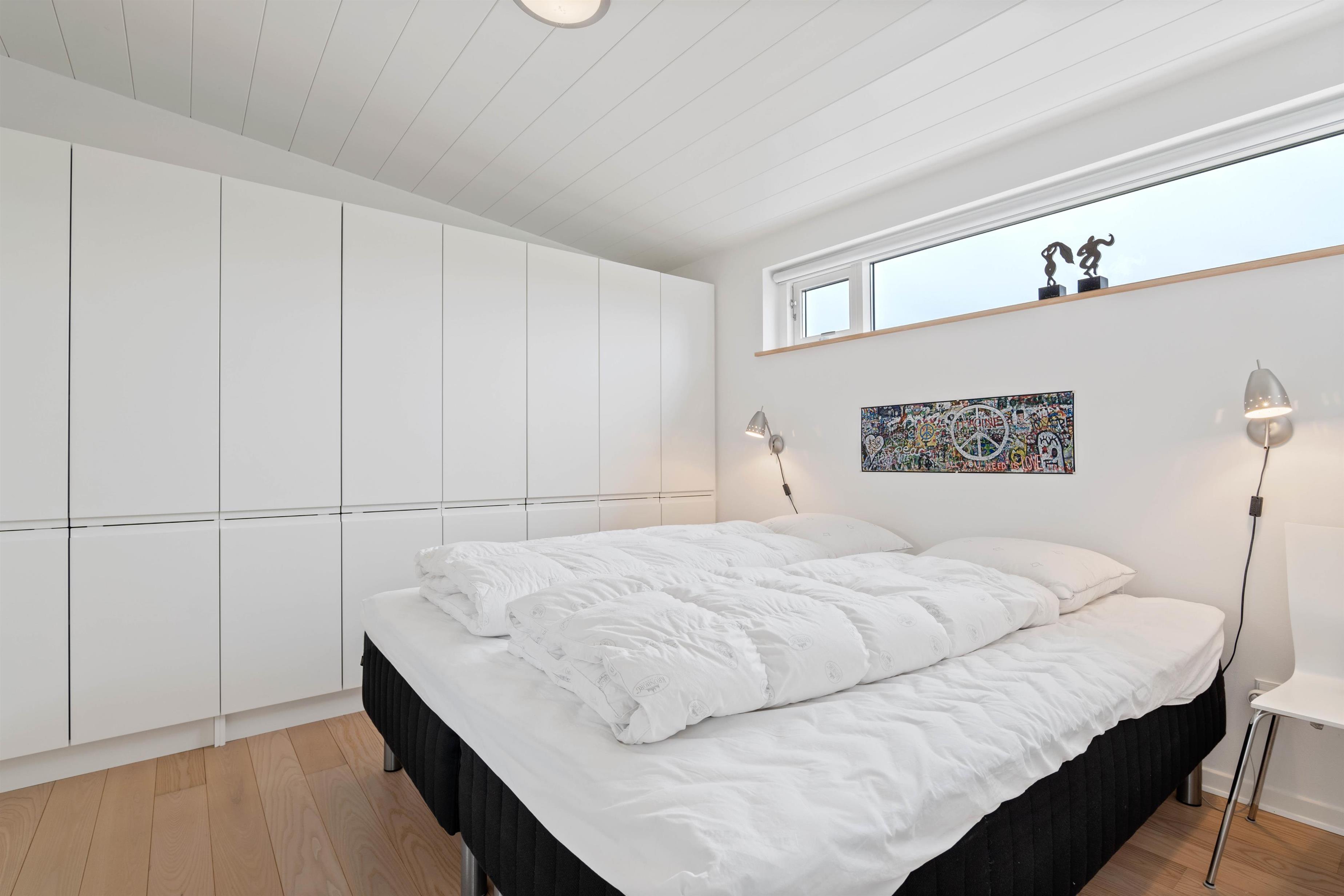Foruden alrummet byder sommerhusets 120 kvadratmeter på 3 gode soveværelser, der alle er indrettet med en dobbeltseng hver. Derudover er der hele 2 badeværelser med gulvvarme, så I slipper for at fryse tæerne og stå i kø fra morgenstunden.