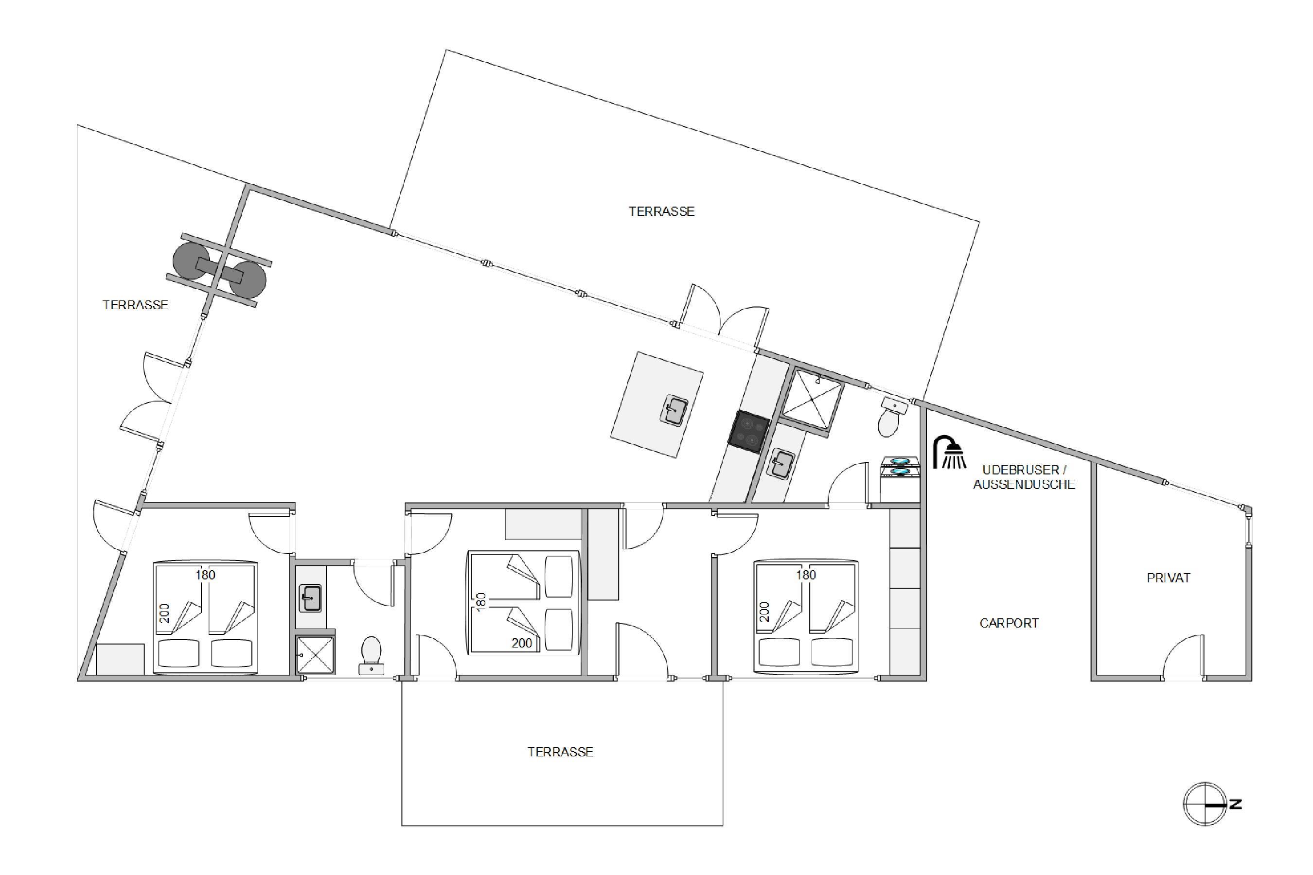 Udendørs har I desuden en udebruser, hvor I kan blive skyllet under efter en tur på stranden, så I kan få det sidste sand af tæerne.