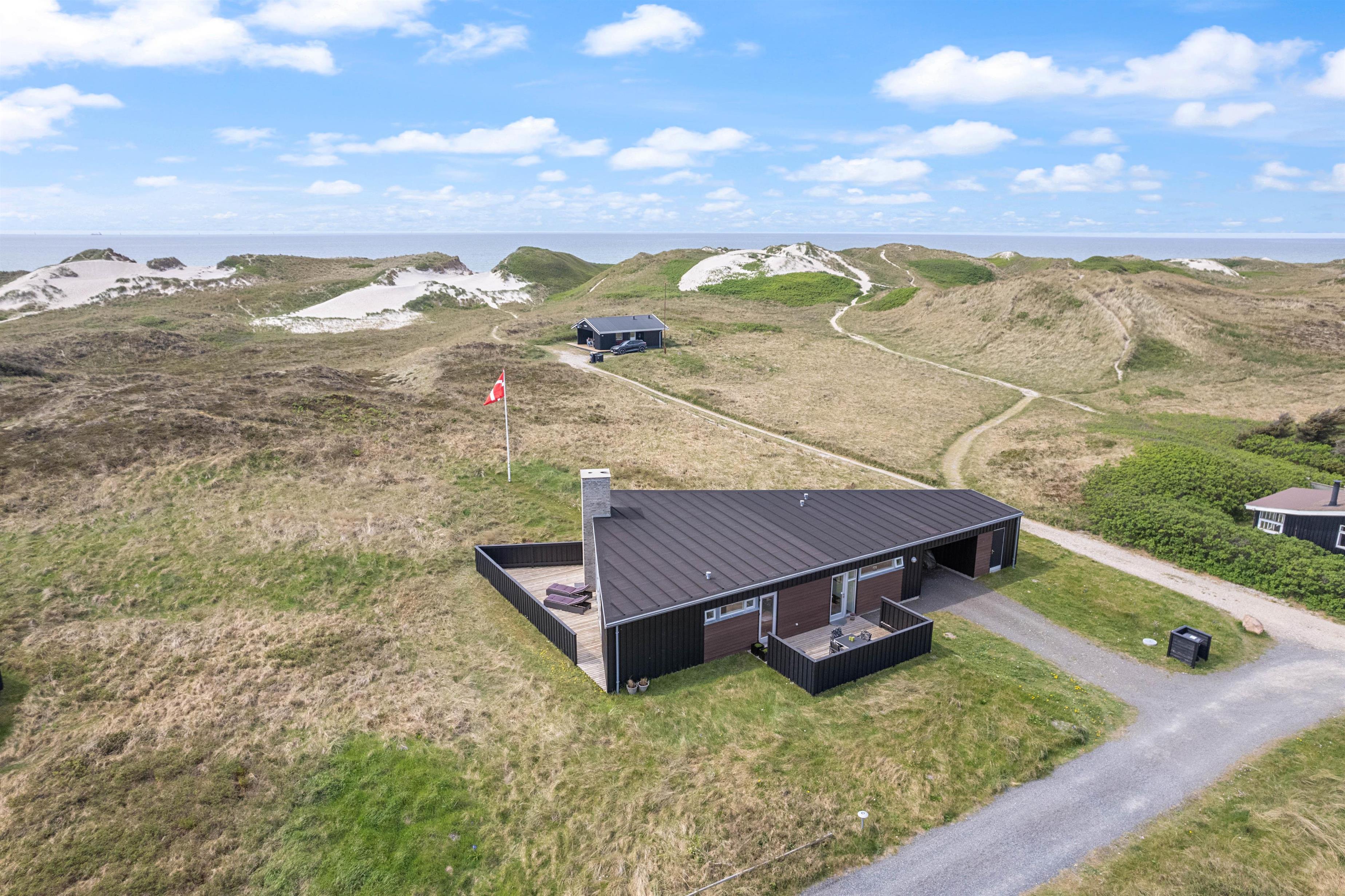 Sommerhusets store alrum, der har en skøn udsigt til klitterne, bliver jeres samlingspunkt i sommerhuset, og her kan I både gå i køkkenet sammen for at lave mad, samles omkring bordet til sjove spil og læne jer godt tilbage i sofaen til en god film i tv’et. Imens sørger brændeovnen for at fuldende feriestemningen med sin knitren i baggrunden.