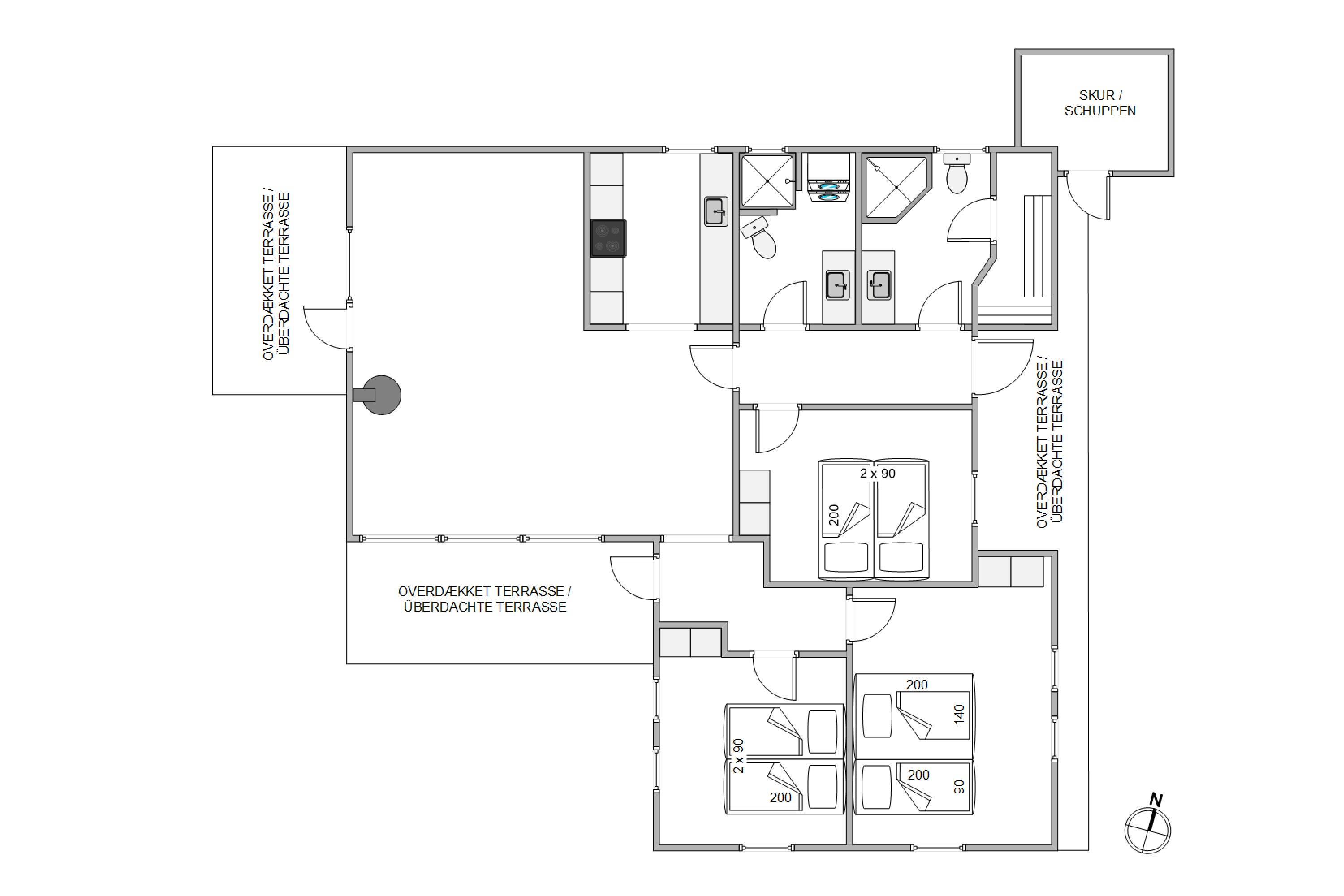 Den overdækkede terrasse betyder, at I altid har mulighed for at være udenfor, uanset vejret. Her har I mulighed for at bruge de behagelige havemøbler, som indbyder til afslapning og hygge. Her er I omgivet af det fantastiske klitlandskab, som er med til at skabe privatliv. Nyd de lange sommerdage, eller den altid fascinerende stjernehimmel om efteråret.