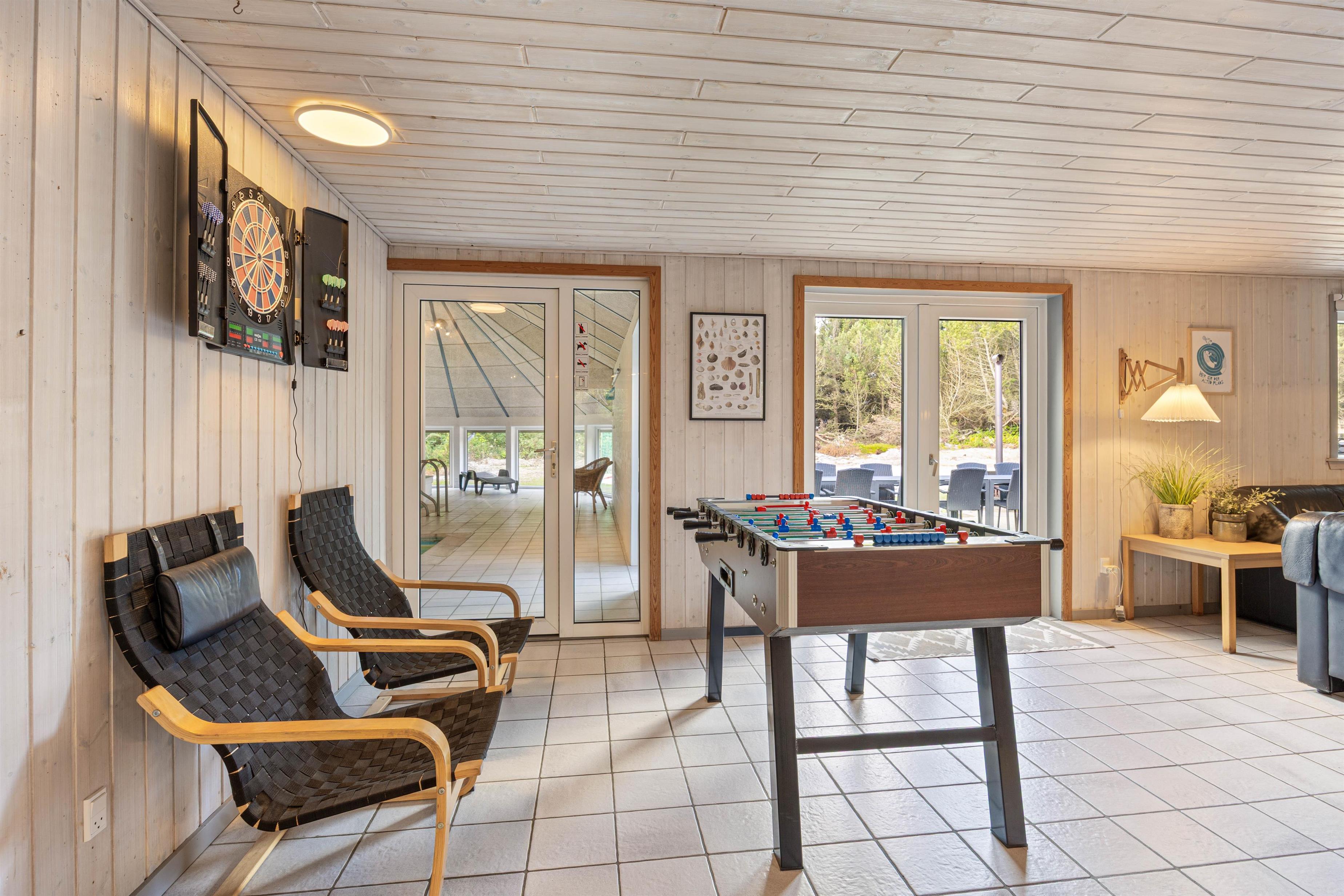 De wellness-faciliteter, som sommerhuset byder på, er helt ideelle, hvis I ønsker at koble helt fra og nyde lidt velvære og afslapning. I kan vælge at slappe af i saunaen efter en lang dag ude eller tage en dukkert i den 17 m² store pool. Hvis I har børn med, kan de plaske løs i poolen, mens de voksne sidder og nyder boblerne i spabadet og holder øje med dem.