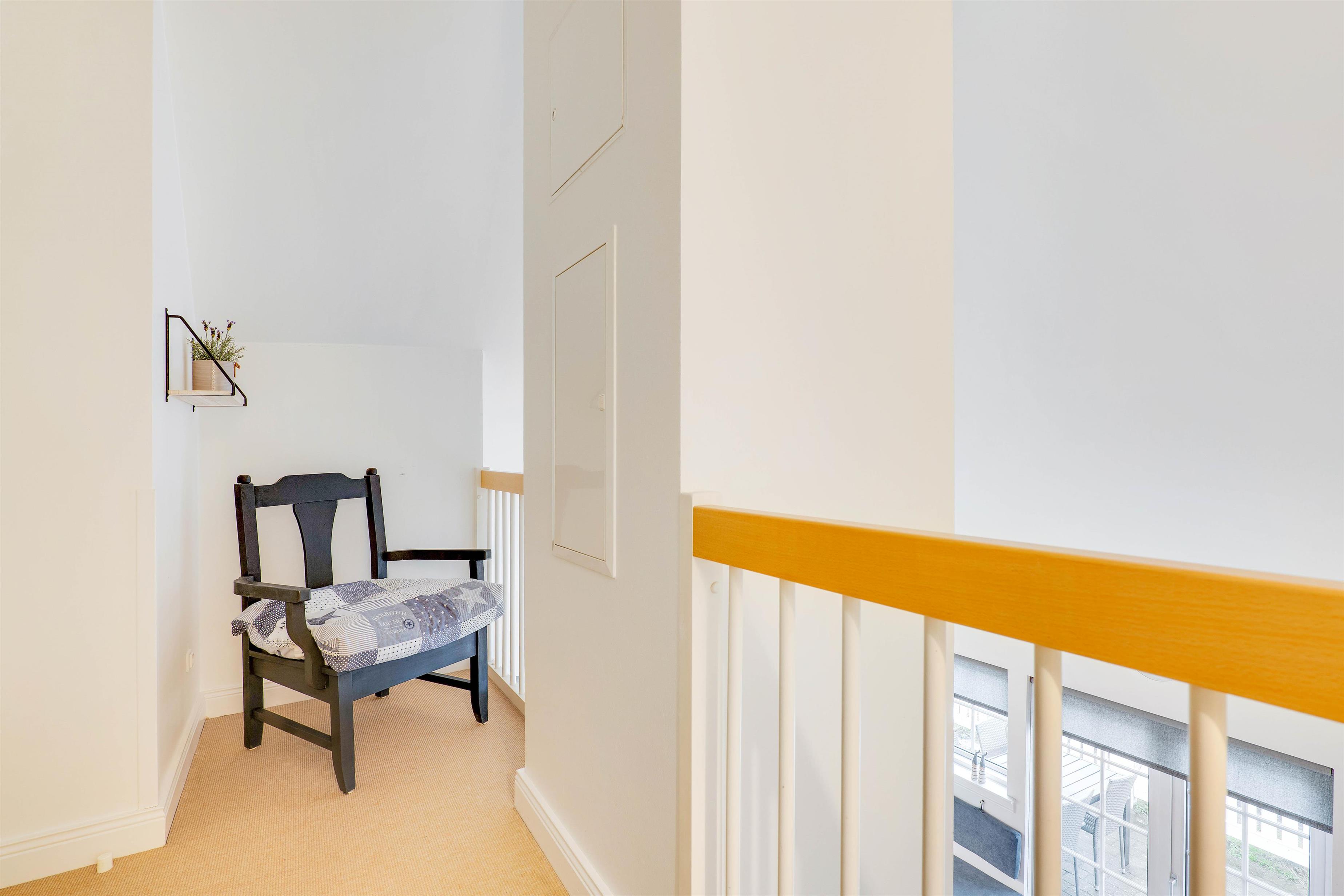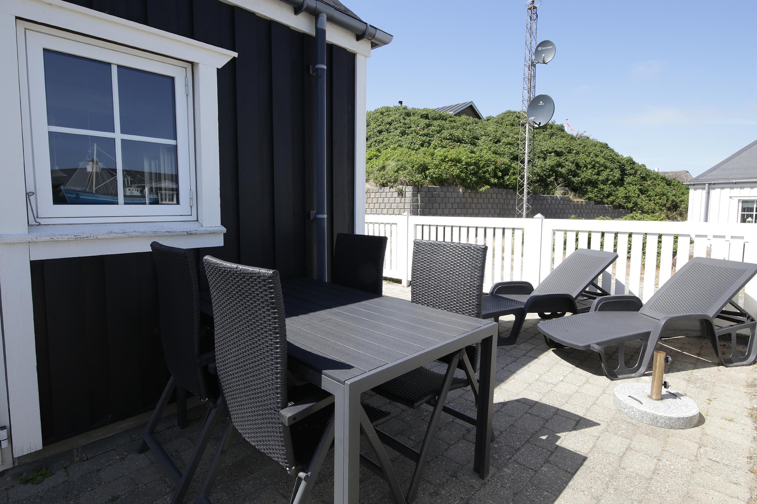 Fra stuen er der direkte udgang til lejlighedens terrasse – et hyggeligt lille gårdmiljø – hvor der er gode havemøbler og grill til rådighed. Det er det perfekte sted at nyde dagens første kop kaffe og betragte den omkringliggende natur.