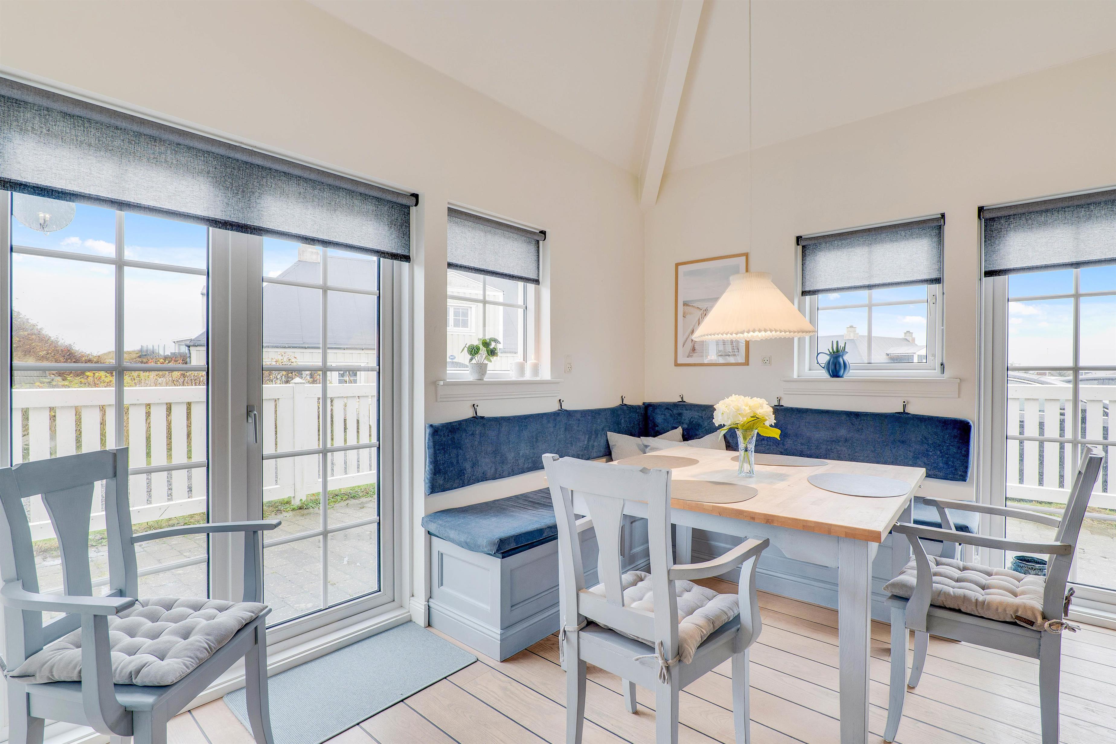 Den charmerende ferielejlighed i Søndervig Centrum er et såkaldt punkthus, der består af 4 sammenbyggende boliger – alle med hver deres egen indgang og indhegnet terrasse. Lejligheden består af 2 plan og er hyggeligt og lyst indrettet med møbler i den traditionelle klitgårdstil, der absolut giver jer en nostalgisk feriestemning af ”gamle dage”.