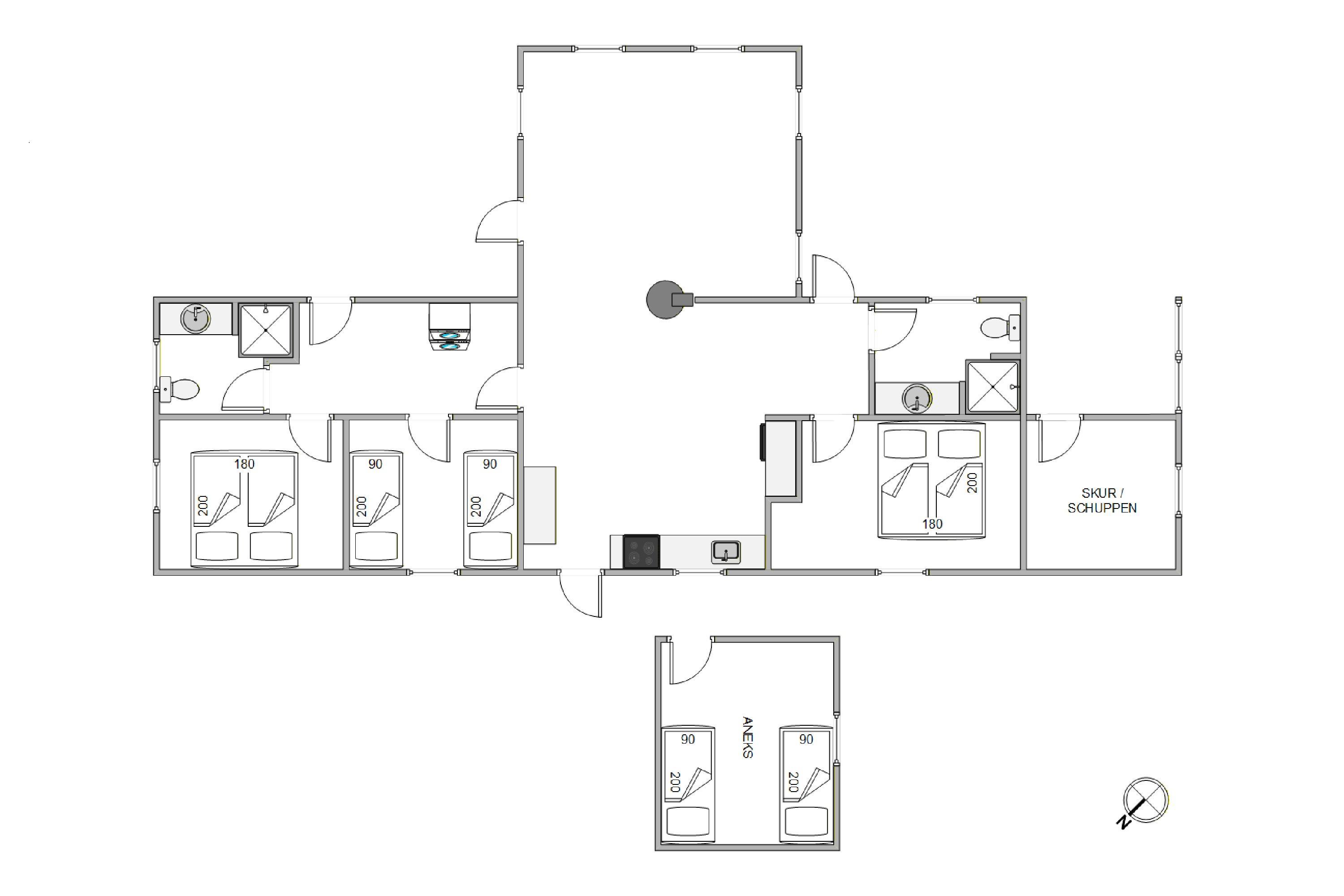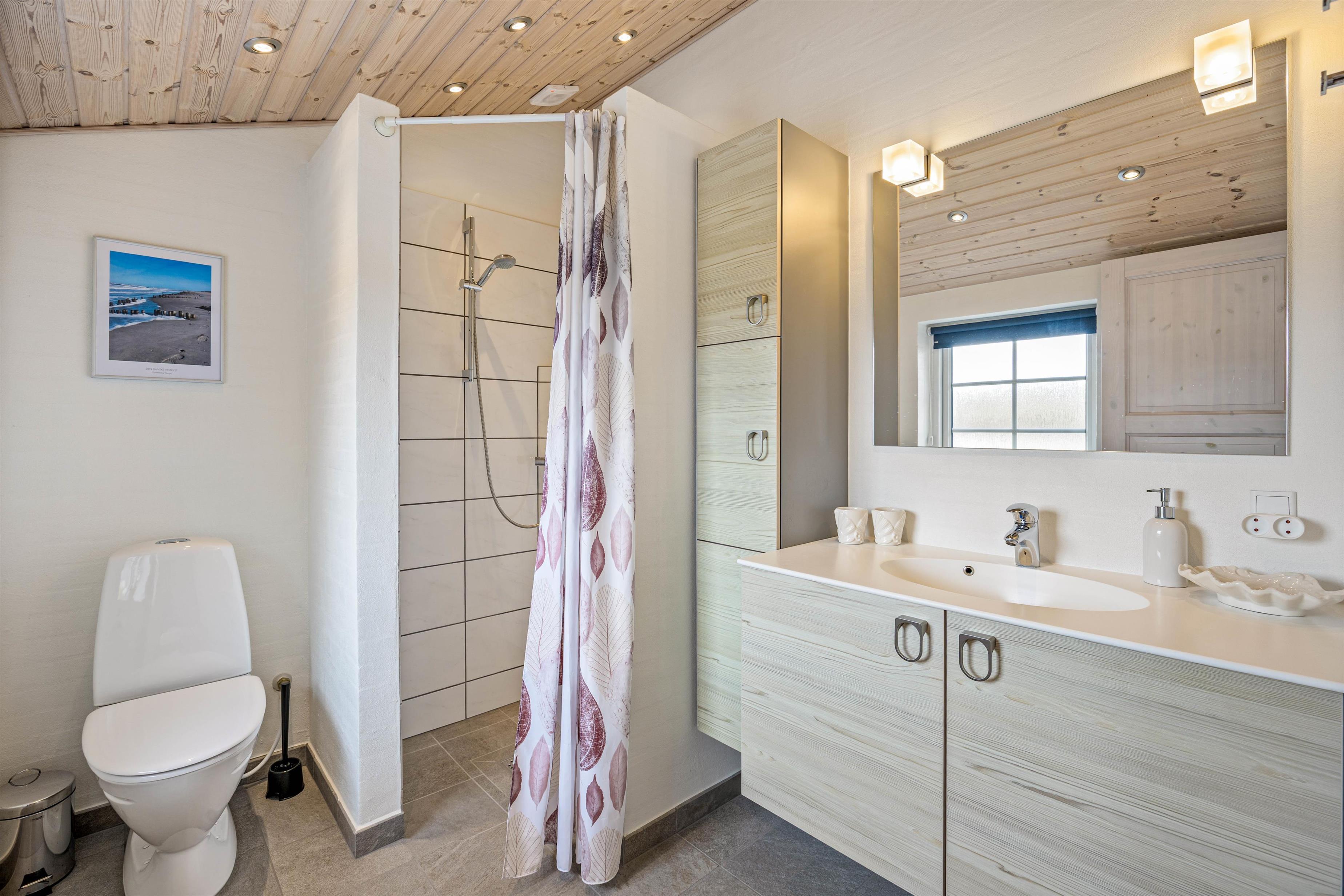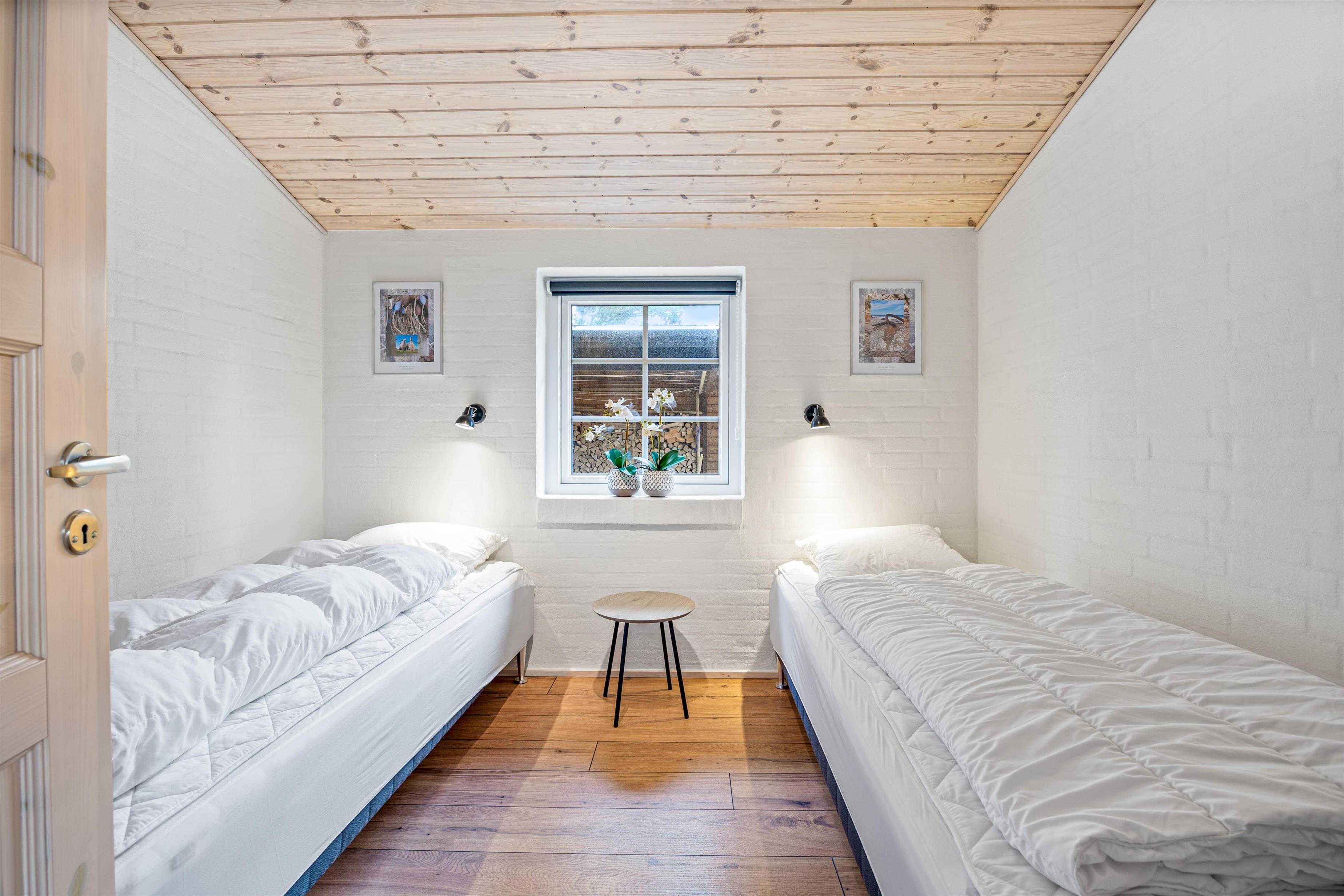 Sommerhuset byder på rummelige soveværelser hvoraf 2 af soveværelserne er indrettet med dobbeltseng, og det sidste i hovedhuset med to enkeltsenge Det 4. soverum er i annekset, hvor I også finder 2 enkeltsenge. Annekset er isoleret og kan opvarmes, og dermed perfekt til ekstra feriegæster. Som ekstra komfort råder sommerhuset over to lyse badeværelser begge med behagelig gulvvarme, så dagen kan startes og sluttes på den mest komfortable måde.