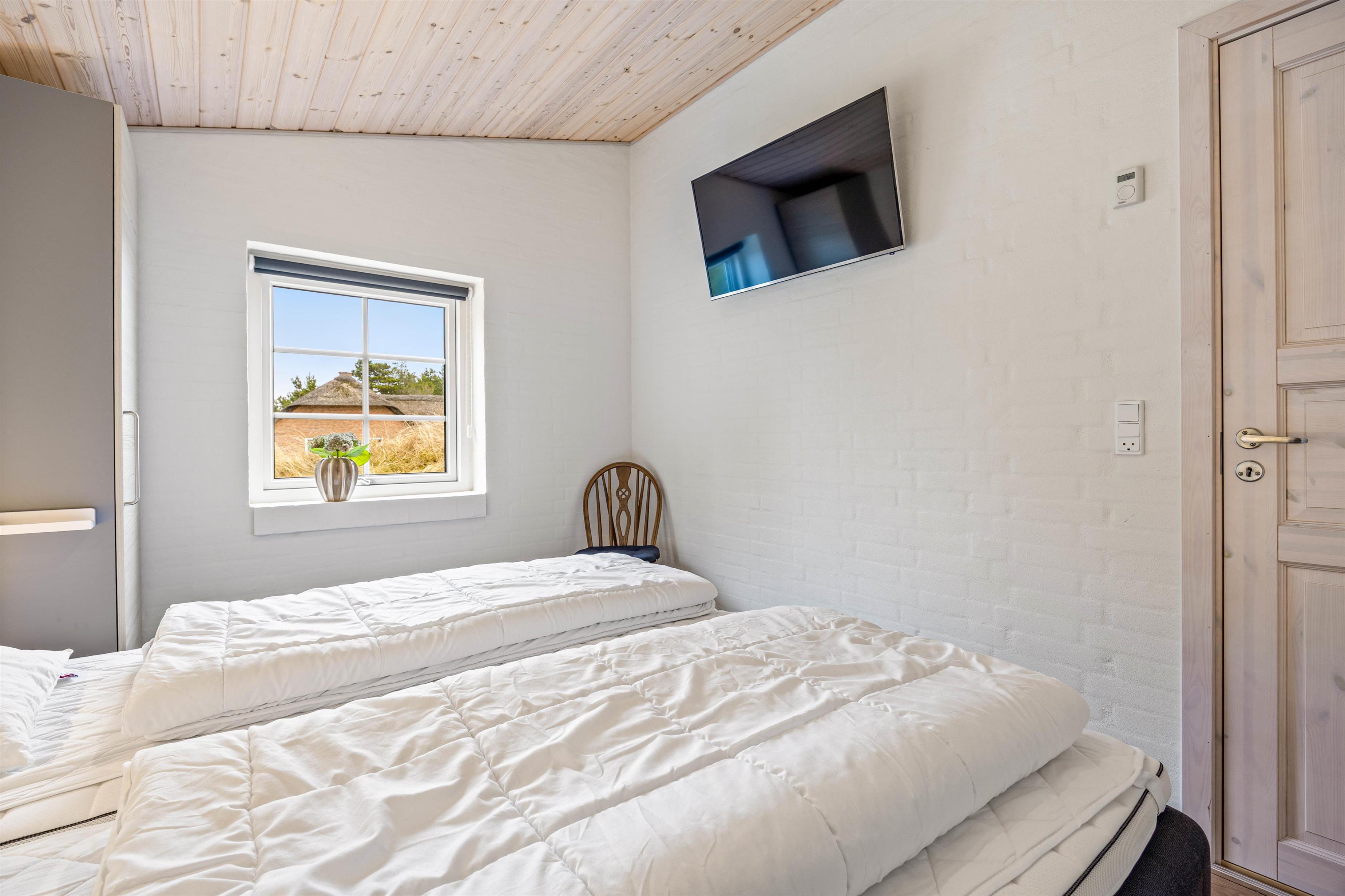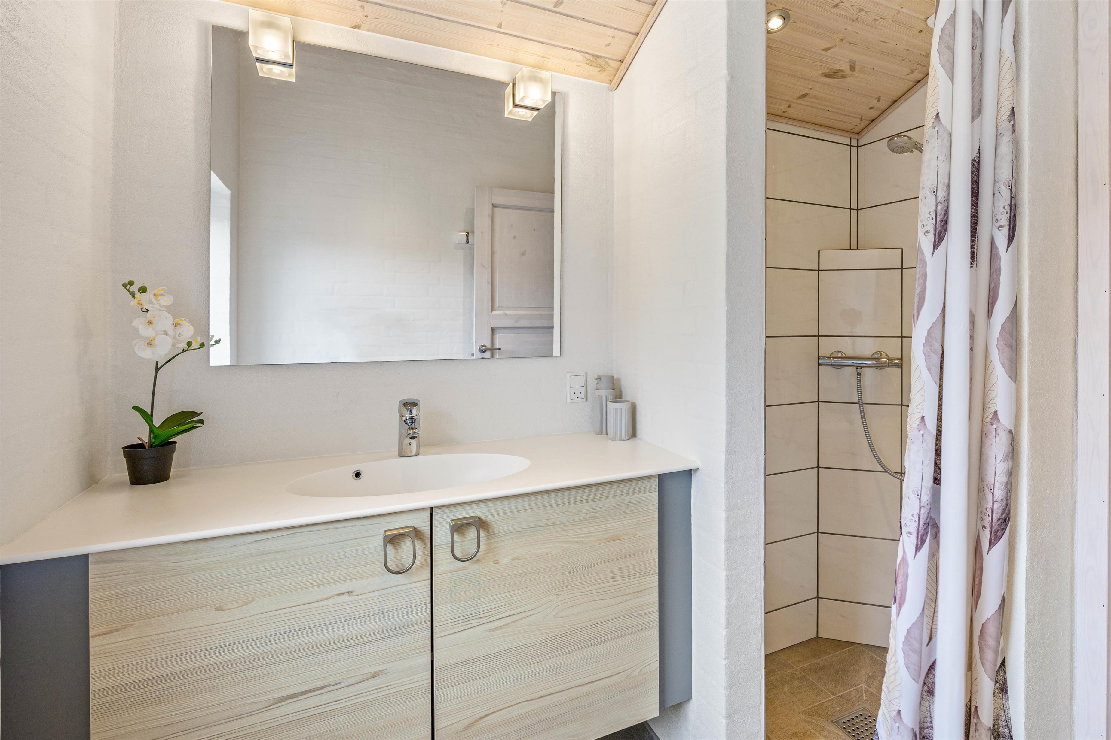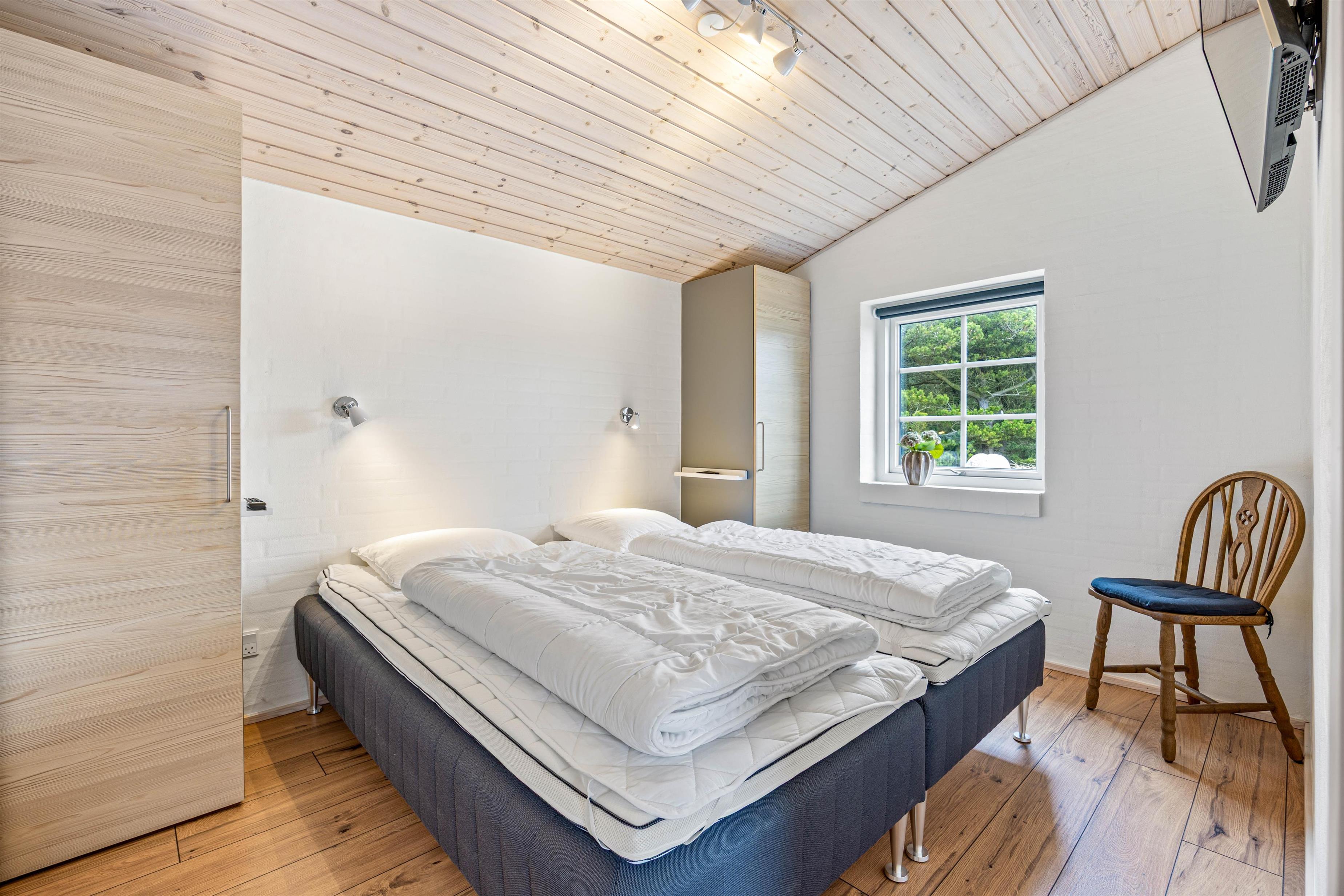 Sommerhuset byder på rummelige soveværelser hvoraf 2 af soveværelserne er indrettet med dobbeltseng, og det sidste i hovedhuset med to enkeltsenge Det 4. soverum er i annekset, hvor I også finder 2 enkeltsenge. Annekset er isoleret og kan opvarmes, og dermed perfekt til ekstra feriegæster. Som ekstra komfort råder sommerhuset over to lyse badeværelser begge med behagelig gulvvarme, så dagen kan startes og sluttes på den mest komfortable måde.