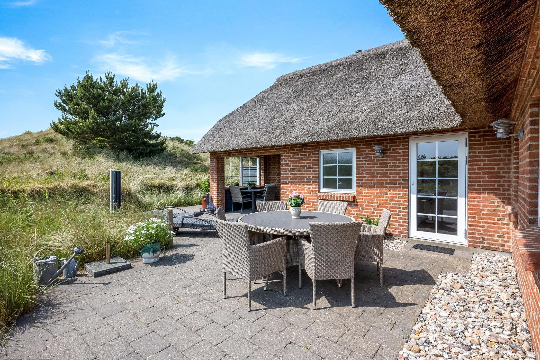 Sommerhuset ligger på en 2460 kvadratmeter stor og ugeneret klitgrund, som giver jer masser af plads til afslapning og dyreliv. Her kan I være heldige at se rådyr, harer og fugle helt tæt på. Der er både en åben terrasse til solrige dage og en overdækket, afskærmet terrasse, hvor I kan sidde i læ for vinden.