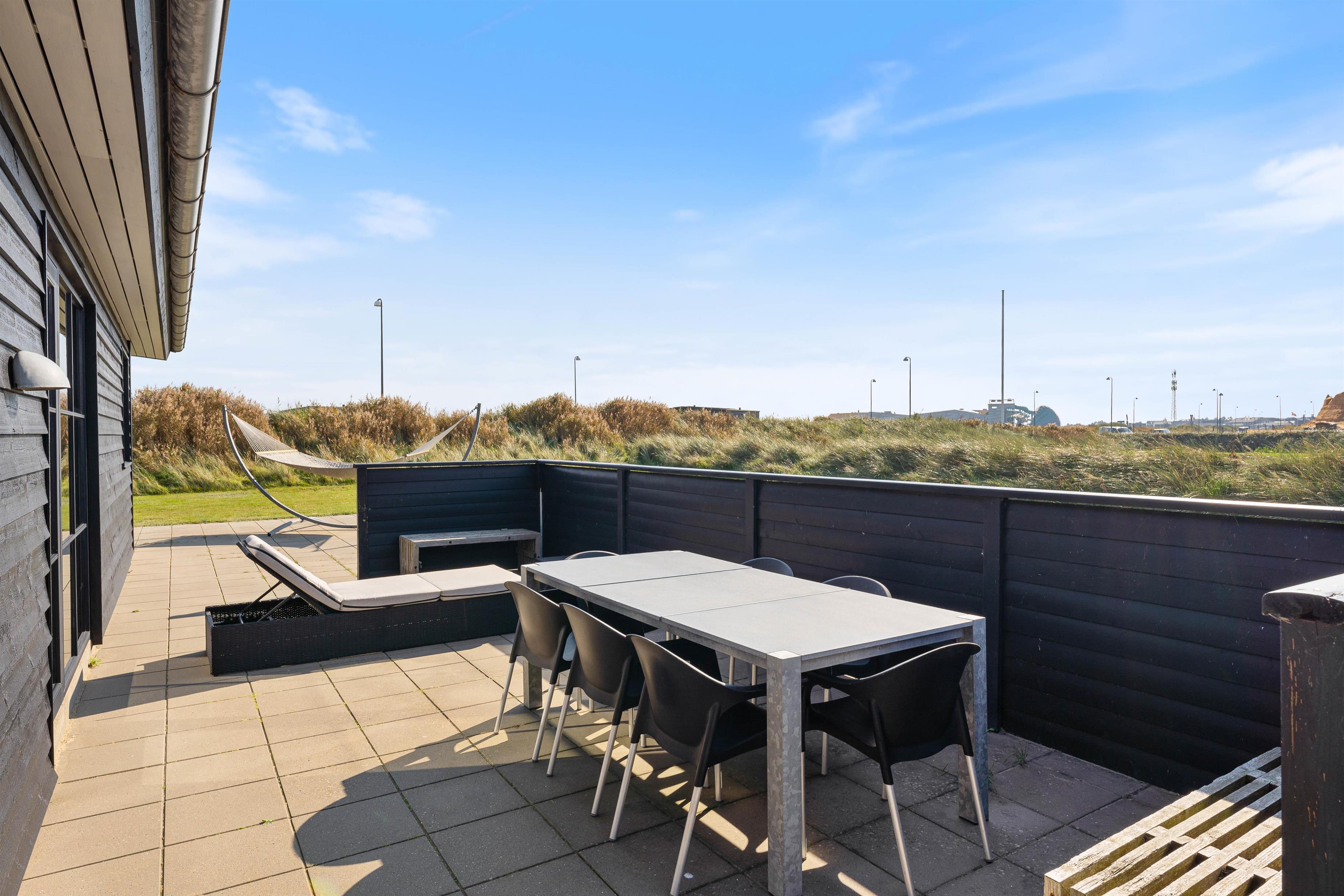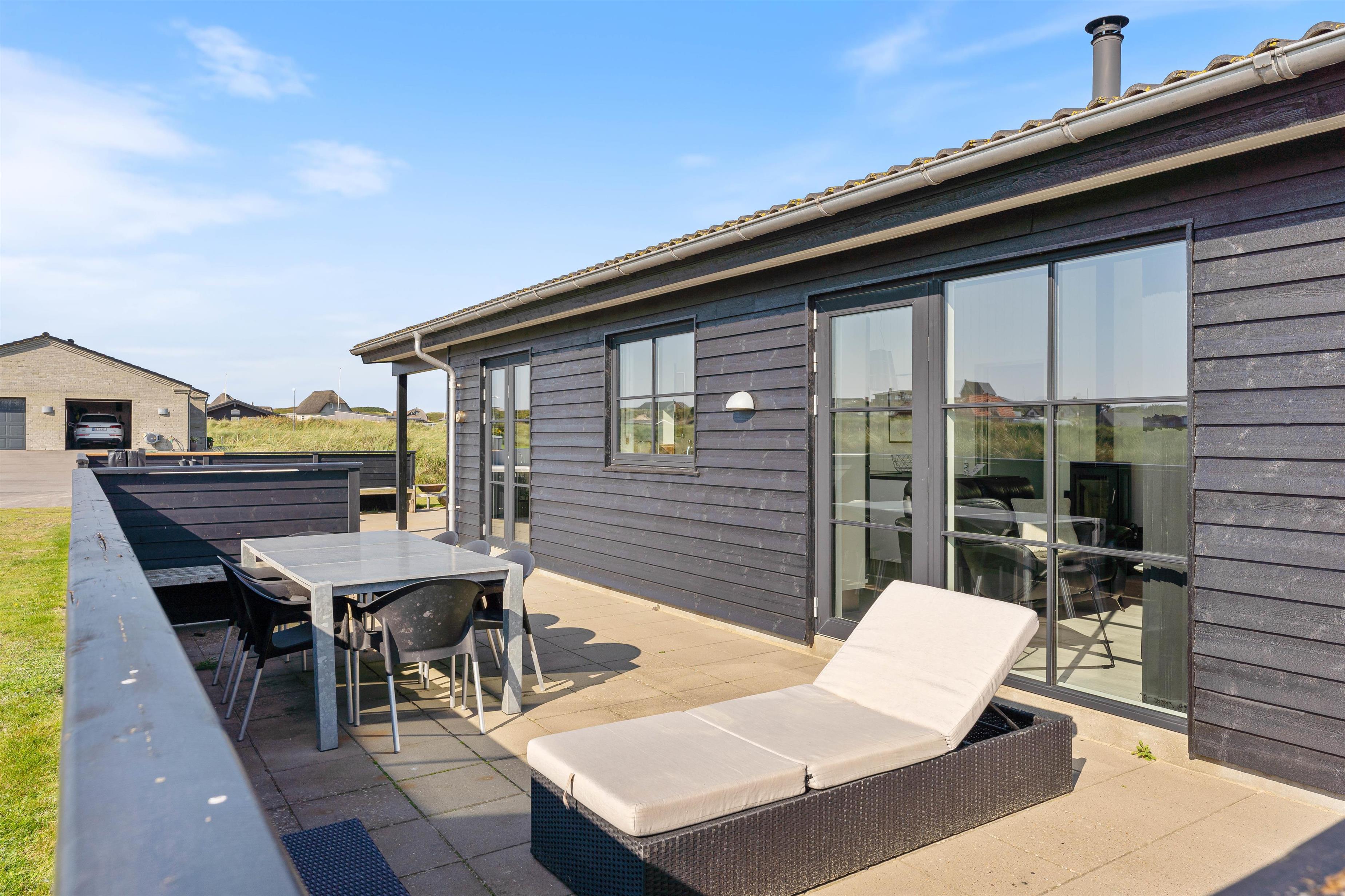 Lige så snart I træder ud på den dejlige, overdækket og delvist afskærmet terrasse, bliver I mødt af de dejligste rammer. Her er der rig mulighed for at tilbringe en masse gode timer, når vejret tillader det. Om aftenen er det oplagt at tænde op for feriehusets tilhørende grill, og lade feriens grillmester tilberede et lækker tgrillmåltid, til hele familien.