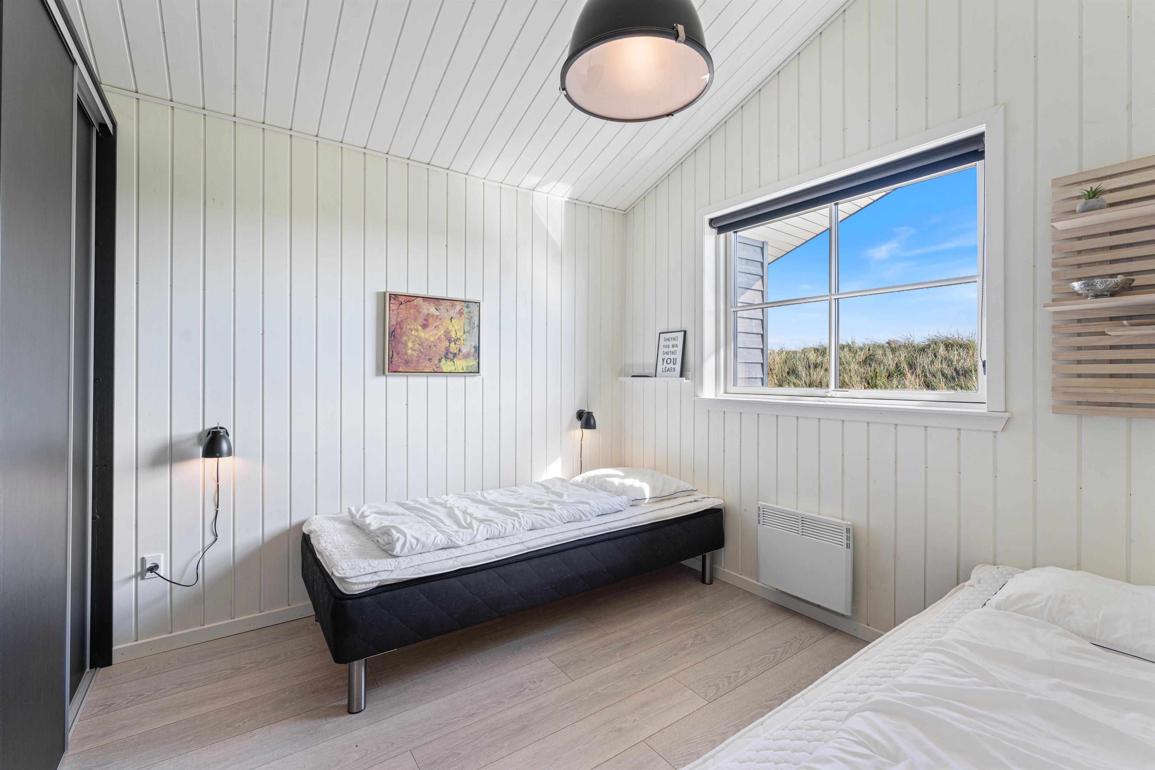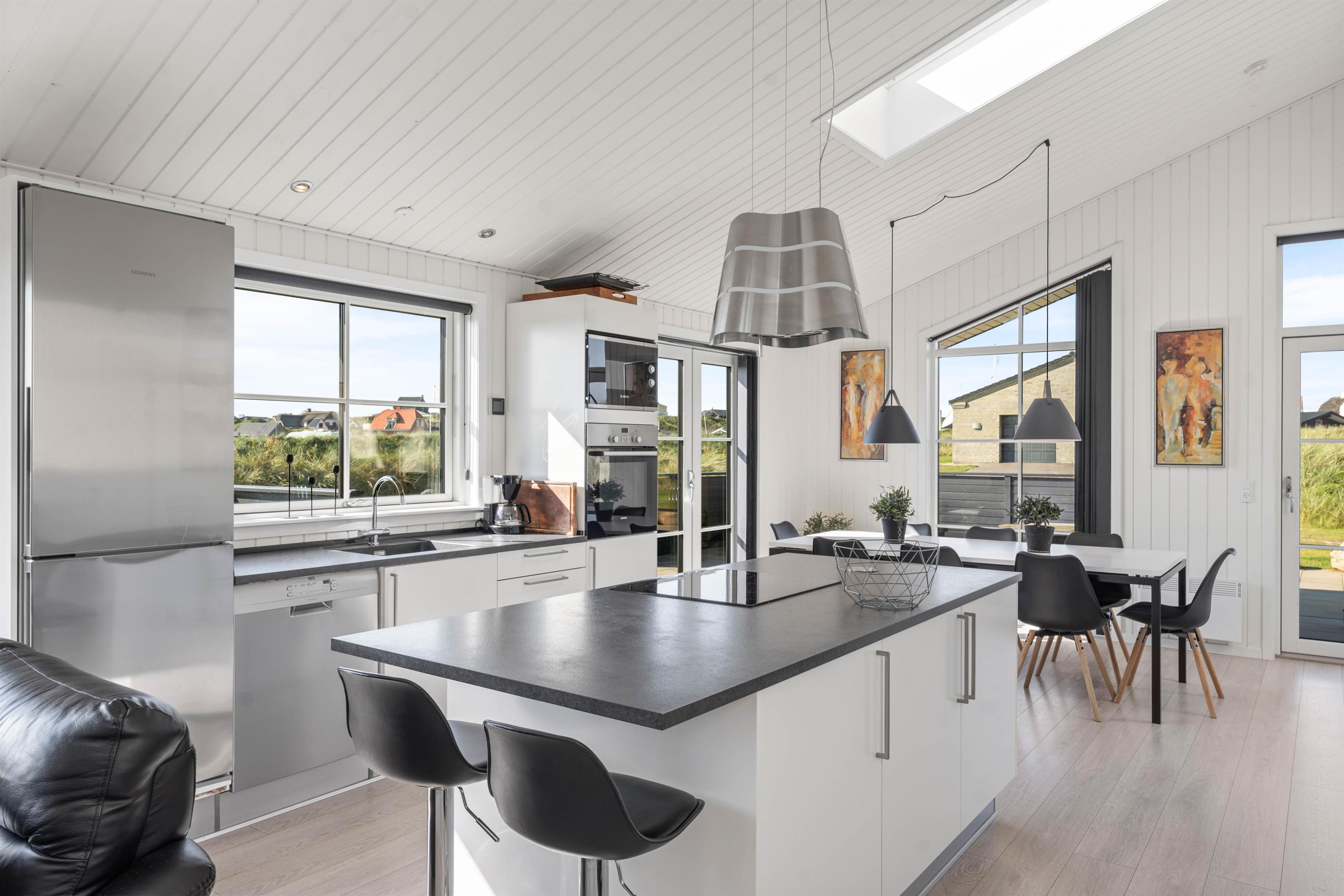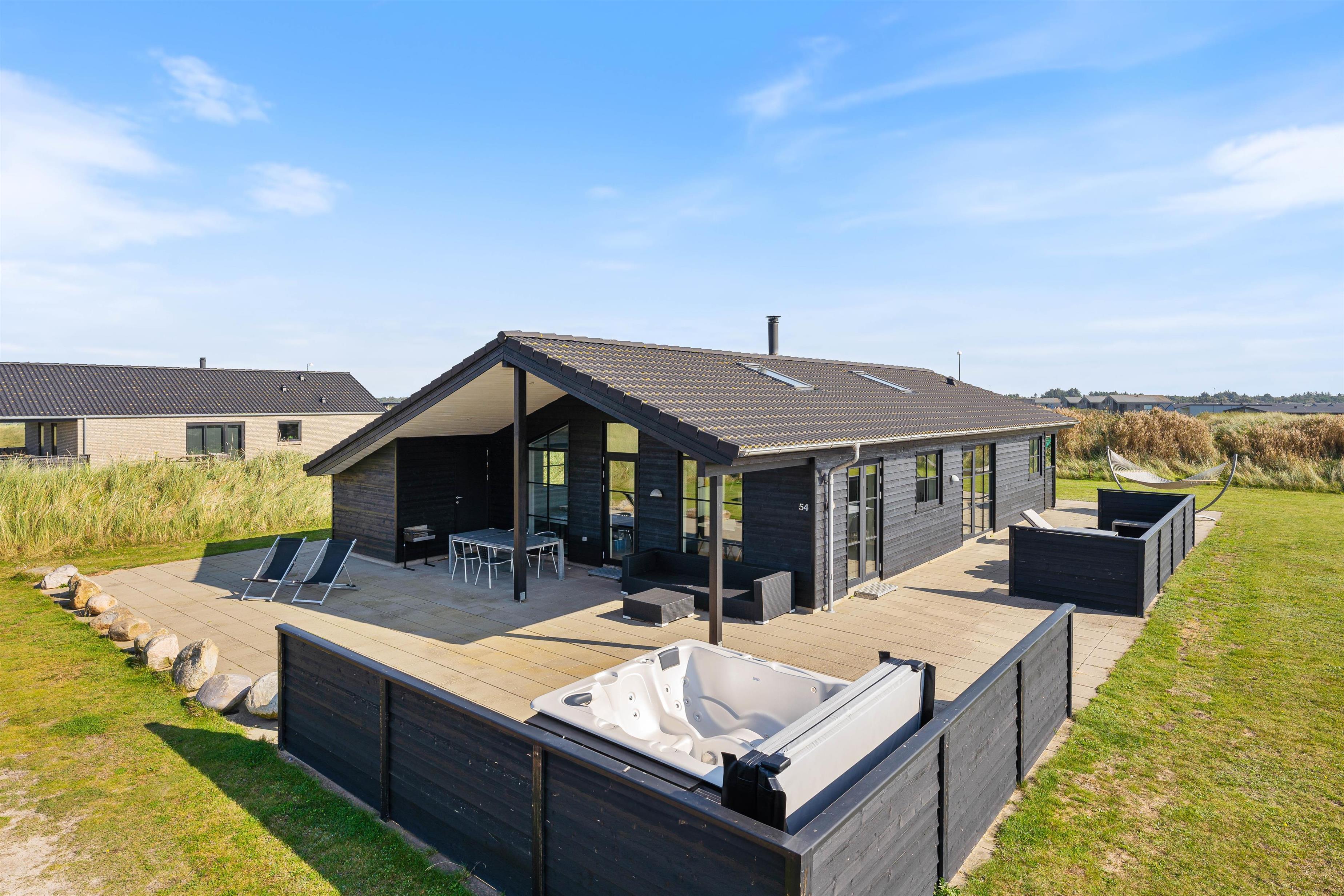 På Lodbergsvej 54 finder I dette lavenergi-feriehus med en central beliggenhed tæt på Søndervigs centrum. Her er I nærmeste nabo til den årlige Sandskulpturfestival og samtidig meget tæt på Vesterhavet. Feriehuset er lyst og smagfuldt indrettet, naturligvis med 2 badeværelser, hvoraf et af dem er med en lækker og indbydende sauna.